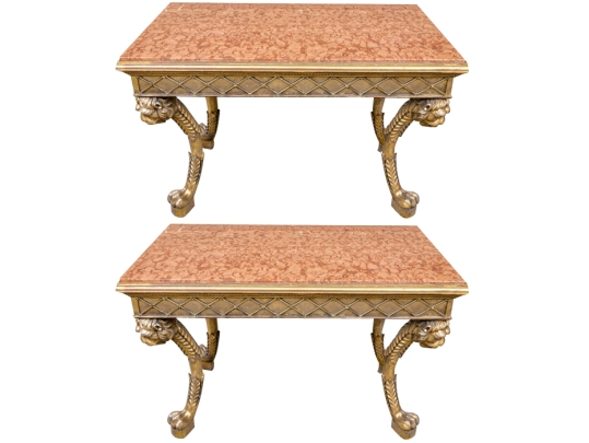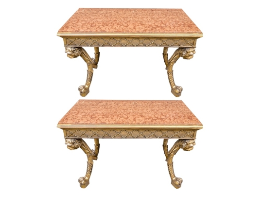 Compatible Pair Of Antique Gilt And Carved Stone Top Console Tables #260178. Black Rock Galleries provides high end estate liquidation services through online estate auctions and a 50,000 sq ft designer showroom. estate liquidator, estate sale, online auction, antiques, fine art, liquidation, clean outs, auction, consignment, interior design, fine jewelry, collectibles, appraisals, estate appraisals, estate services, decor, furniture, furniture consignment, antique center, consignment shop. We offer appraisal services and specialize in fine art, jewelry, antiques and decorative arts. Sell with us. Black Rock Galleries is the tri-state's largest estate liquidator serving New England and the greater New York City area. We are the trusted source for expert appraisals, auction services, estate sales, and consignments. Black Rock Galleries is the east coast's largest and most trusted estate liquidator, with locations in Connecticut, greater Boston, MA and Raleigh, NC, Fairfield, Southport, Apex, TX. We are the best source for expert appraisals, auction services, estate sales and consignments. We have served thousands of families and estates with compassion, professionalism and expertise. BRG works with attorneys, executors, realtors and families to bring the greatest return on personal and estate property in the current market. Our unique combination of services make us the easy choice to get the job done in a timely and stress-free manner. We are with you from the initial consultation to the final clean out. Our house-built online auction software platform offers clients a dynamic approach to liquidating their personal property. This venue is most successful in bringing the best return with the least amount of disruption for our clients. See our services page for a complete description of this offering. Compatible Pair Of Antique Gilt And Carved Stone Top Console Tables #260178
