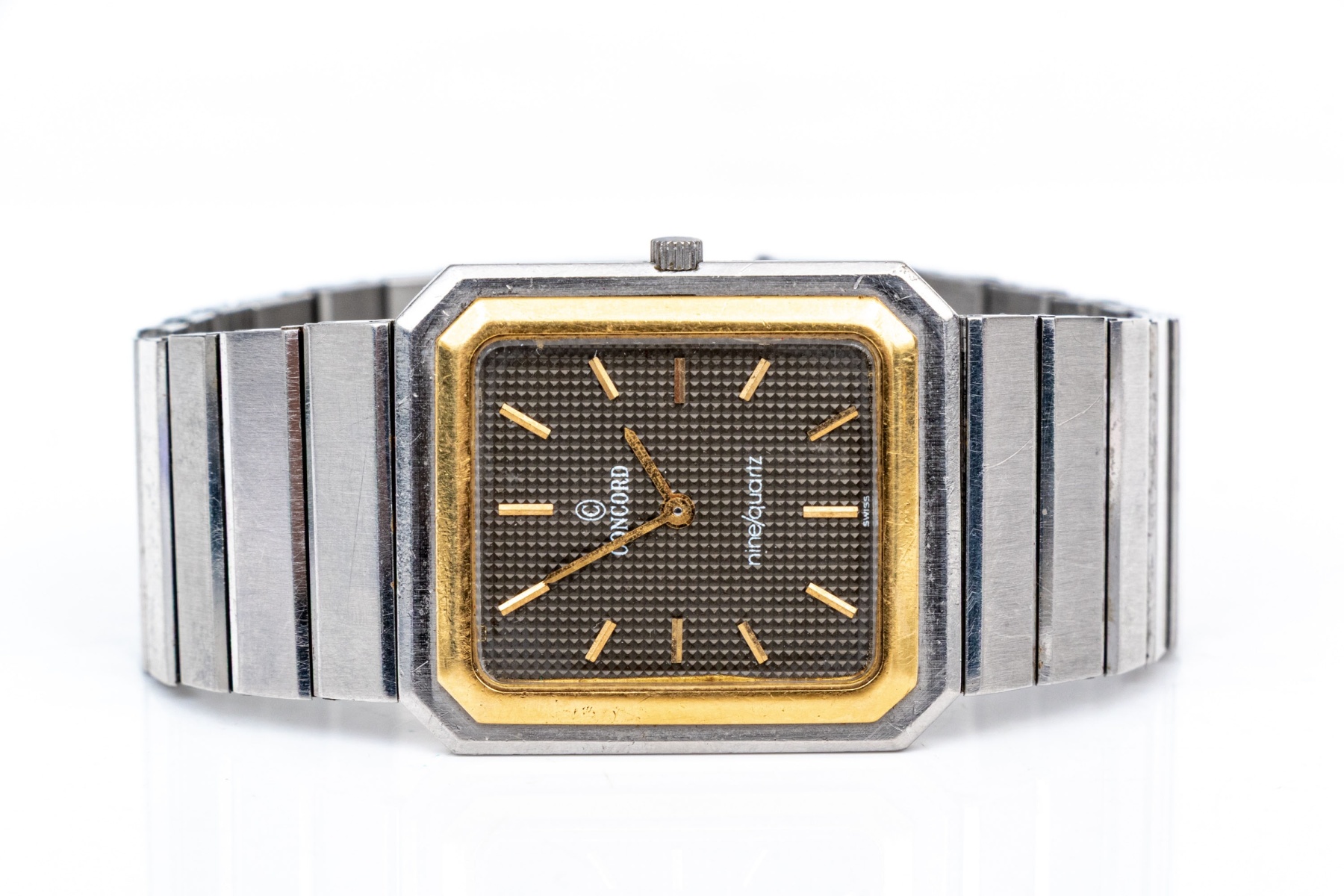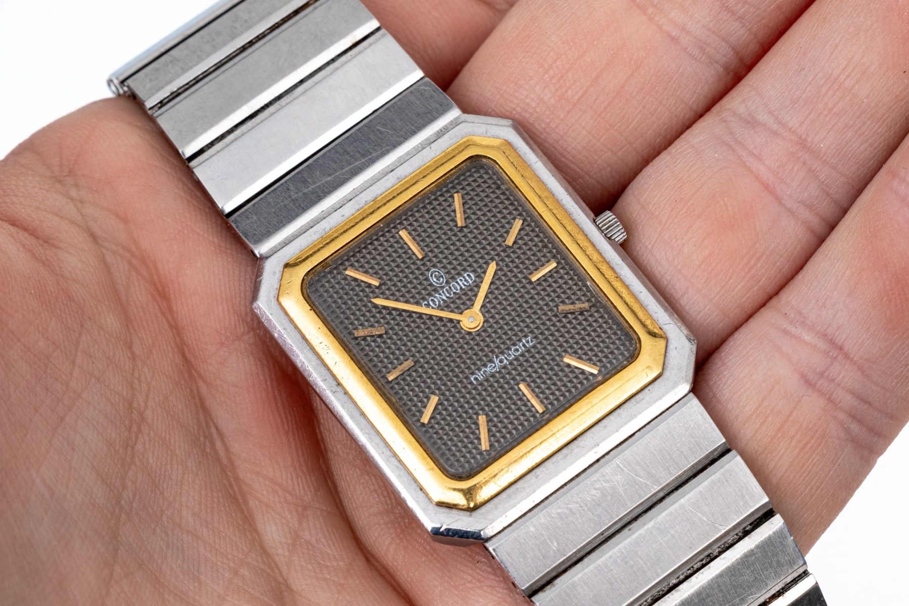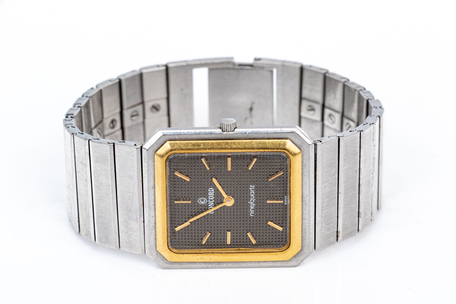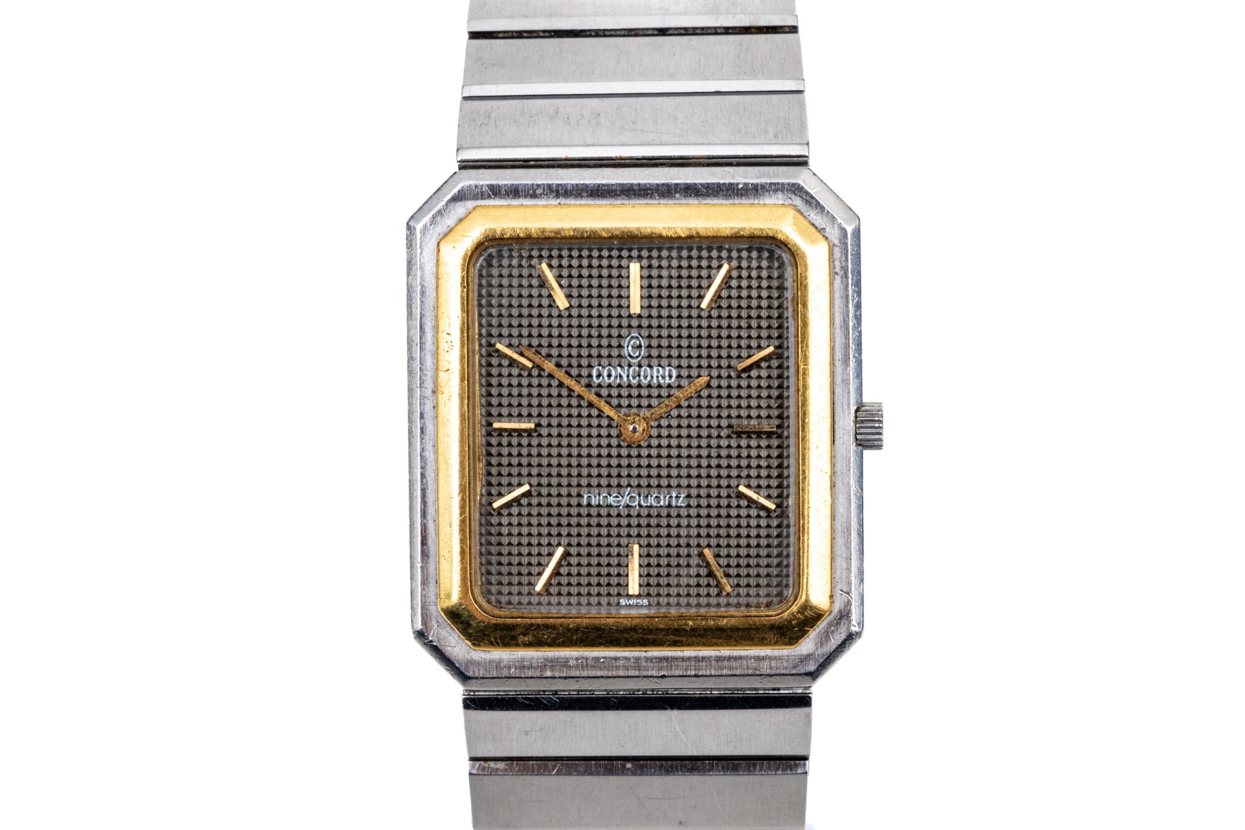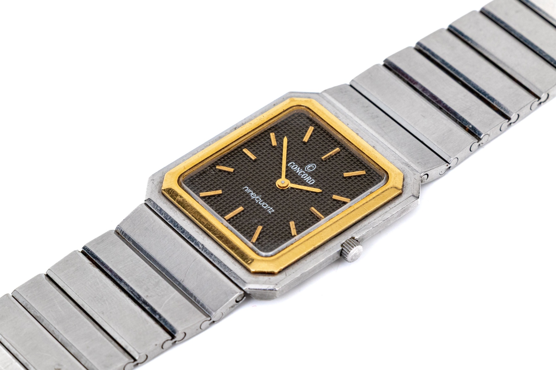 Concord steel and gold vintage Mariner Nine Quartz tank watch, on bracelet