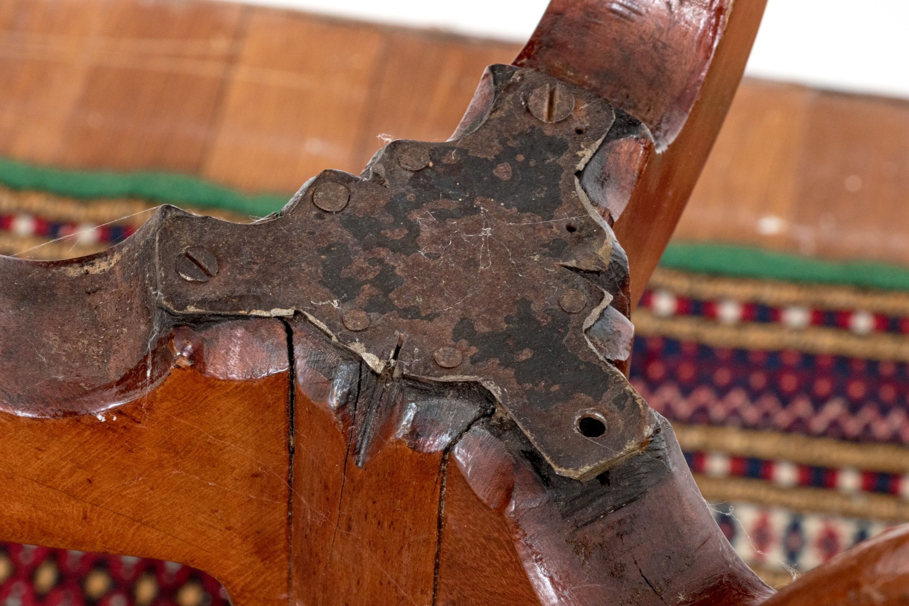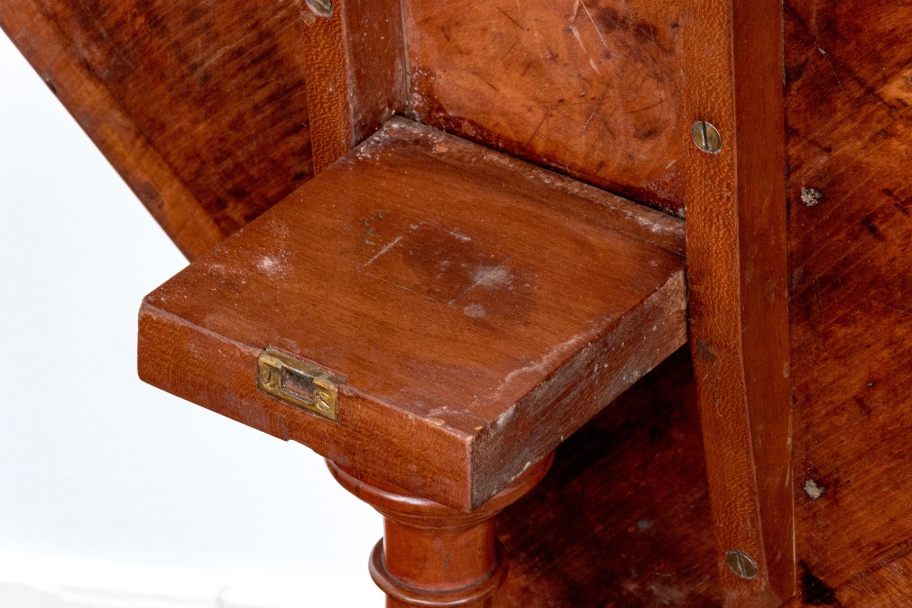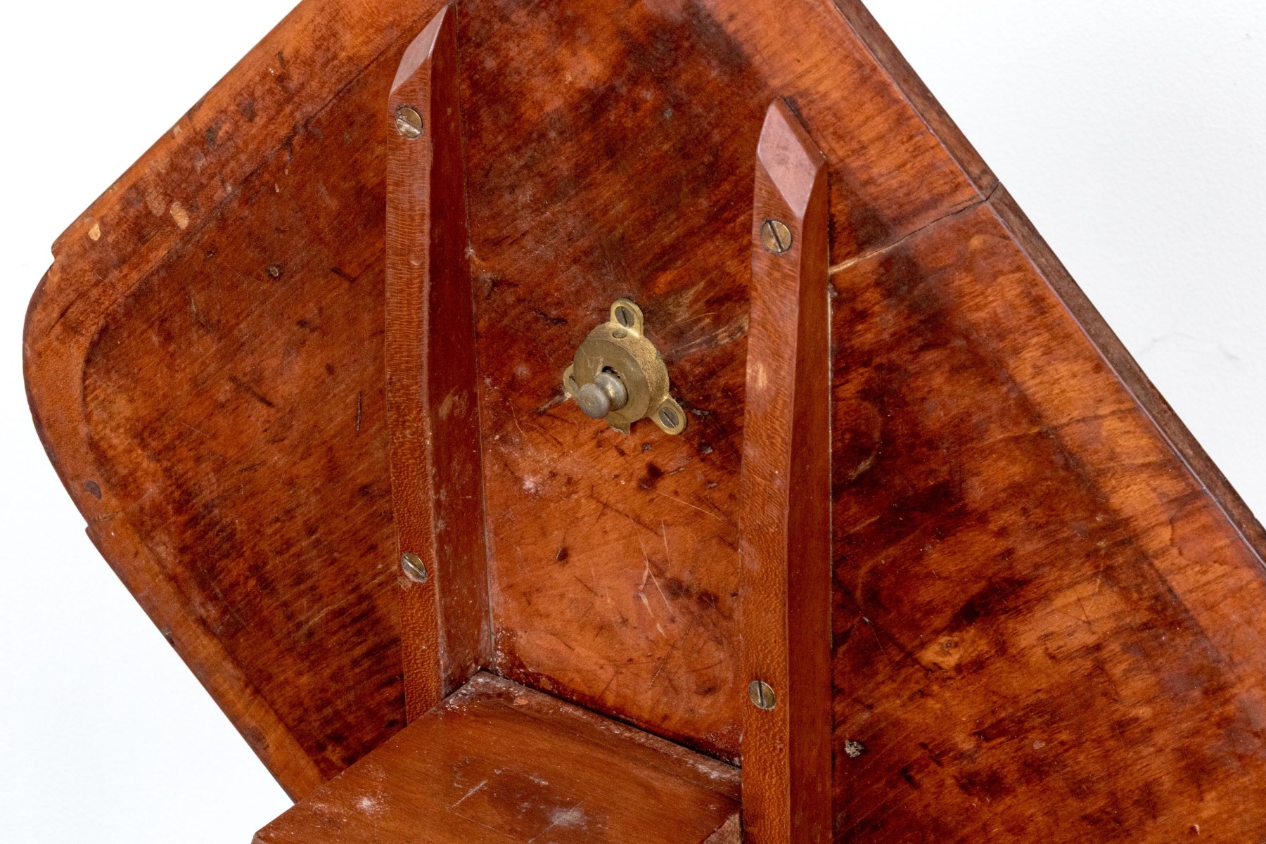 The table top with checking extending from one side of the table top towards the center for approximately 9 1/2". Additionally one foot has a repair. Despite wear the table still presents handsomely.