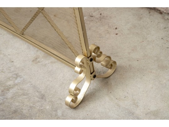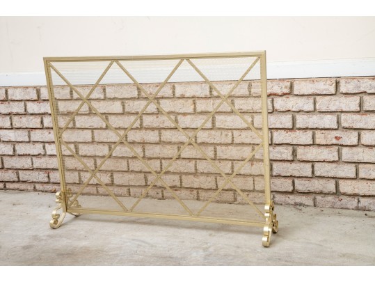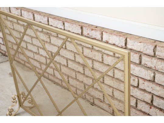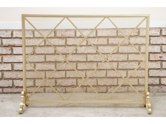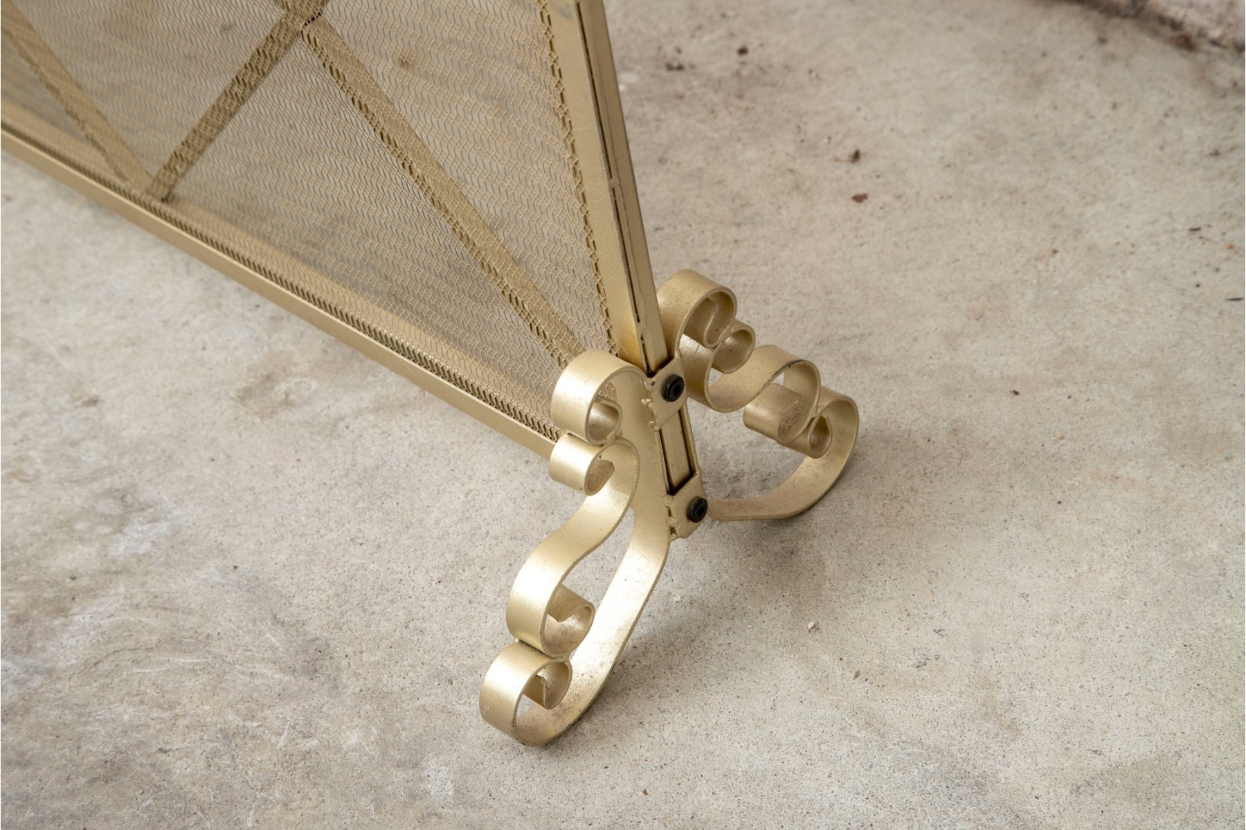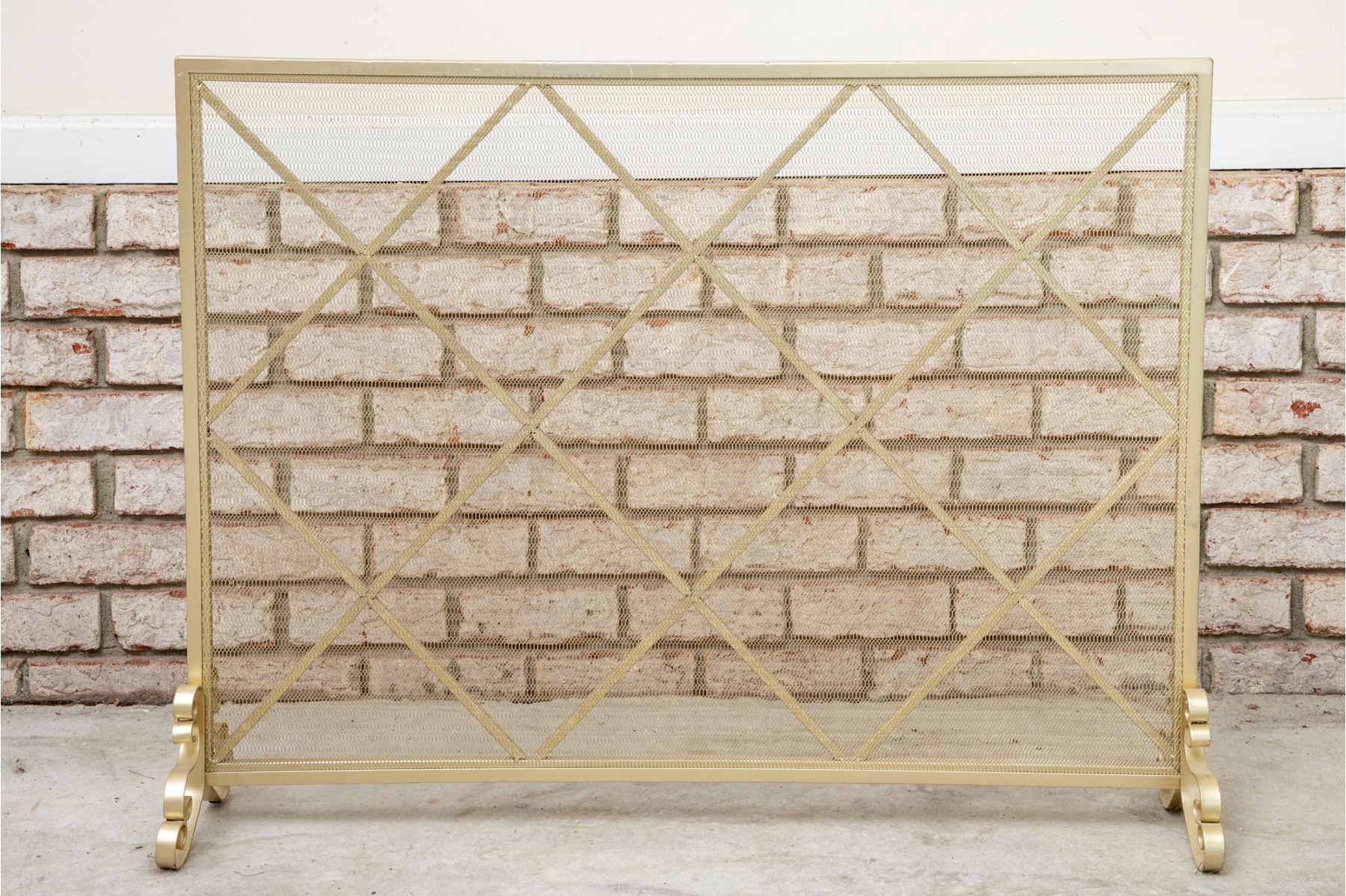A contemporary single-panel fire screen with a gold-tone metal mesh design. Sleek and minimalistic, it offers a stylish barrier while allowing warmth and visibility.