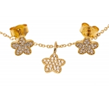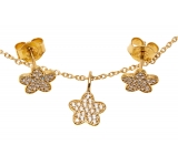 Sterling silver vermeil star pendant necklace and earrings set. The star shaped earrings and pendant are set with bright white, round faceted cubic zirconia. Necklace has a spring ring clasp and earrings have post and clutch backings.