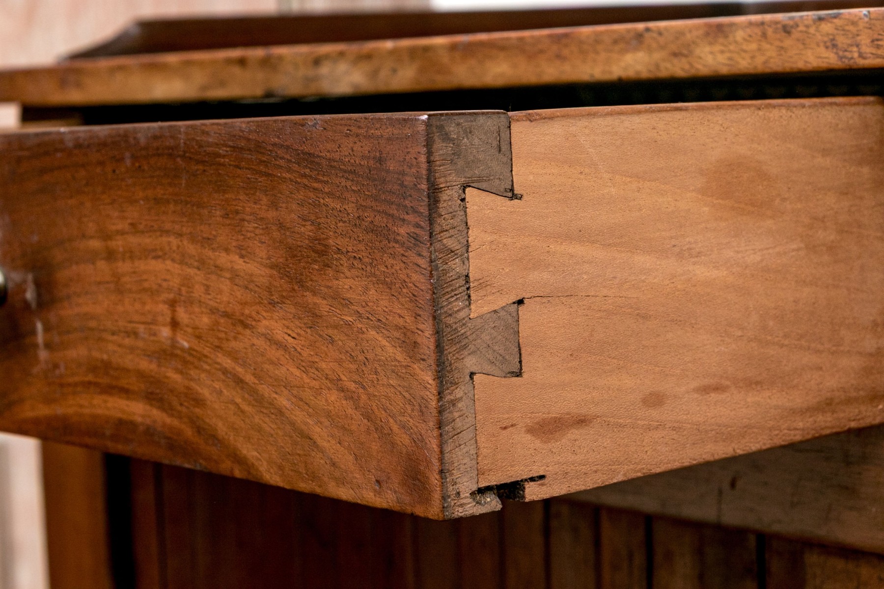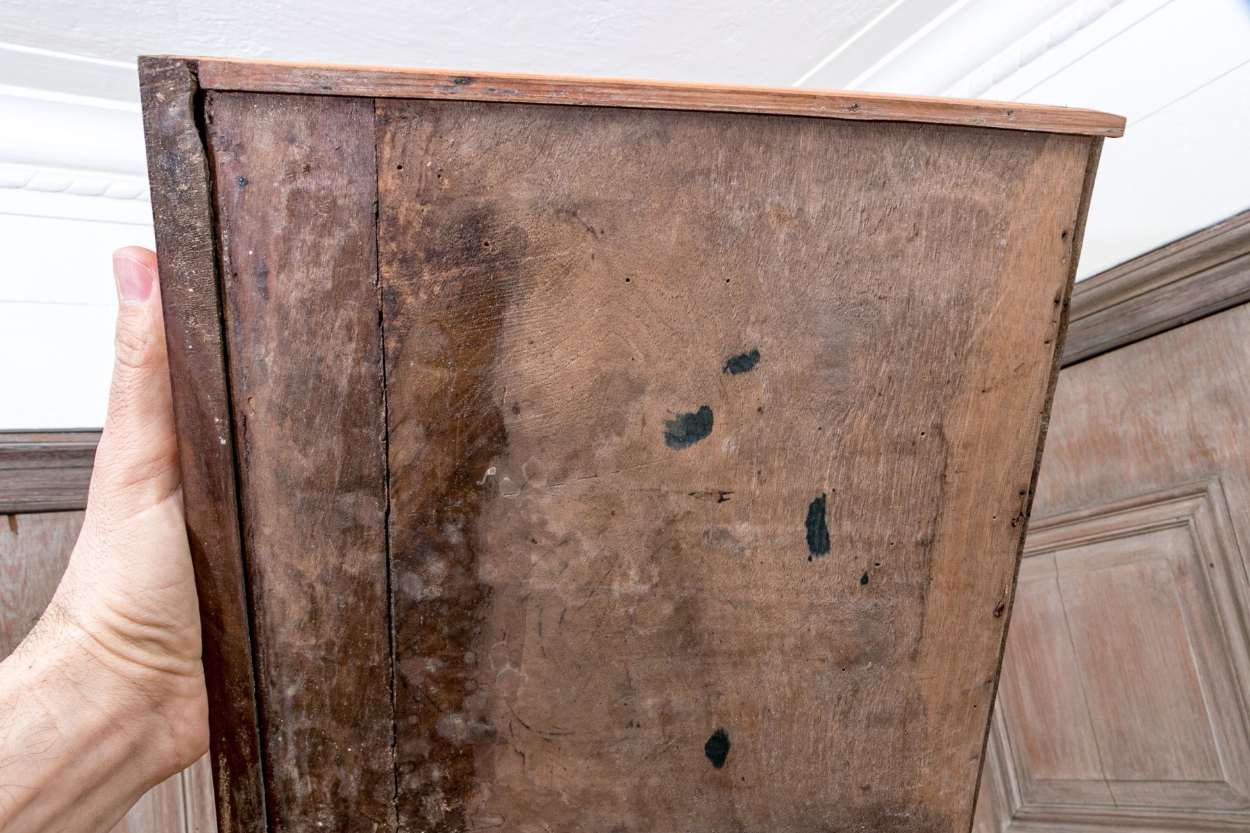A wonderful piece with some wear commensurate with age and use including checking to the sides, scuffs, nicks, and finish wear. The cabinet is a bit loose, could use some adjustment to one of the legs.