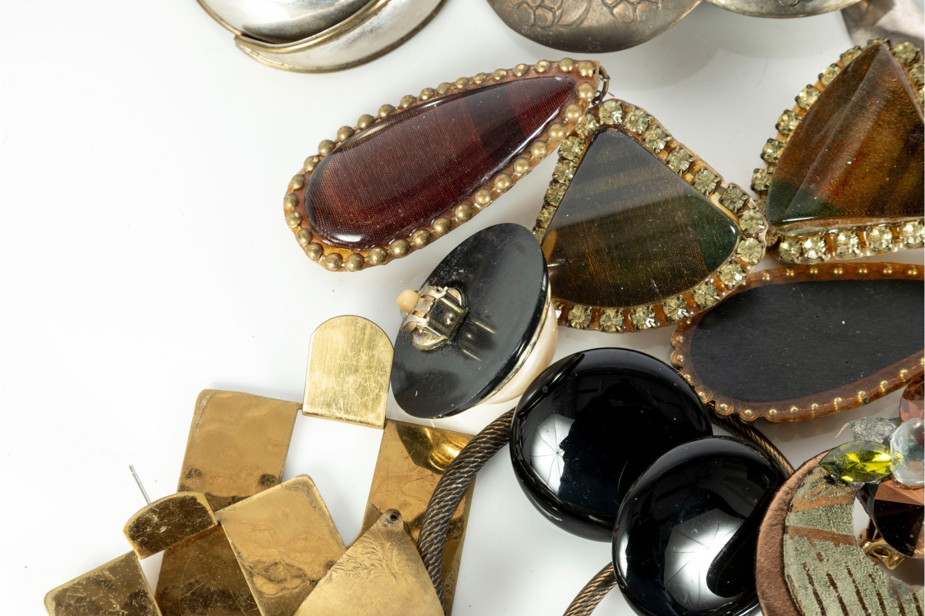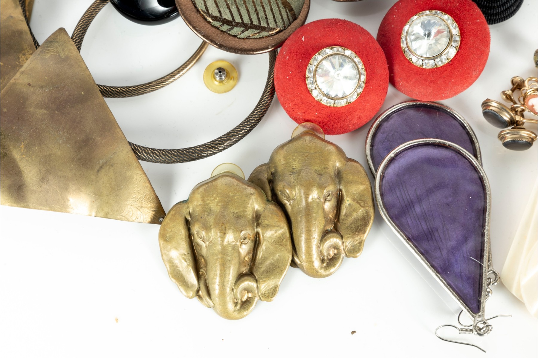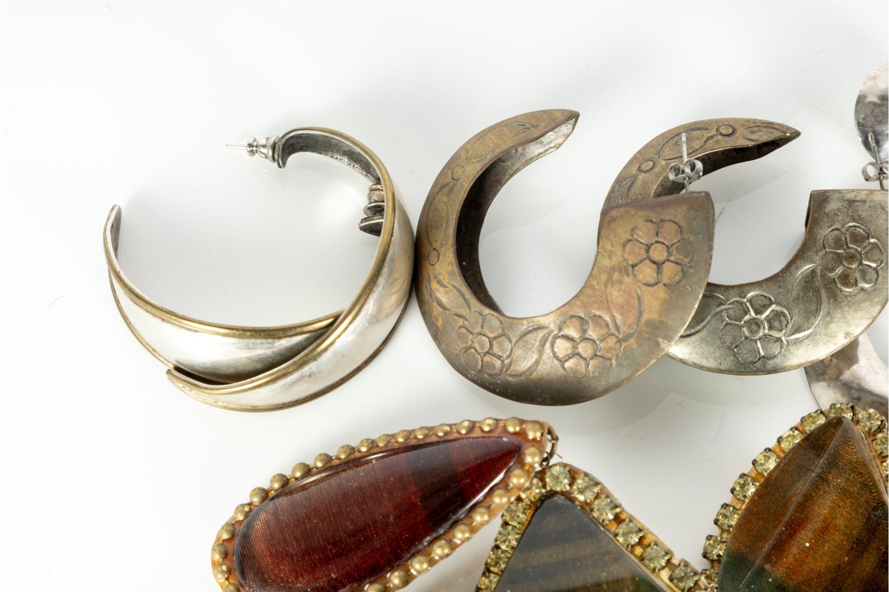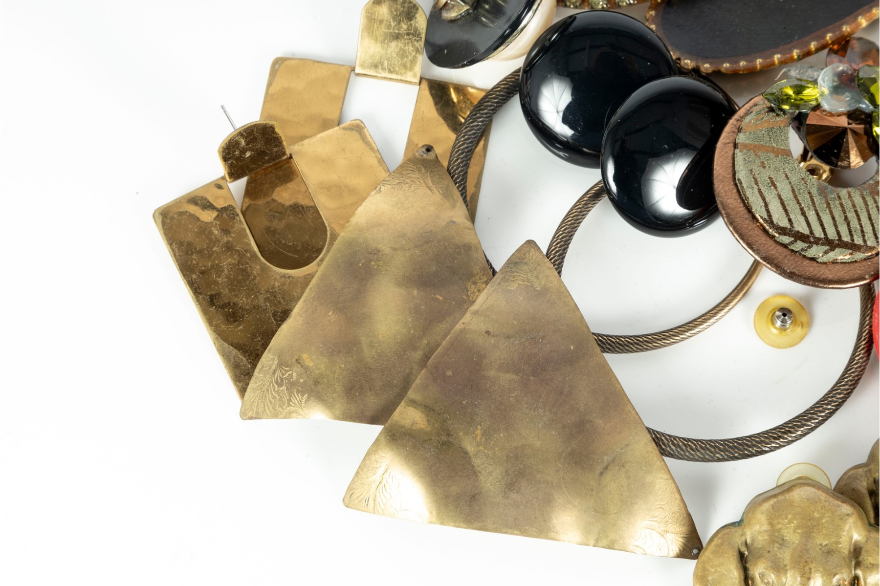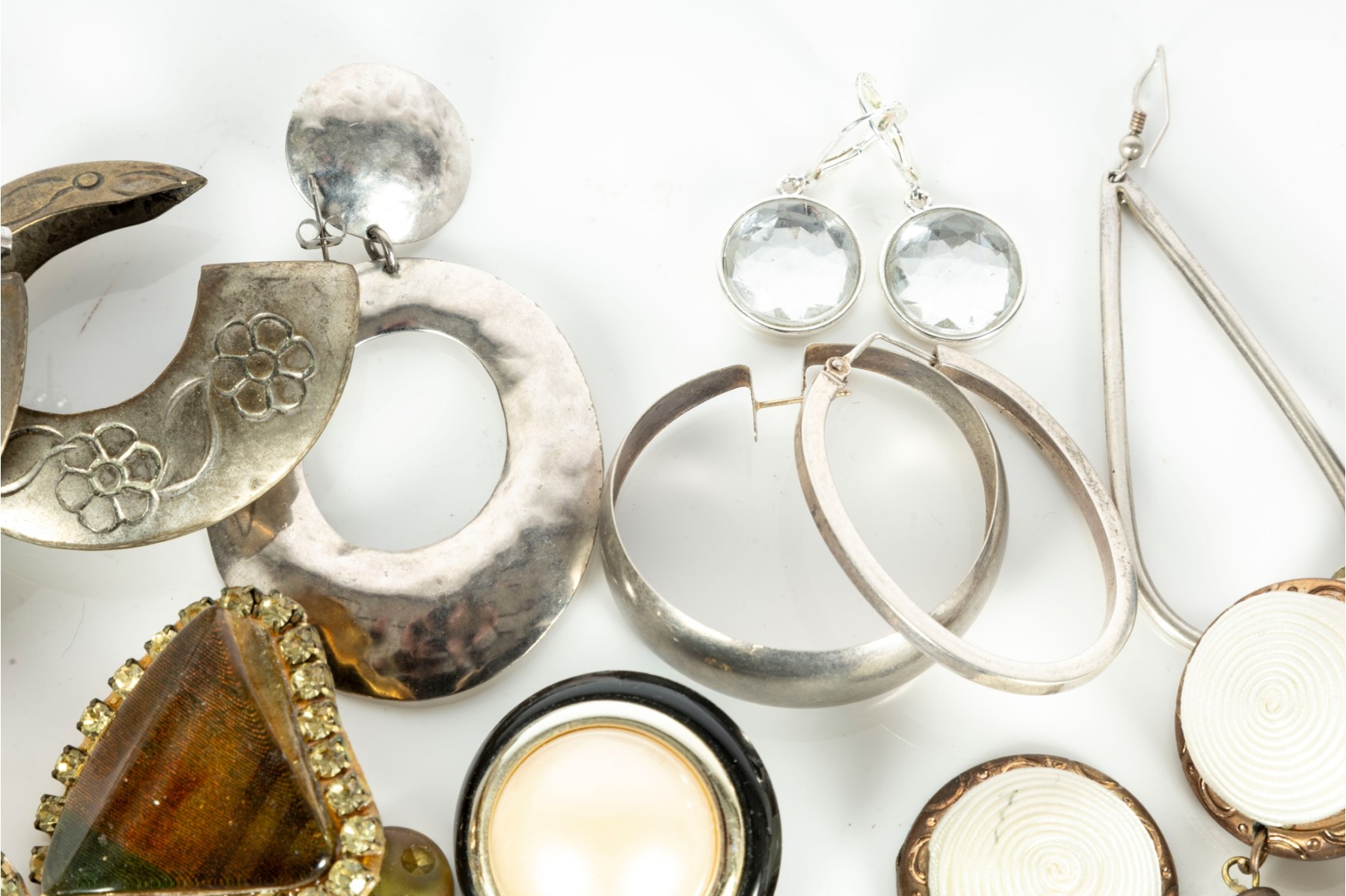 A small collection of intriguing costume jewelry earrings of varying designs. Cotents as shown and sold as is,see photos for details.