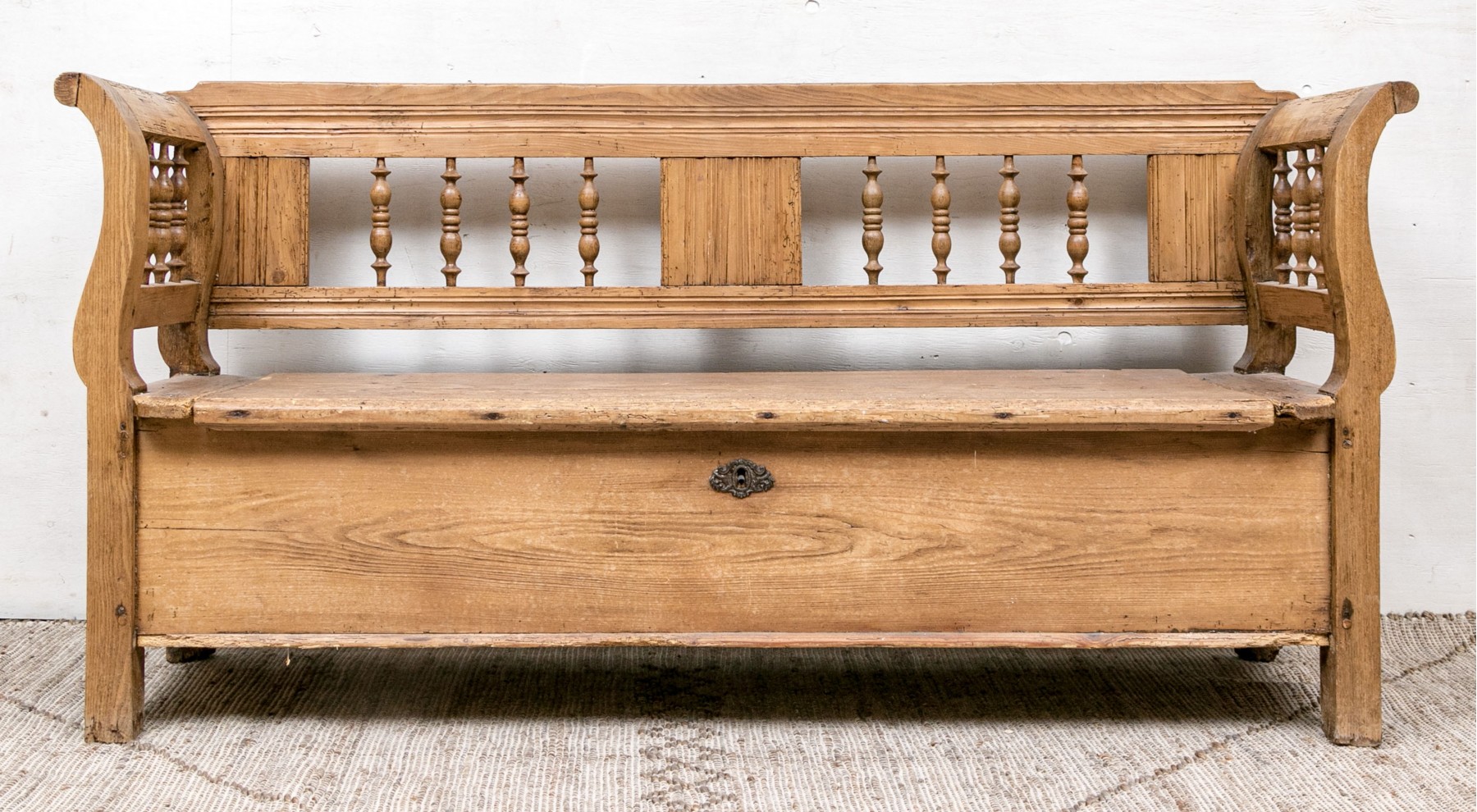 Country Pine Carved Bench With Storage #260554. Black Rock Galleries provides high end estate liquidation services through online estate auctions and a 50,000 sq ft designer showroom. estate liquidator, estate sale, online auction, antiques, fine art, liquidation, clean outs, auction, consignment, interior design, fine jewelry, collectibles, appraisals, estate appraisals, estate services, decor, furniture, furniture consignment, antique center, consignment shop. We offer appraisal services and specialize in fine art, jewelry, antiques and decorative arts. Sell with us. Black Rock Galleries is the tri-state's largest estate liquidator serving New England and the greater New York City area. We are the trusted source for expert appraisals, auction services, estate sales, and consignments. Black Rock Galleries is the east coast's largest and most trusted estate liquidator, with locations in Connecticut, greater Boston, MA and Raleigh, NC, Fairfield, Southport, Apex, TX. We are the best source for expert appraisals, auction services, estate sales and consignments. We have served thousands of families and estates with compassion, professionalism and expertise. BRG works with attorneys, executors, realtors and families to bring the greatest return on personal and estate property in the current market. Our unique combination of services make us the easy choice to get the job done in a timely and stress-free manner. We are with you from the initial consultation to the final clean out. Our house-built online auction software platform offers clients a dynamic approach to liquidating their personal property. This venue is most successful in bringing the best return with the least amount of disruption for our clients. See our services page for a complete description of this offering. Country Pine Carved Bench With Storage #260554