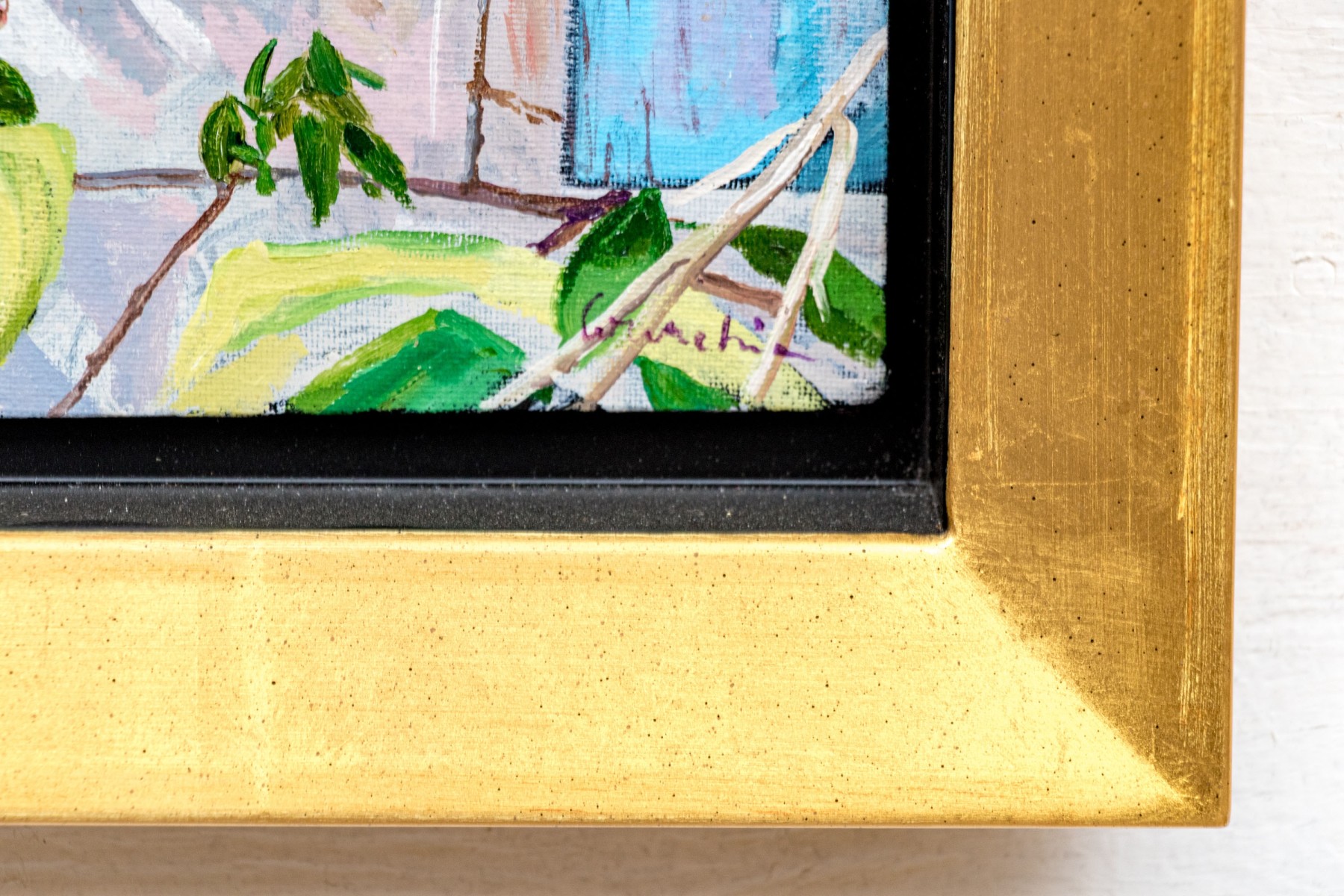 A small bend to the lower left corner of the canvas board. Overall presents very well.