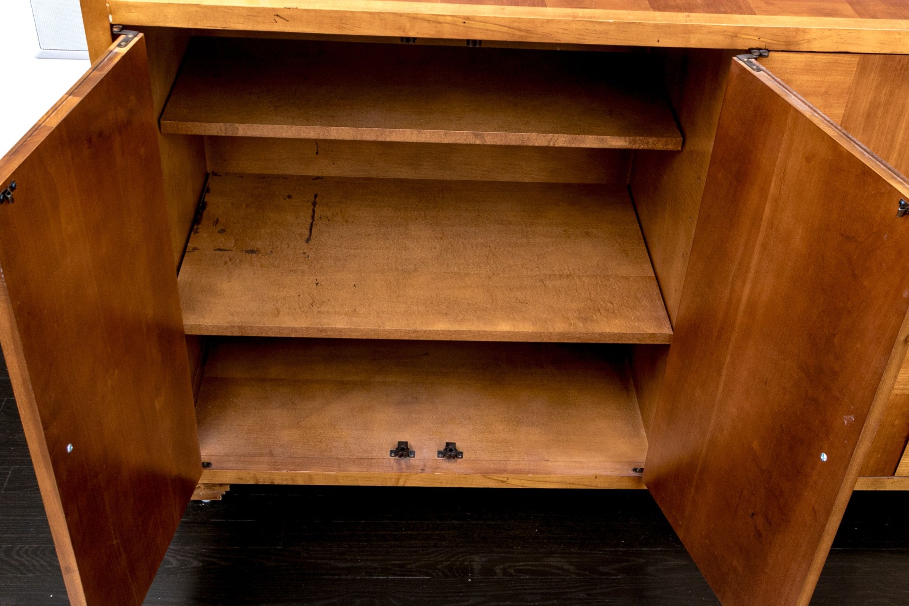Elevate your interior with the Crate & Barrel Grandmaster Credenza, a sophisticated piece that combines functionality with elegant design. Crafted with rich wood and finished with a refined sheen, this credenza features sleek lines and contemporary hardware. It offers ample storage with multiple drawers and cabinets, making it perfect for organizing essentials while adding a touch of modern sophistication to your space. Its versatile design allows it to seamlessly integrate into both traditional and modern settings, making it a timeless addition to your home office, dining area, or living room.