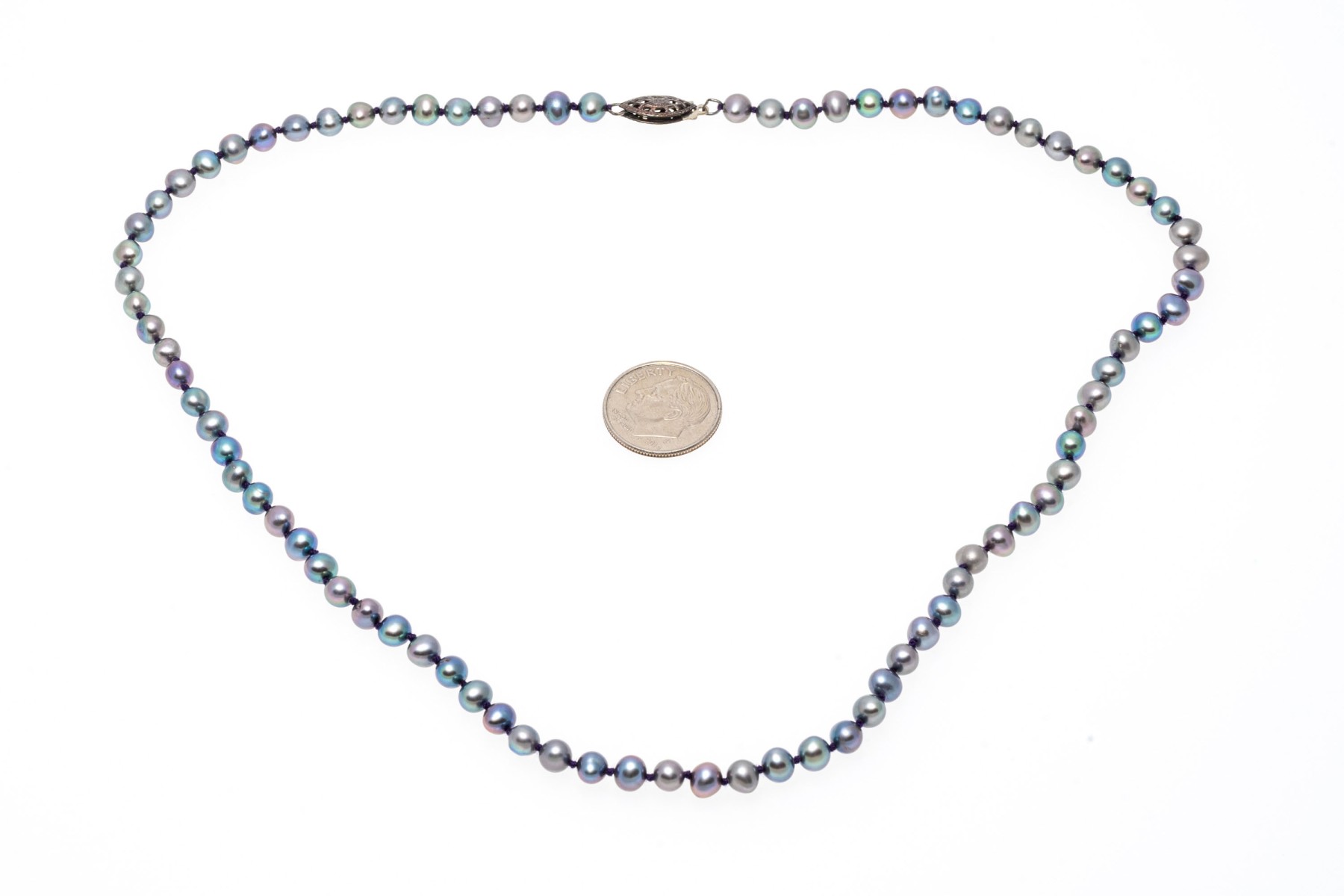 Cultured Grey Black Freshwater Pearl Simple 18" Single Strand Necklace #255715. Black Rock Galleries provides high end estate liquidation services through online estate auctions and a 50,000 sq ft designer showroom. estate liquidator, estate sale, online auction, antiques, fine art, liquidation, clean outs, auction, consignment, interior design, fine jewelry, collectibles, appraisals, estate appraisals, estate services, decor, furniture, furniture consignment, antique center, consignment shop. We offer appraisal services and specialize in fine art, jewelry, antiques and decorative arts. Sell with us. Black Rock Galleries is the tri-state's largest estate liquidator serving New England and the greater New York City area. We are the trusted source for expert appraisals, auction services, estate sales, and consignments. Black Rock Galleries is the east coast's largest and most trusted estate liquidator, with locations in Connecticut, greater Boston, MA and Raleigh, NC, Fairfield, Southport, Apex, TX. We are the best source for expert appraisals, auction services, estate sales and consignments. We have served thousands of families and estates with compassion, professionalism and expertise. BRG works with attorneys, executors, realtors and families to bring the greatest return on personal and estate property in the current market. Our unique combination of services make us the easy choice to get the job done in a timely and stress-free manner. We are with you from the initial consultation to the final clean out. Our house-built online auction software platform offers clients a dynamic approach to liquidating their personal property. This venue is most successful in bringing the best return with the least amount of disruption for our clients. See our services page for a complete description of this offering. Cultured Grey Black Freshwater Pearl Simple 18" Single Strand Necklace #255715