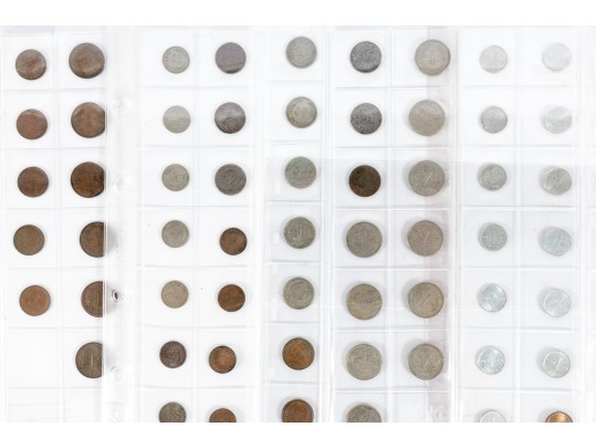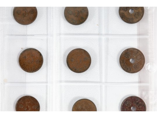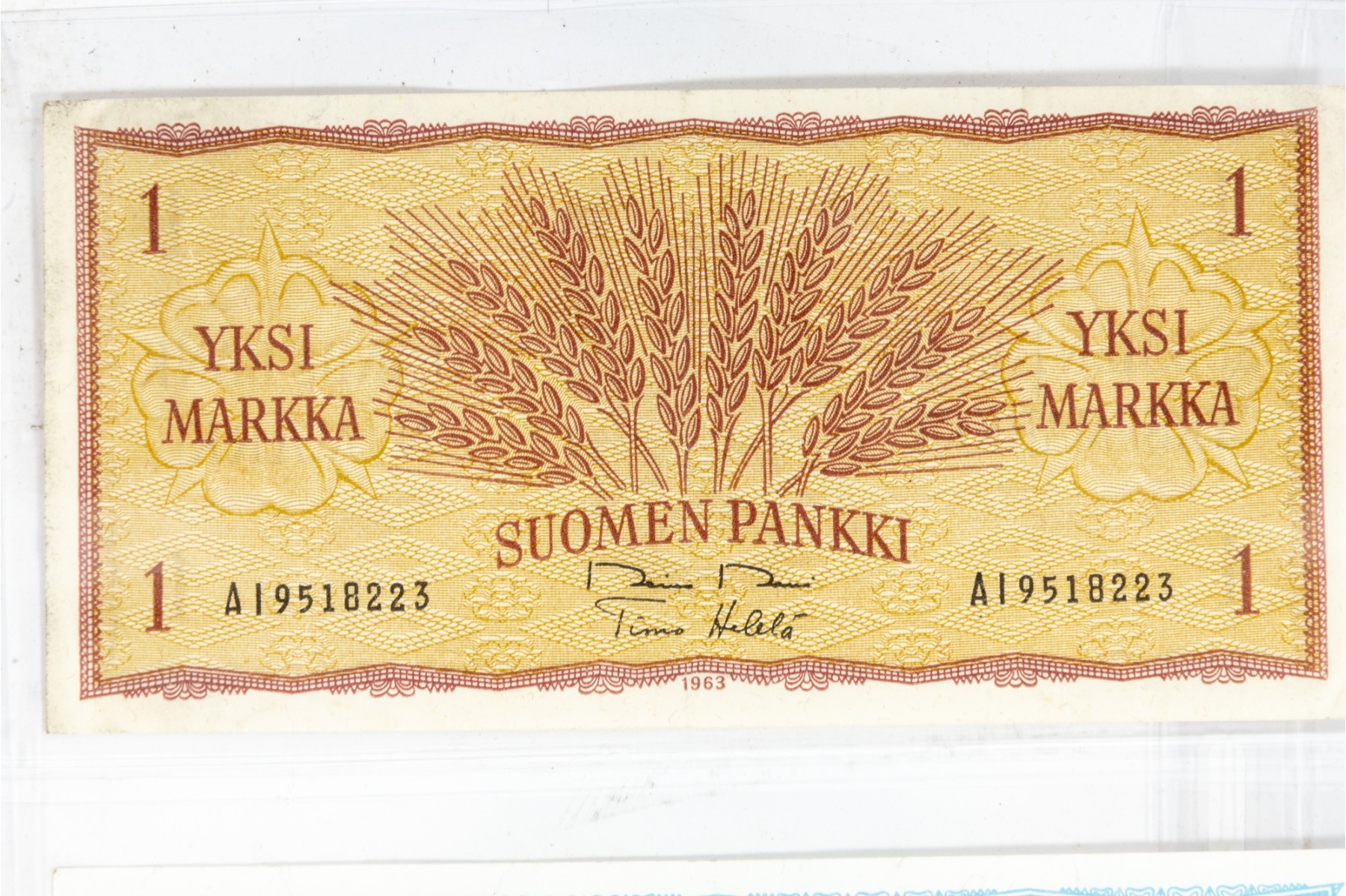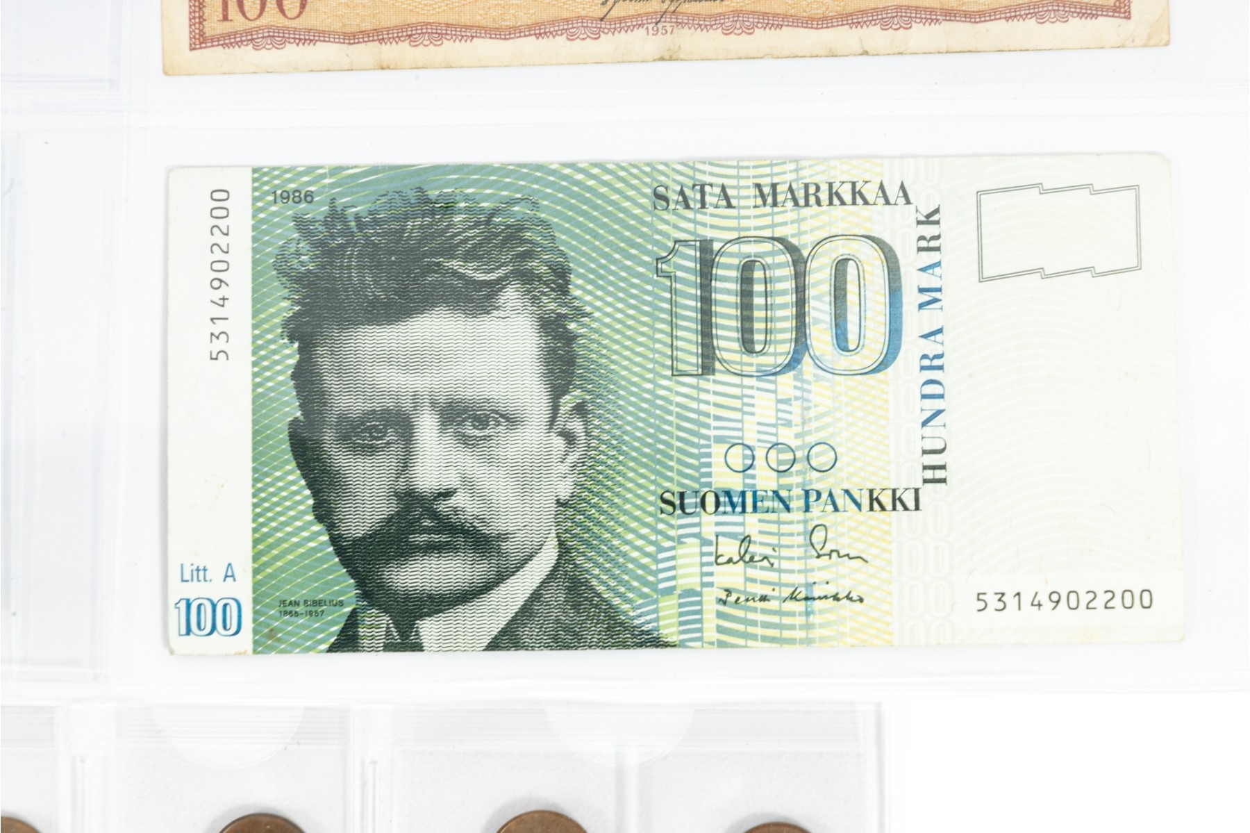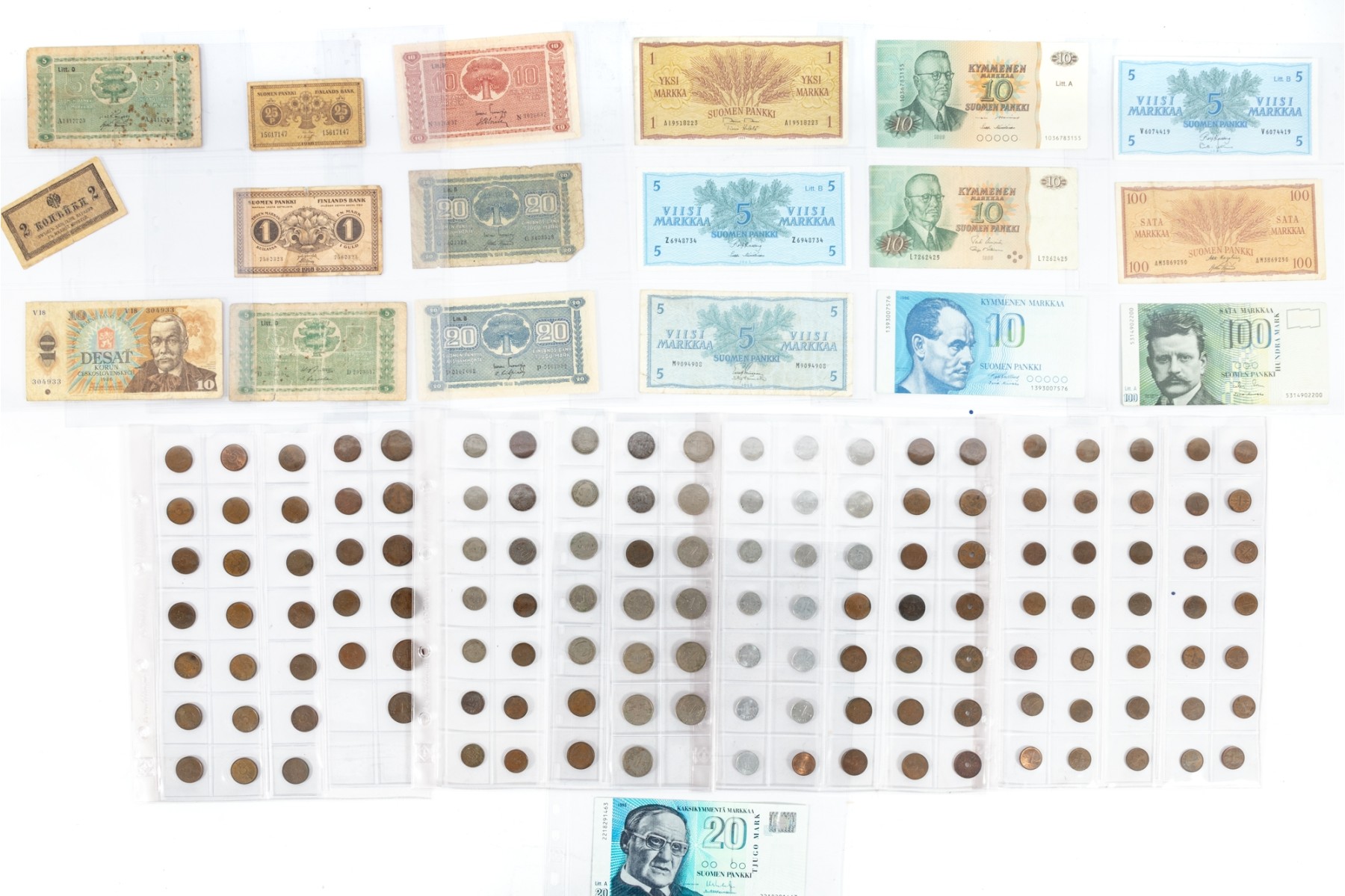 a comprehensive binder containing various Finish coins -- standard circulation coins; 1 Markka, Pennia, Penni coins alongside varied bank notes. See photos for details.