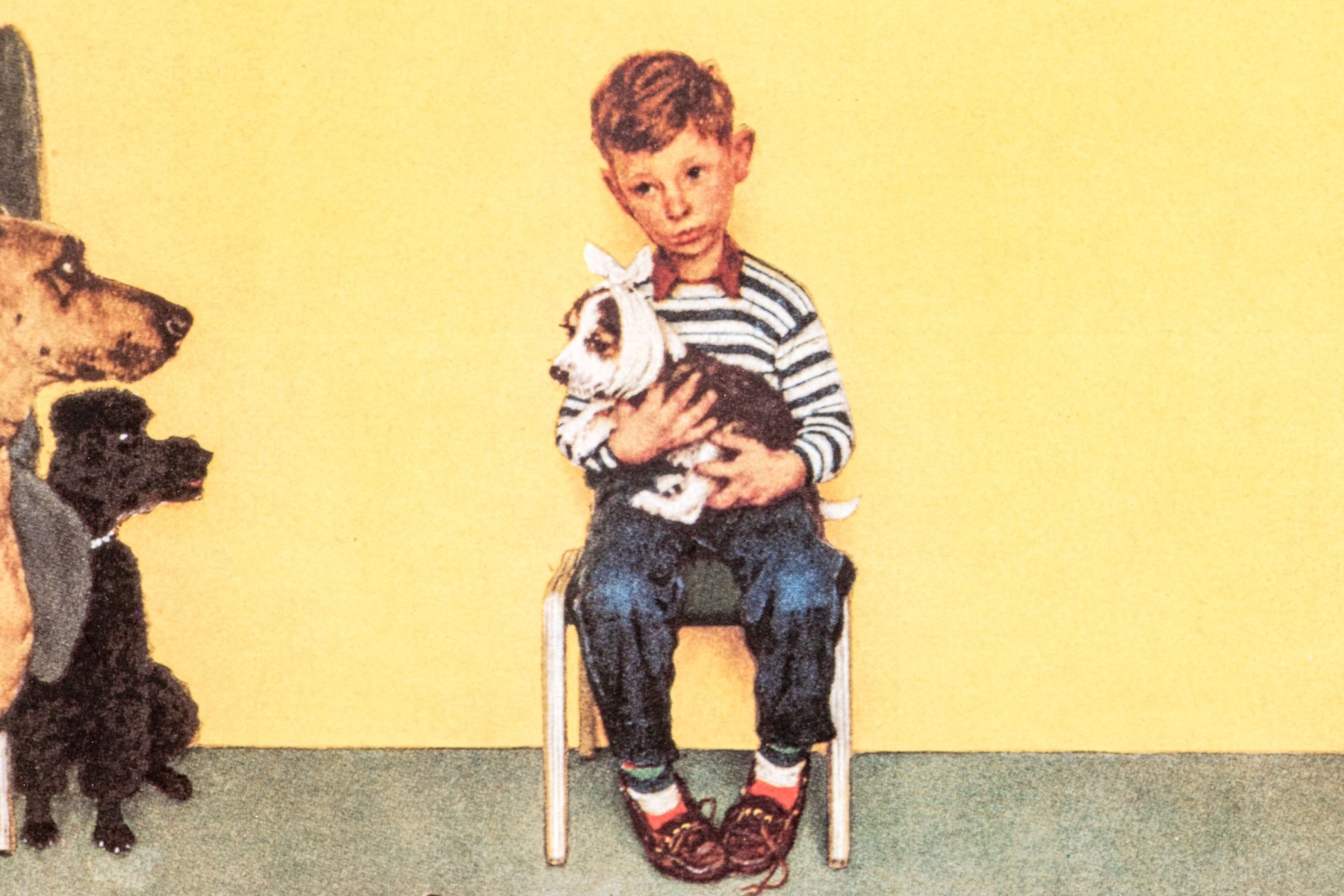 Bearing a brass plaque which reads: "Waiting for the Vet" by Norman Rockwell / Custom Crafted for Natalie Wells".