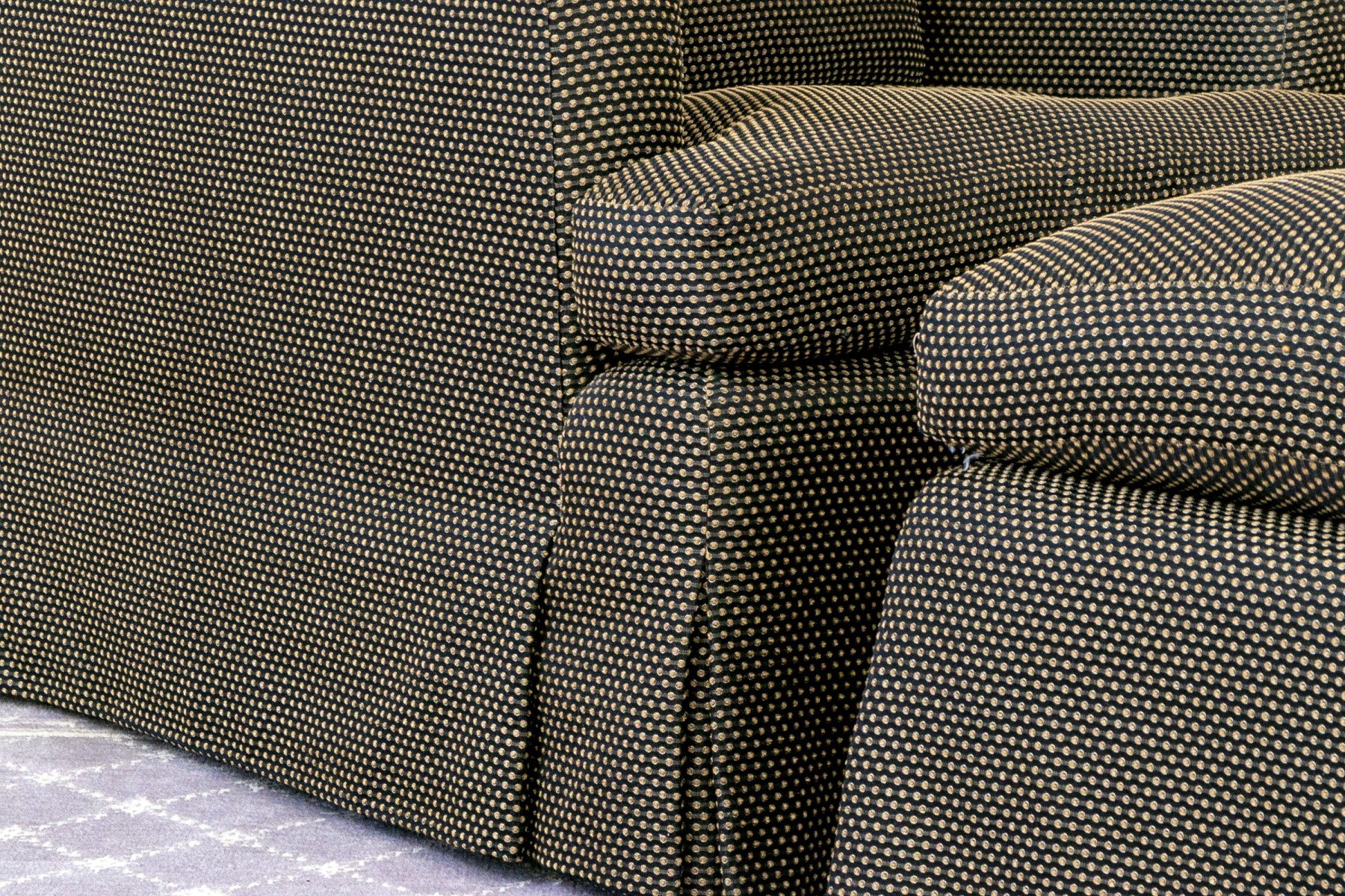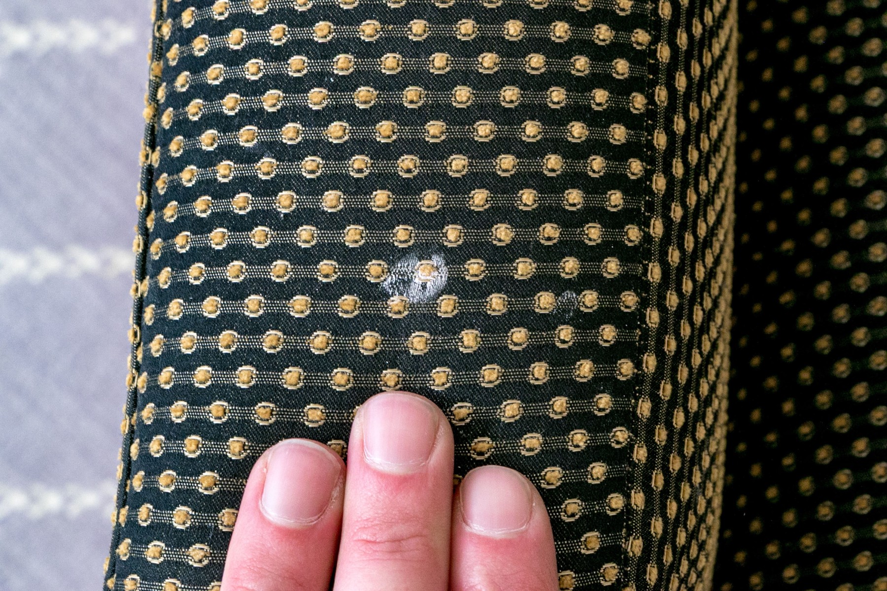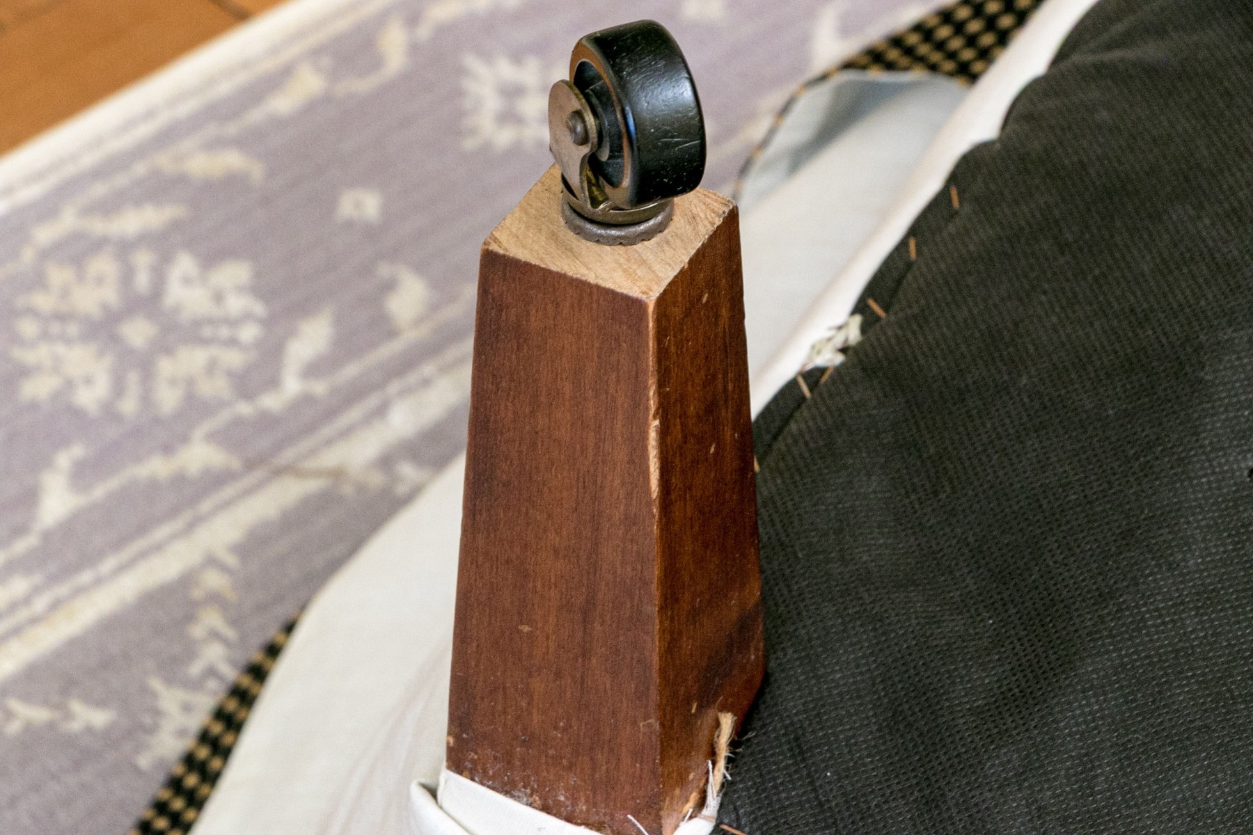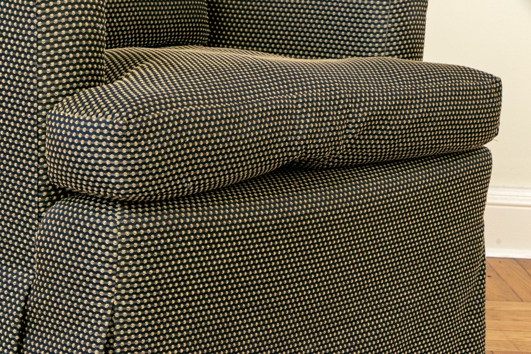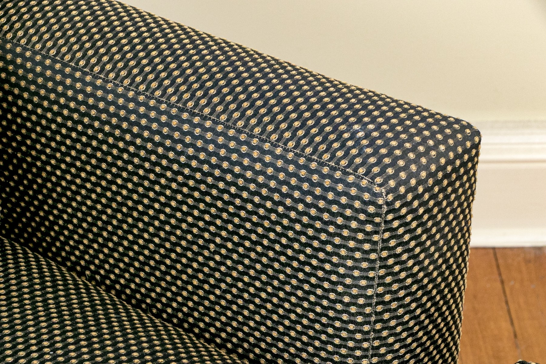 A few stained spots and wear to the upholstery commensurate with age and use.