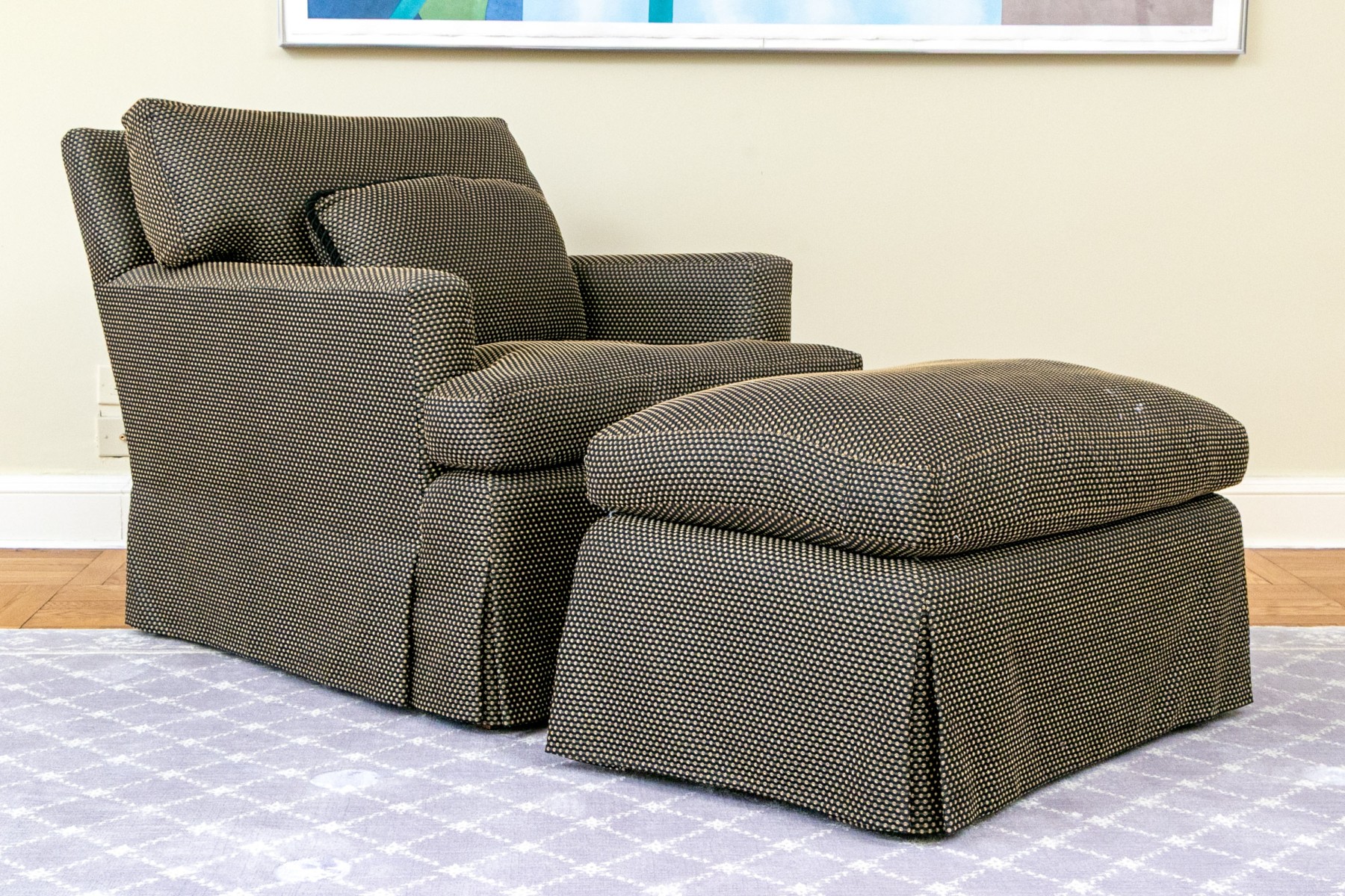 Custom Upholstered Club Chair With Ottoman #441902. Black Rock Galleries provides high end estate liquidation services through online estate auctions and a 50,000 sq ft designer showroom. estate liquidator, estate sale, online auction, antiques, fine art, liquidation, clean outs, auction, consignment, interior design, fine jewelry, collectibles, appraisals, estate appraisals, estate services, decor, furniture, furniture consignment, antique center, consignment shop. We offer appraisal services and specialize in fine art, jewelry, antiques and decorative arts. Sell with us. Black Rock Galleries is the tri-state's largest estate liquidator serving New England and the greater New York City area. We are the trusted source for expert appraisals, auction services, estate sales, and consignments. Black Rock Galleries is the east coast's largest and most trusted estate liquidator, with locations in Connecticut, greater Boston, MA and Raleigh, NC, Fairfield, Southport, Apex, TX. We are the best source for expert appraisals, auction services, estate sales and consignments. We have served thousands of families and estates with compassion, professionalism and expertise. BRG works with attorneys, executors, realtors and families to bring the greatest return on personal and estate property in the current market. Our unique combination of services make us the easy choice to get the job done in a timely and stress-free manner. We are with you from the initial consultation to the final clean out. Our house-built online auction software platform offers clients a dynamic approach to liquidating their personal property. This venue is most successful in bringing the best return with the least amount of disruption for our clients. See our services page for a complete description of this offering. Custom Upholstered Club Chair With Ottoman #441902