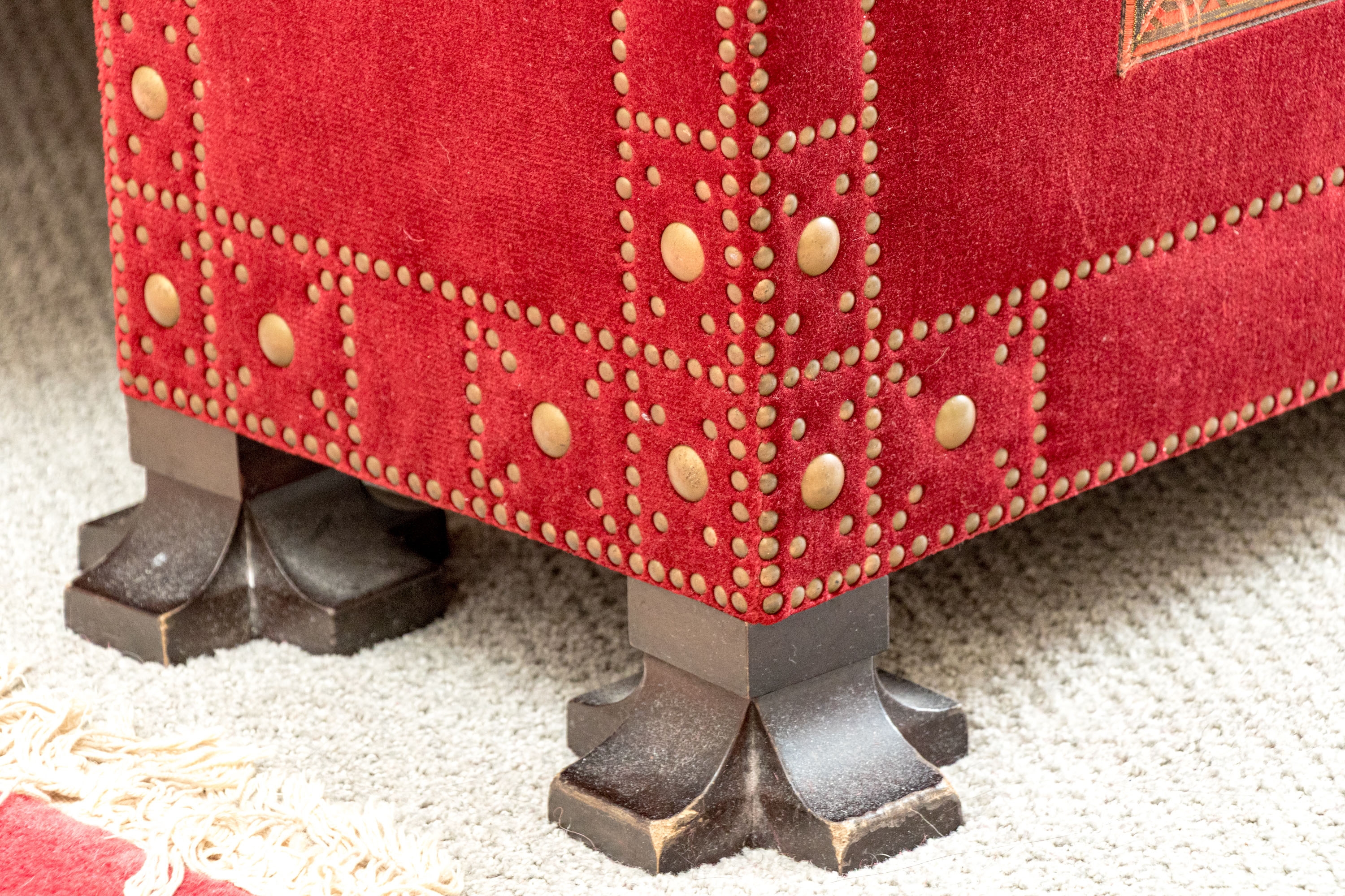 Gentle wear including losses and nics to the finish on feet and gentle wear to the upholstery on the bench commensurate with some age and use but overall in good form and presents well.