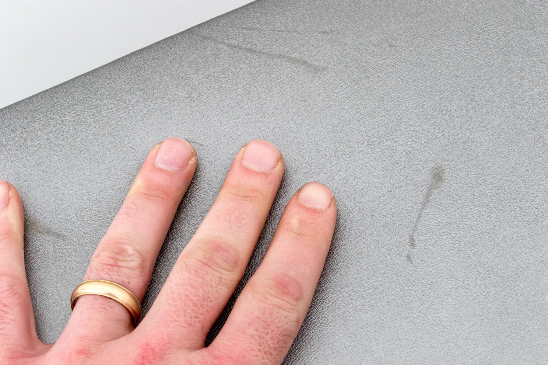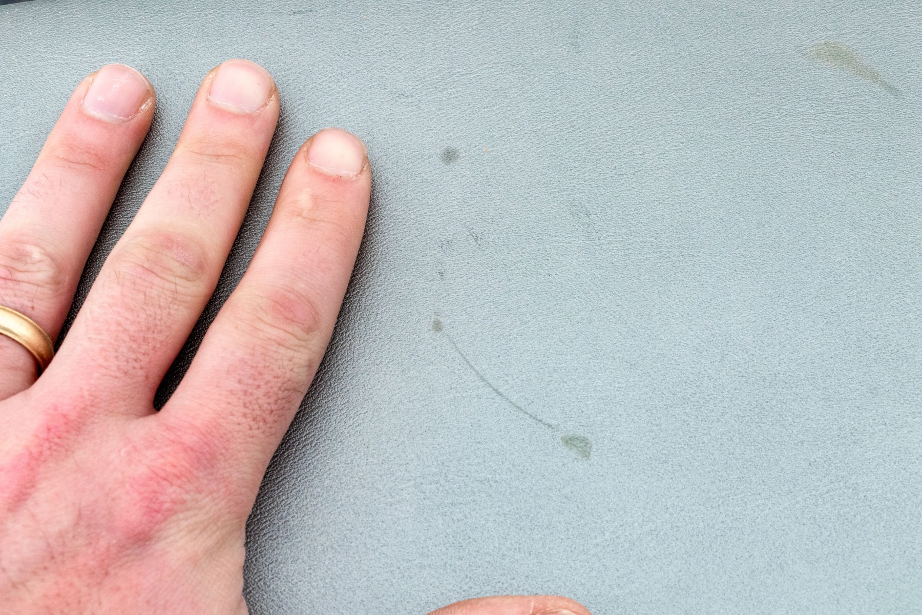 Slight scuffs to the vinyl with wear around corners and slack other places. Micro tear to the top near one corner. Despite wear presents well.