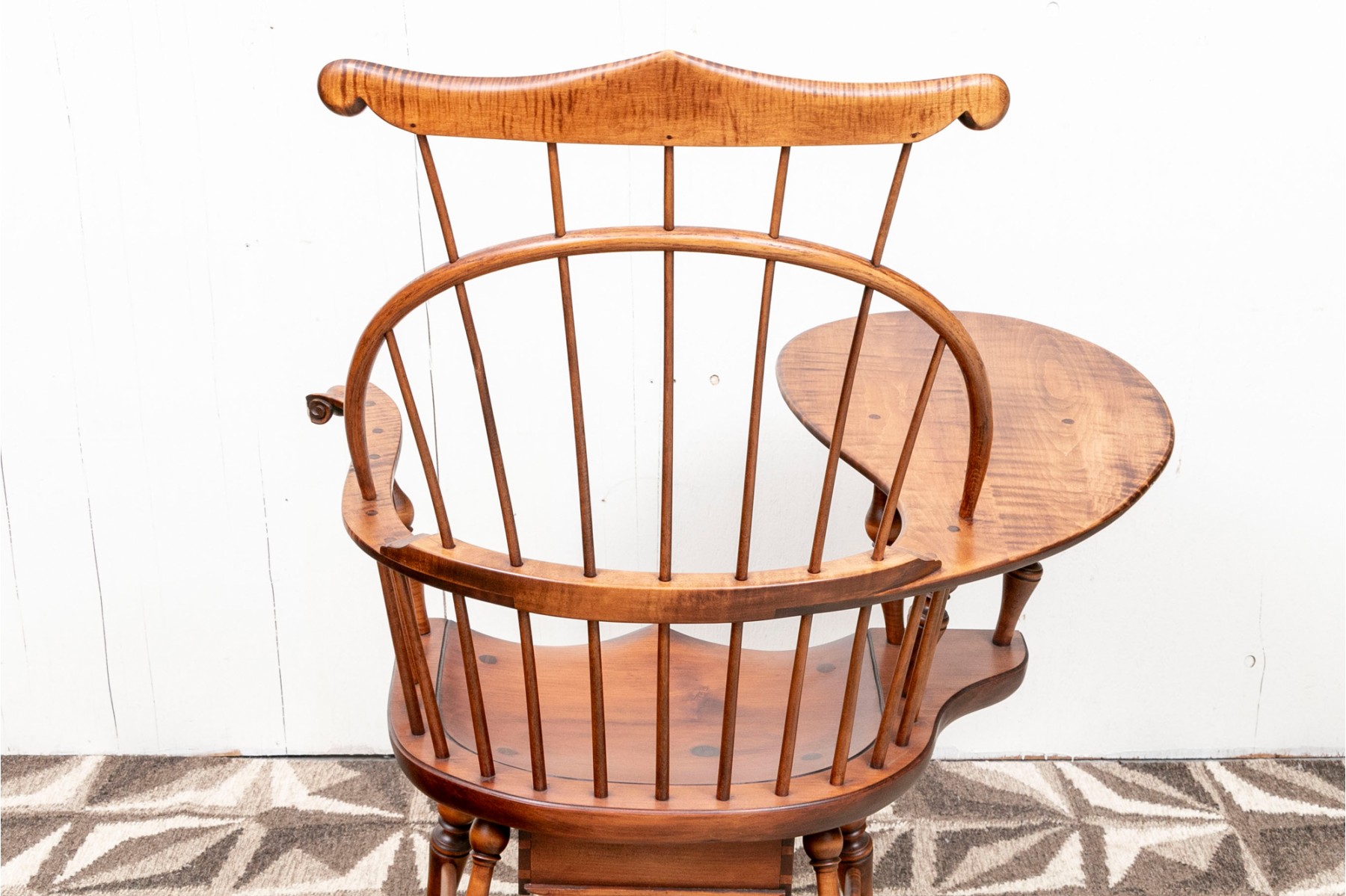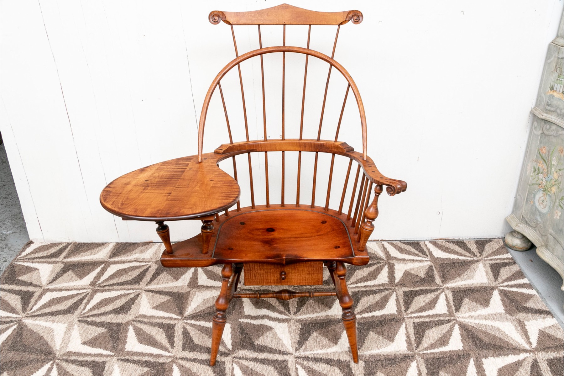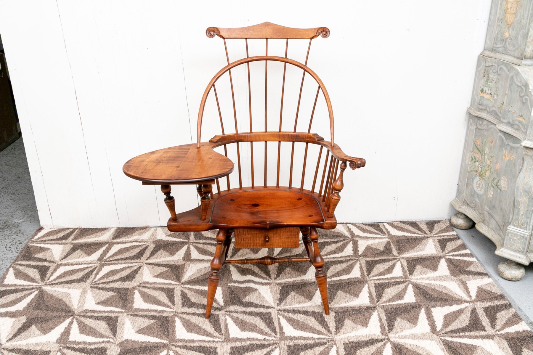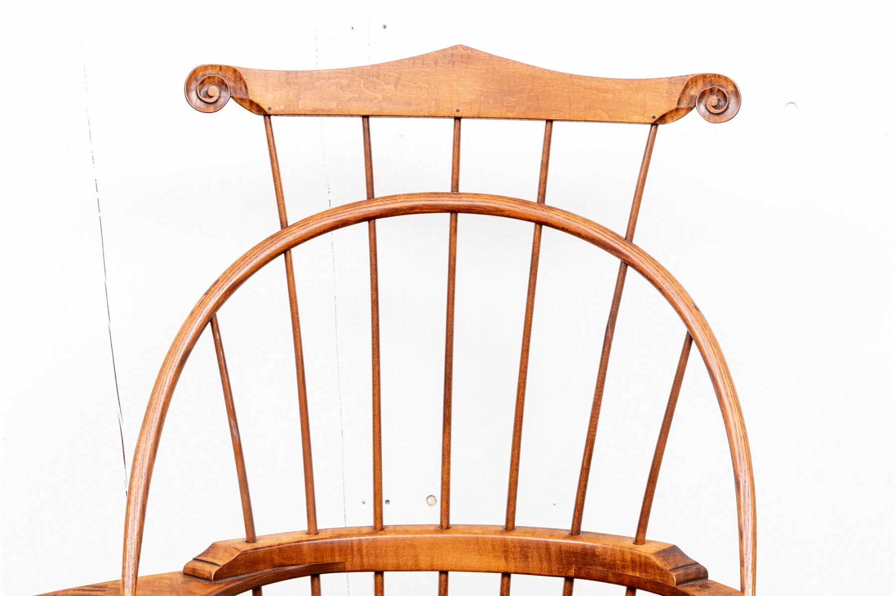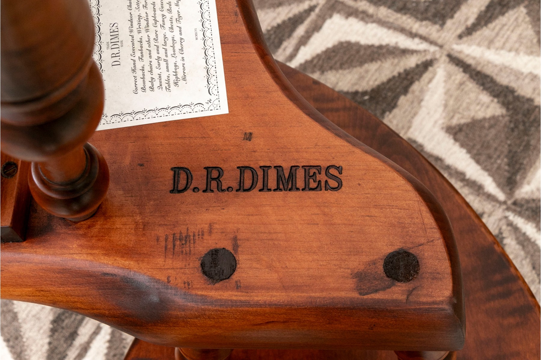 Incredible craftsmanship from celebrated furniture maker D.R. Dimes who is known for his noted Windsor Chairs. With Classic Windsor form in mixed woods with Oak Hoop Back and finished in Honey tone.