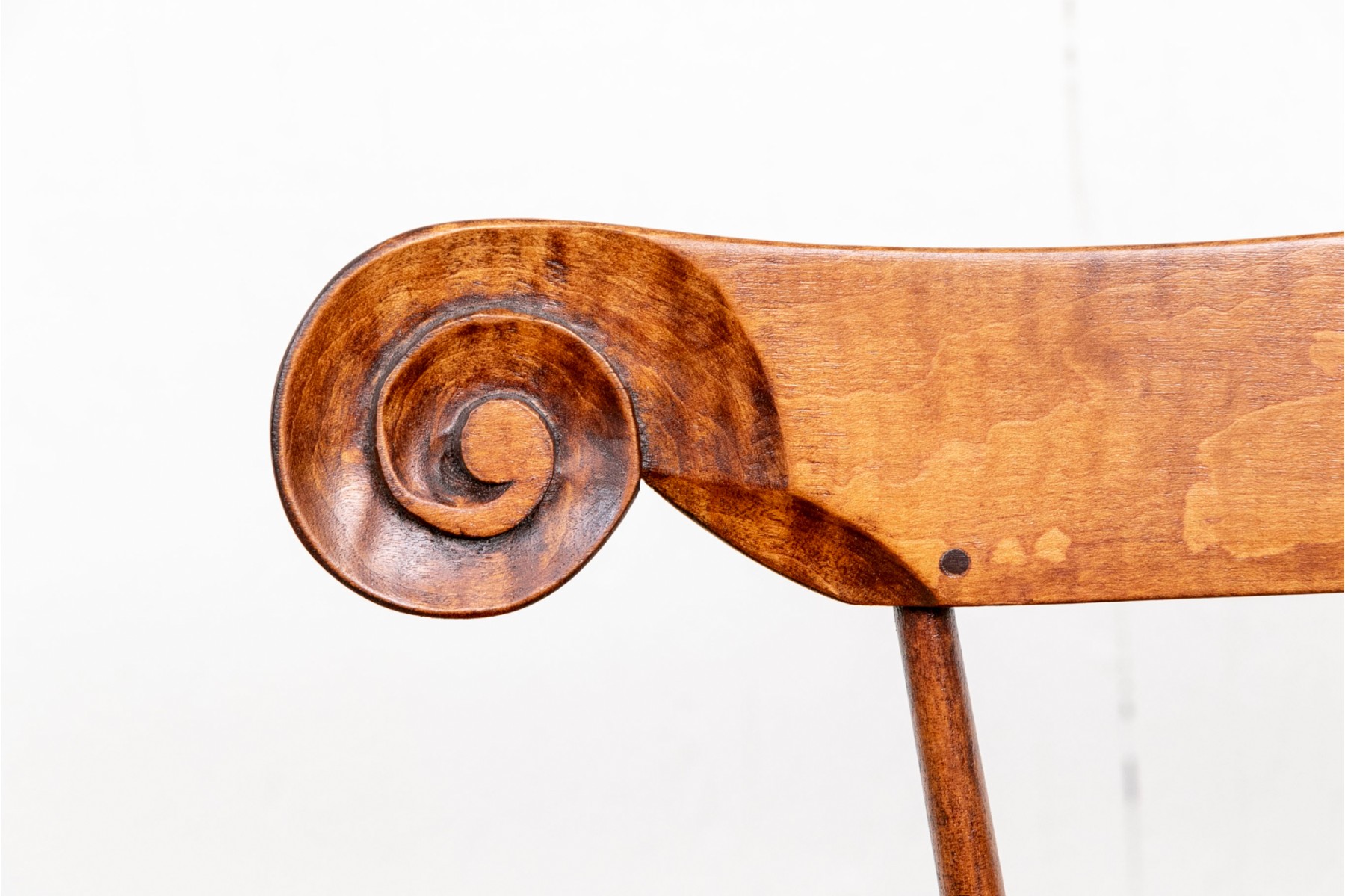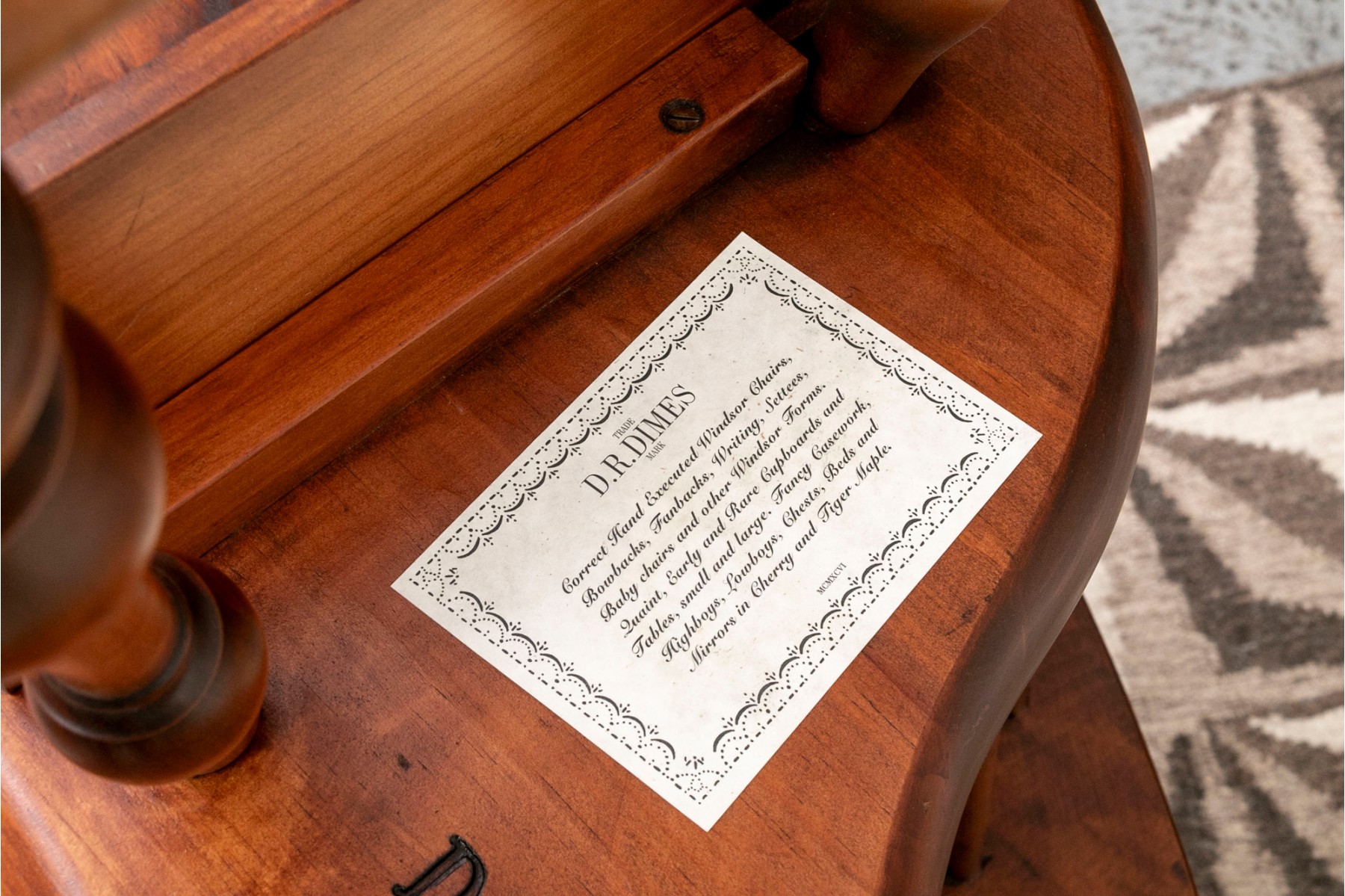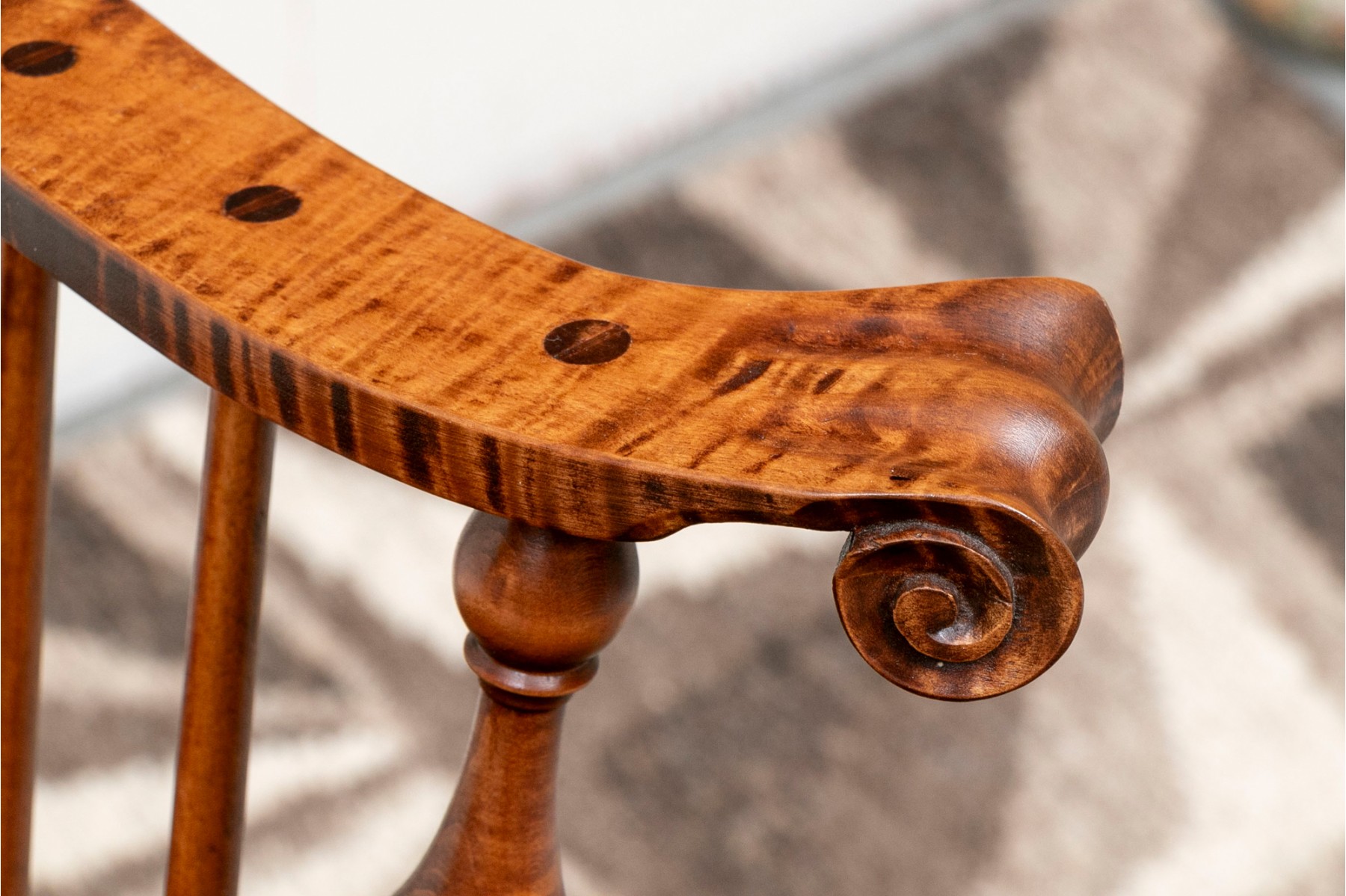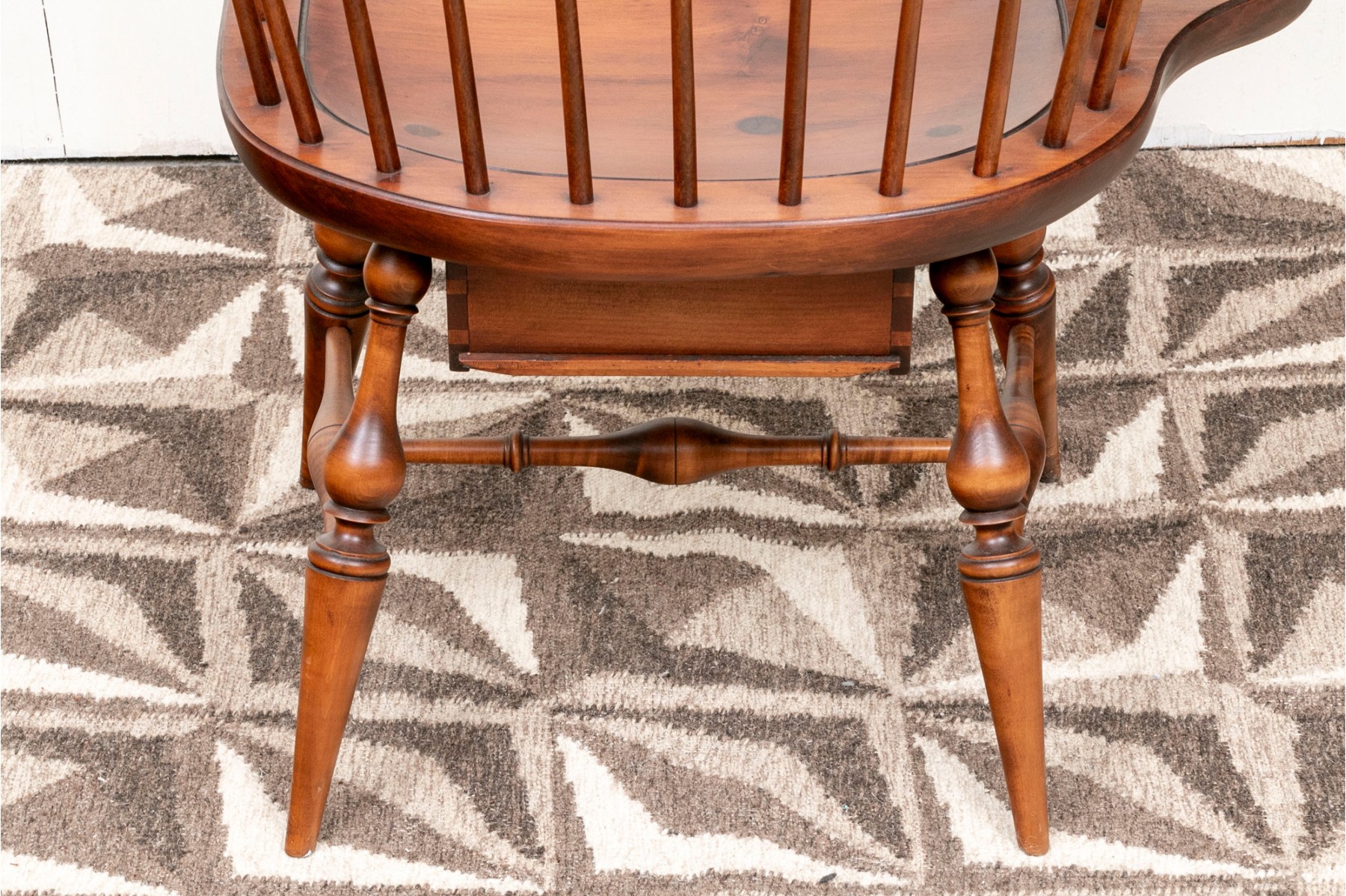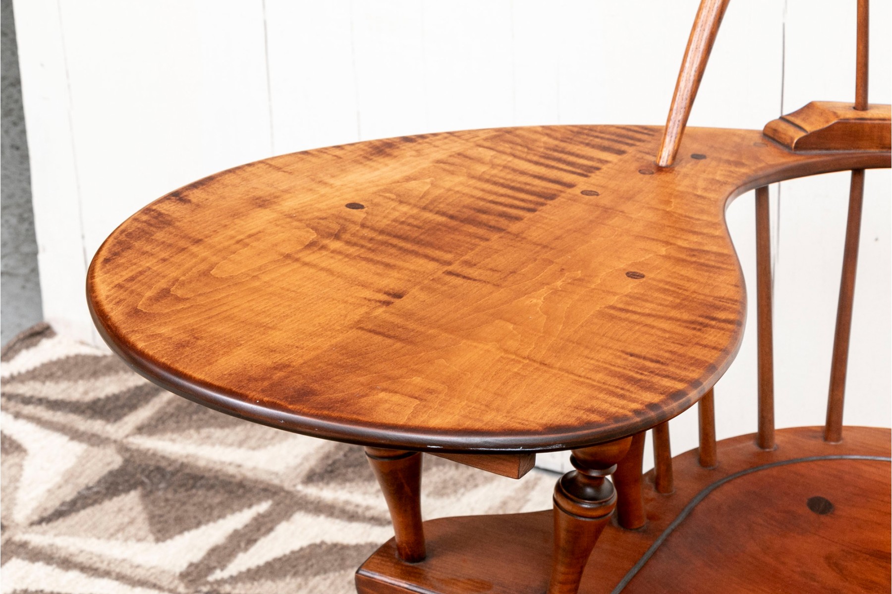 Incredible craftsmanship from celebrated furniture maker D.R. Dimes who is known for his noted Windsor Chairs. With Classic Windsor form in mixed woods with Oak Hoop Back and finished in Honey tone.