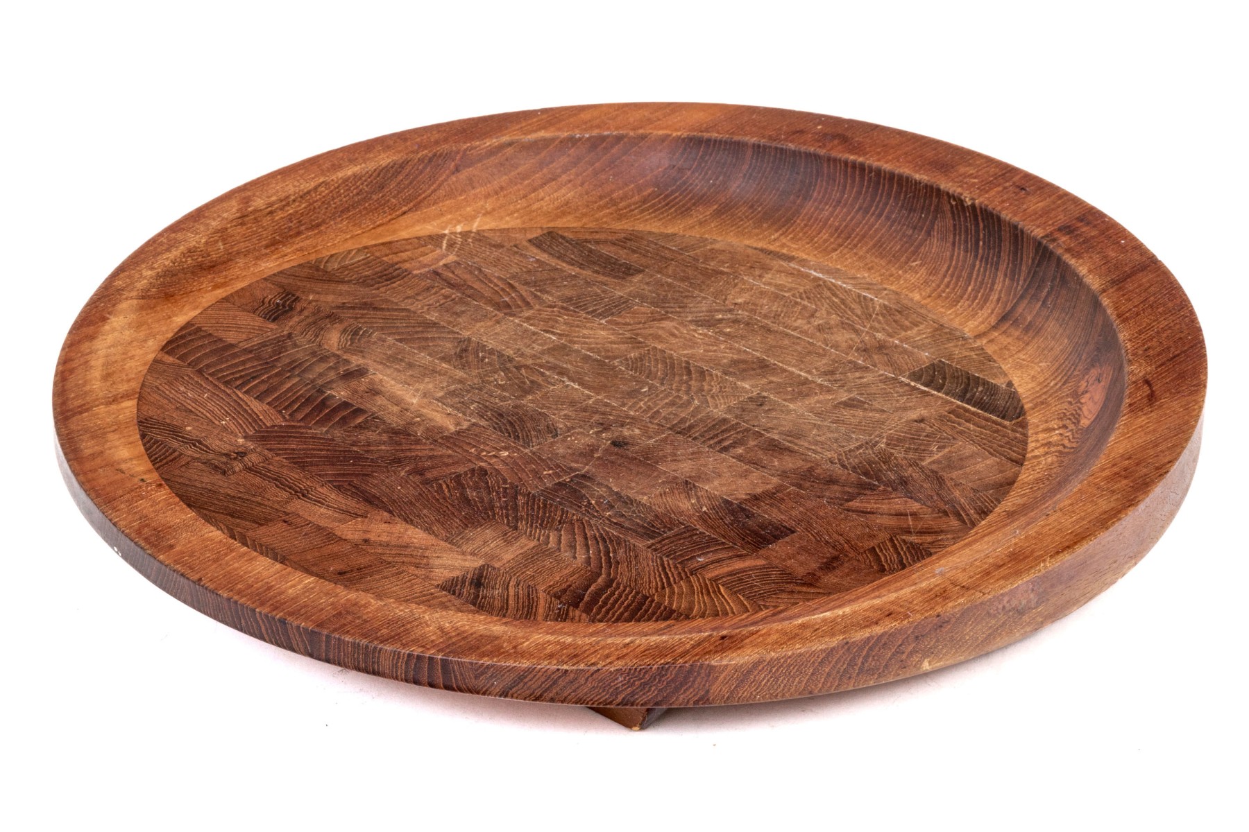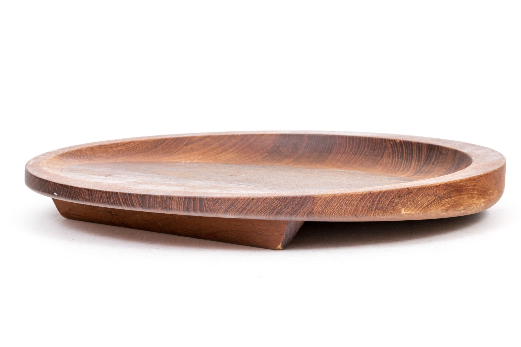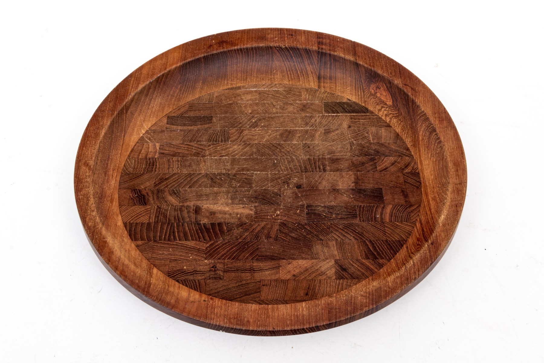 Dansk Denmark Wooden board. The handsome circular board displays an asymmetrical design with one conceived side. Retail ranges approximately $200 to $500.