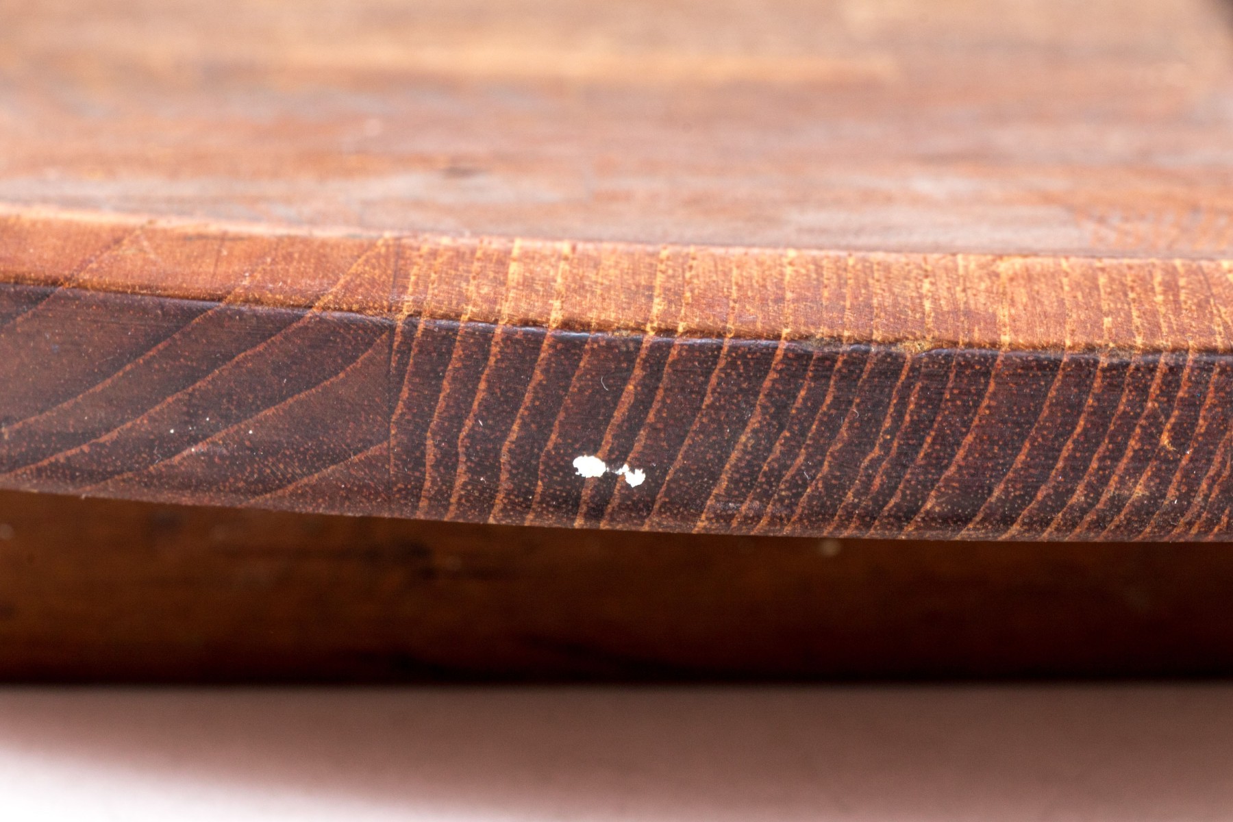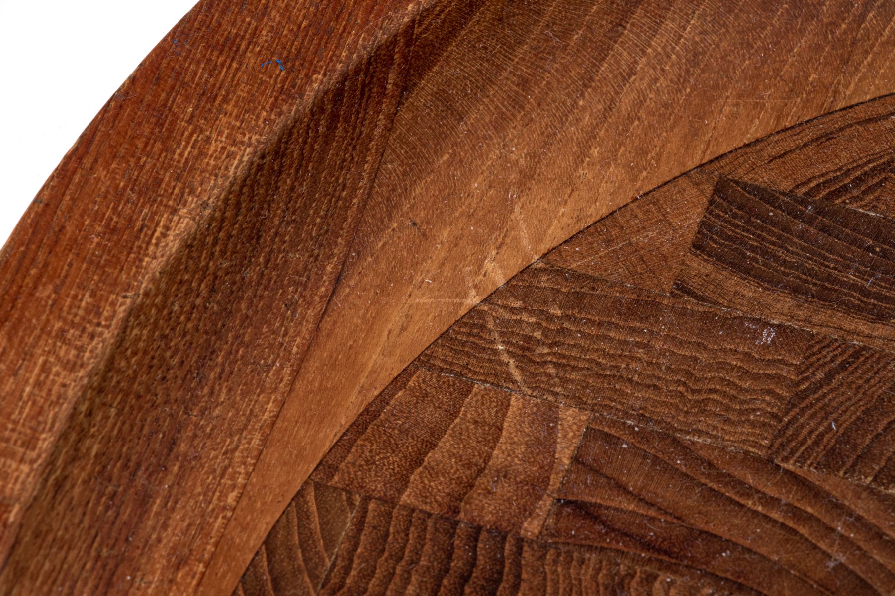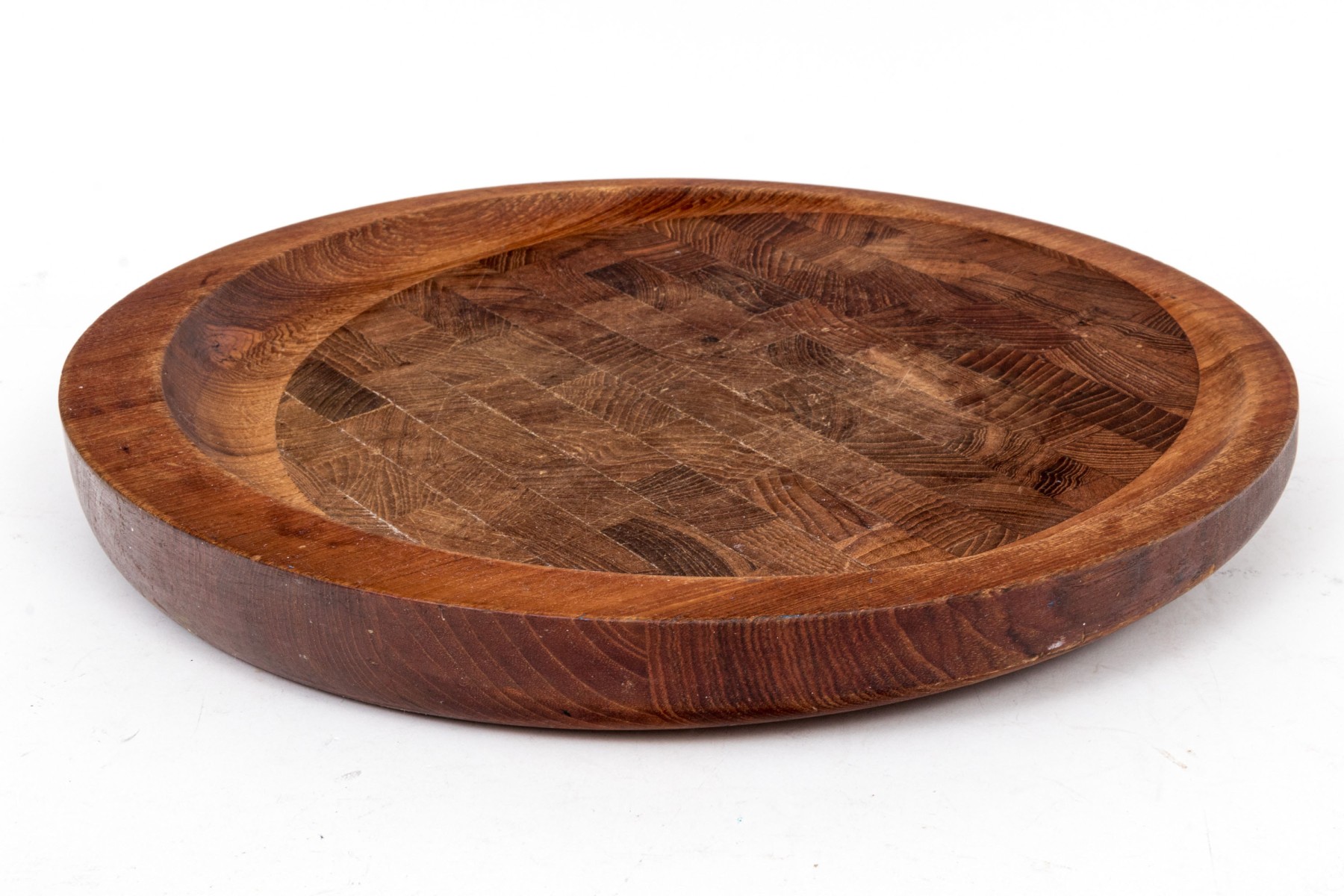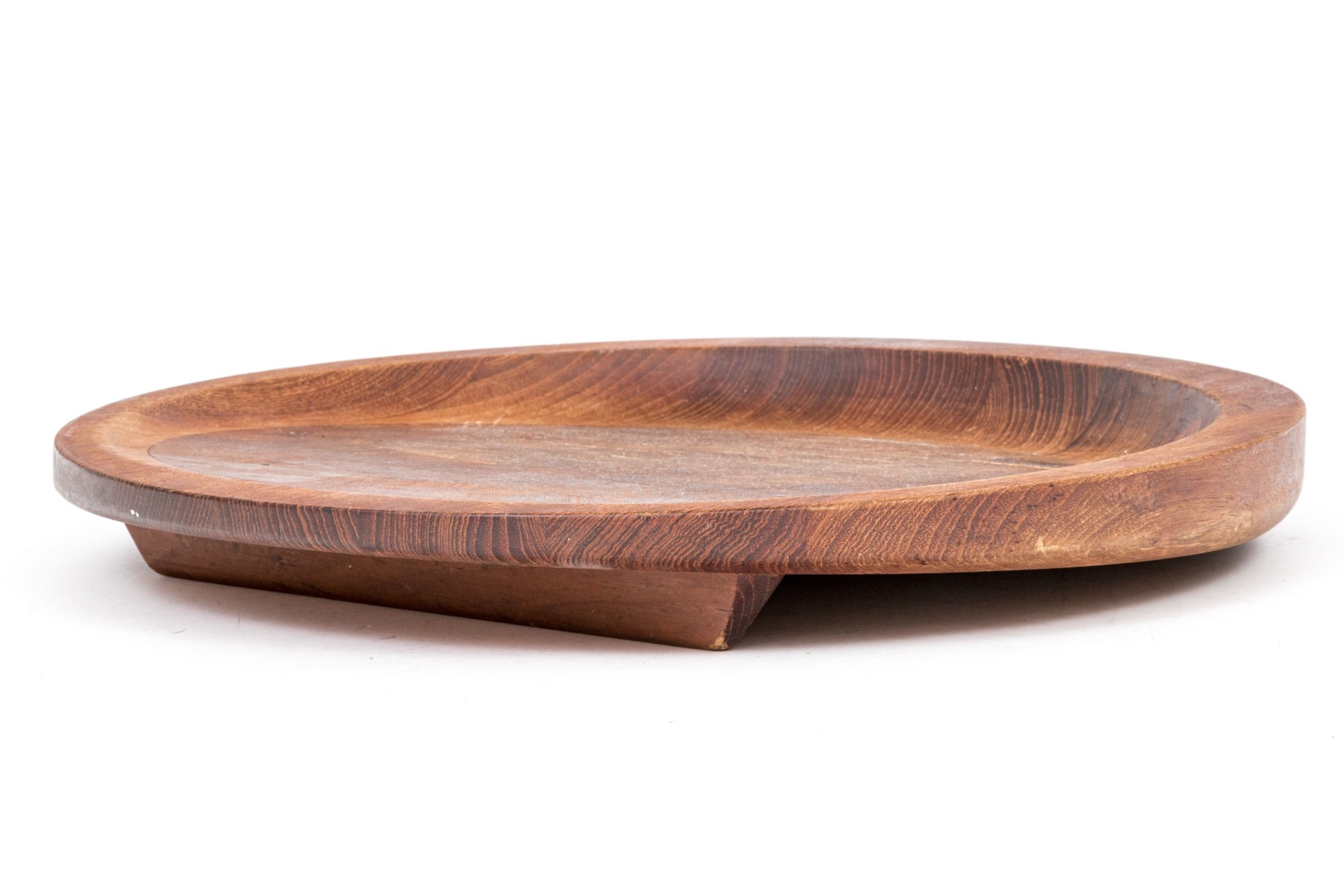 Dansk Denmark Wooden board. The handsome circular board displays an asymmetrical design with one conceived side. Retail ranges approximately $200 to $500.