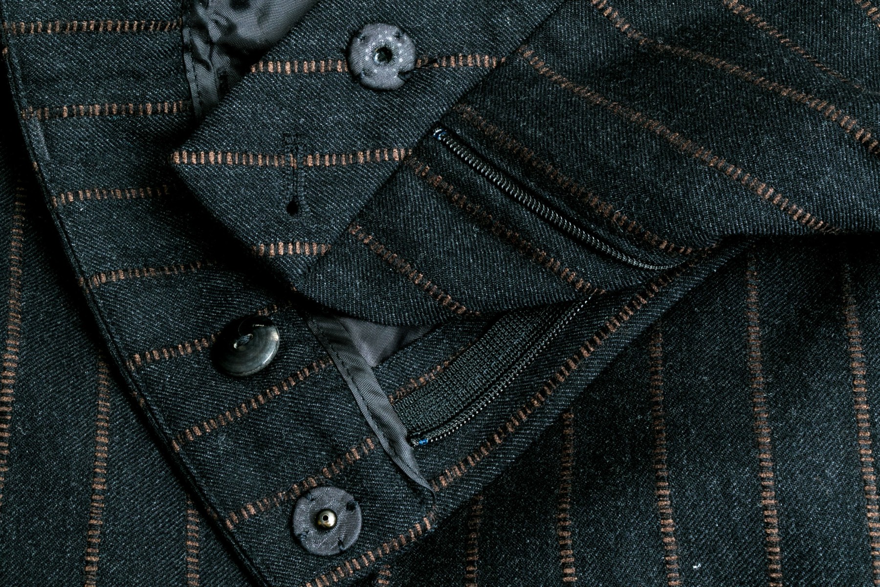 Color: Black to Charcoal-Grey with brown stripes.