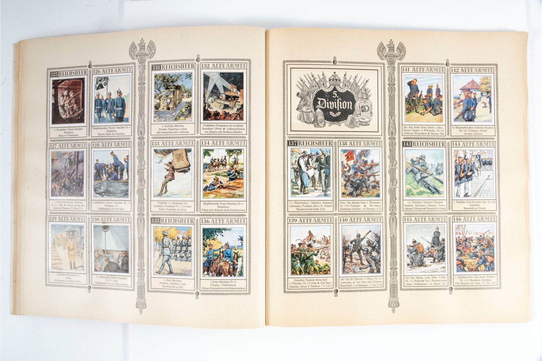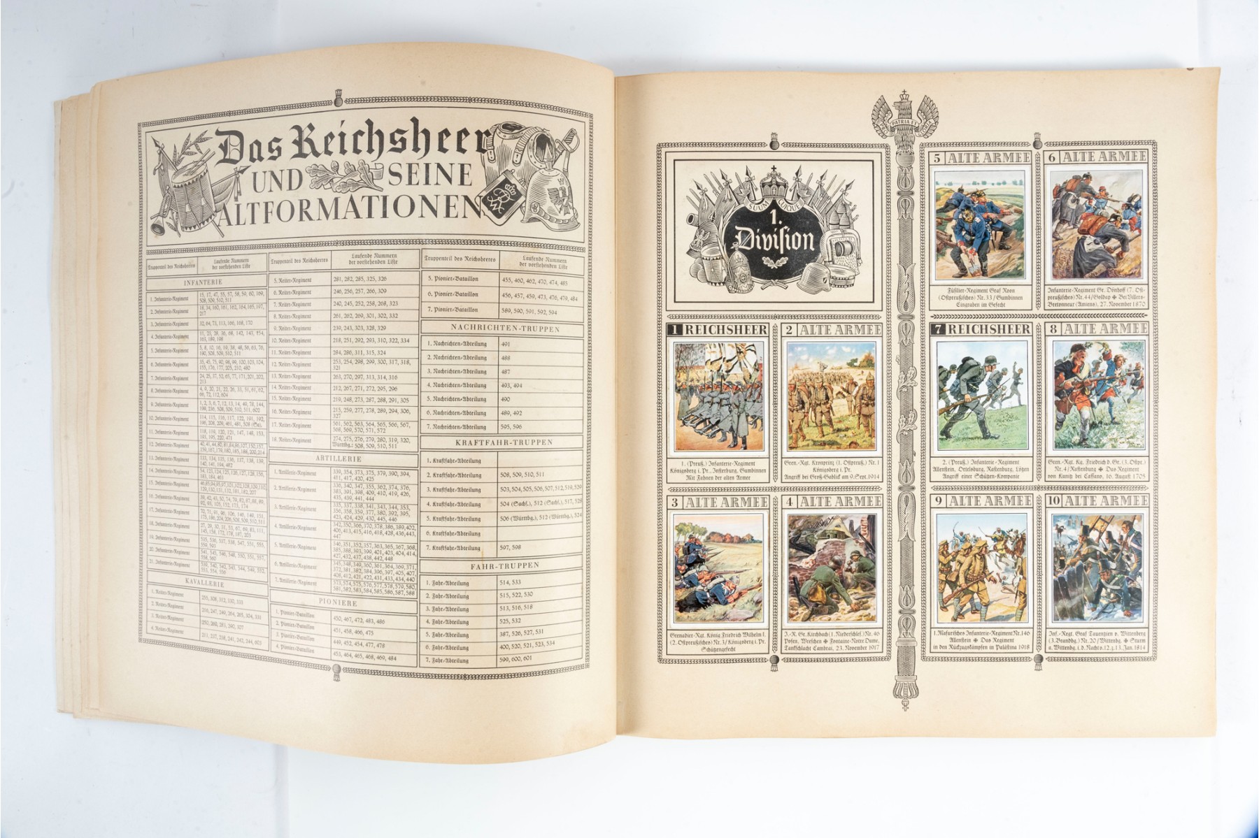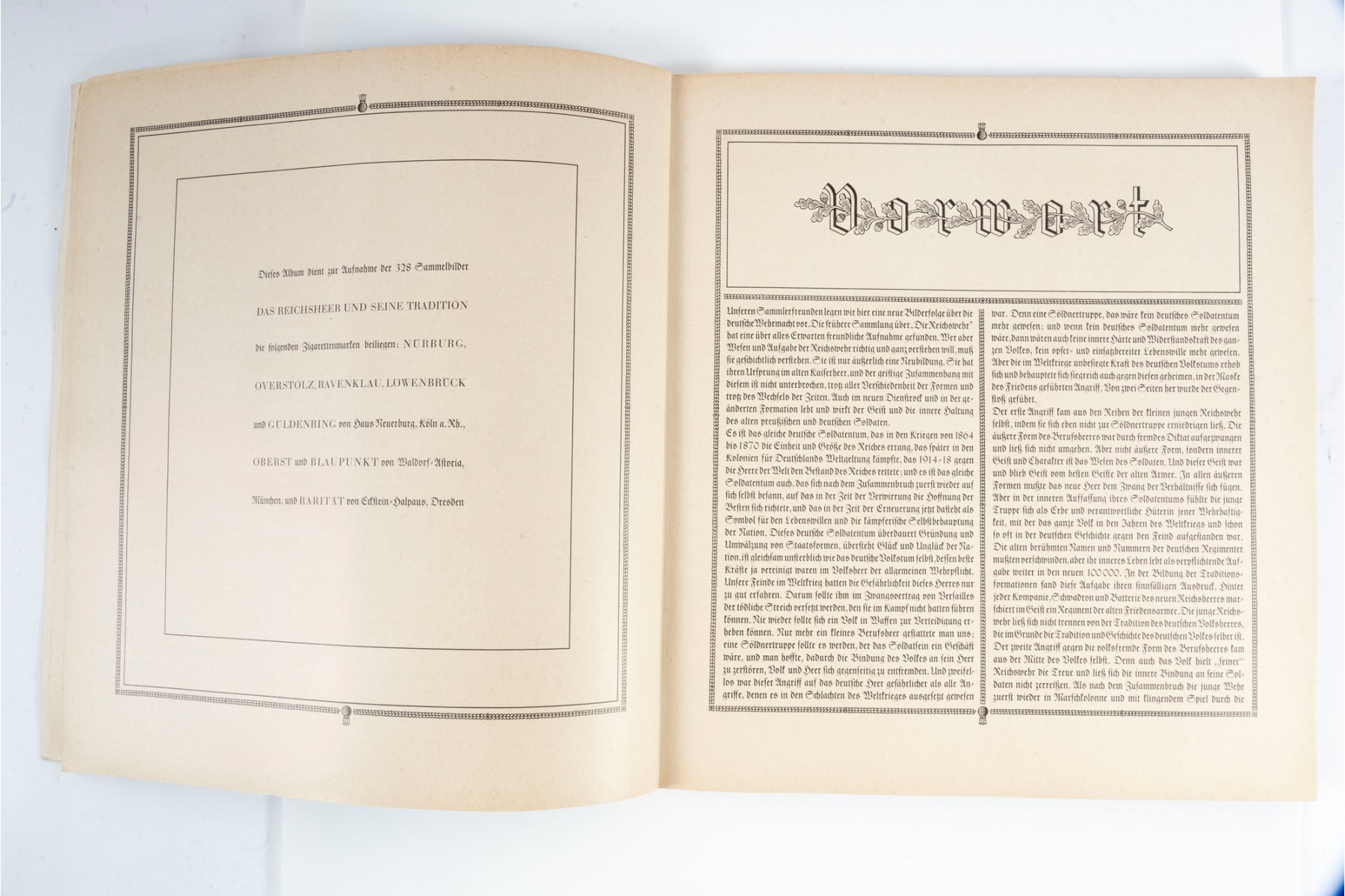 "Das Reichsheer Und Seine Tradition" by Herausgegeben von Haus Neuerburg Waldorf-Astoria and Eckstein-Halpaus. A collector's book exploring German history with a multitude of card plates in vibrant color.