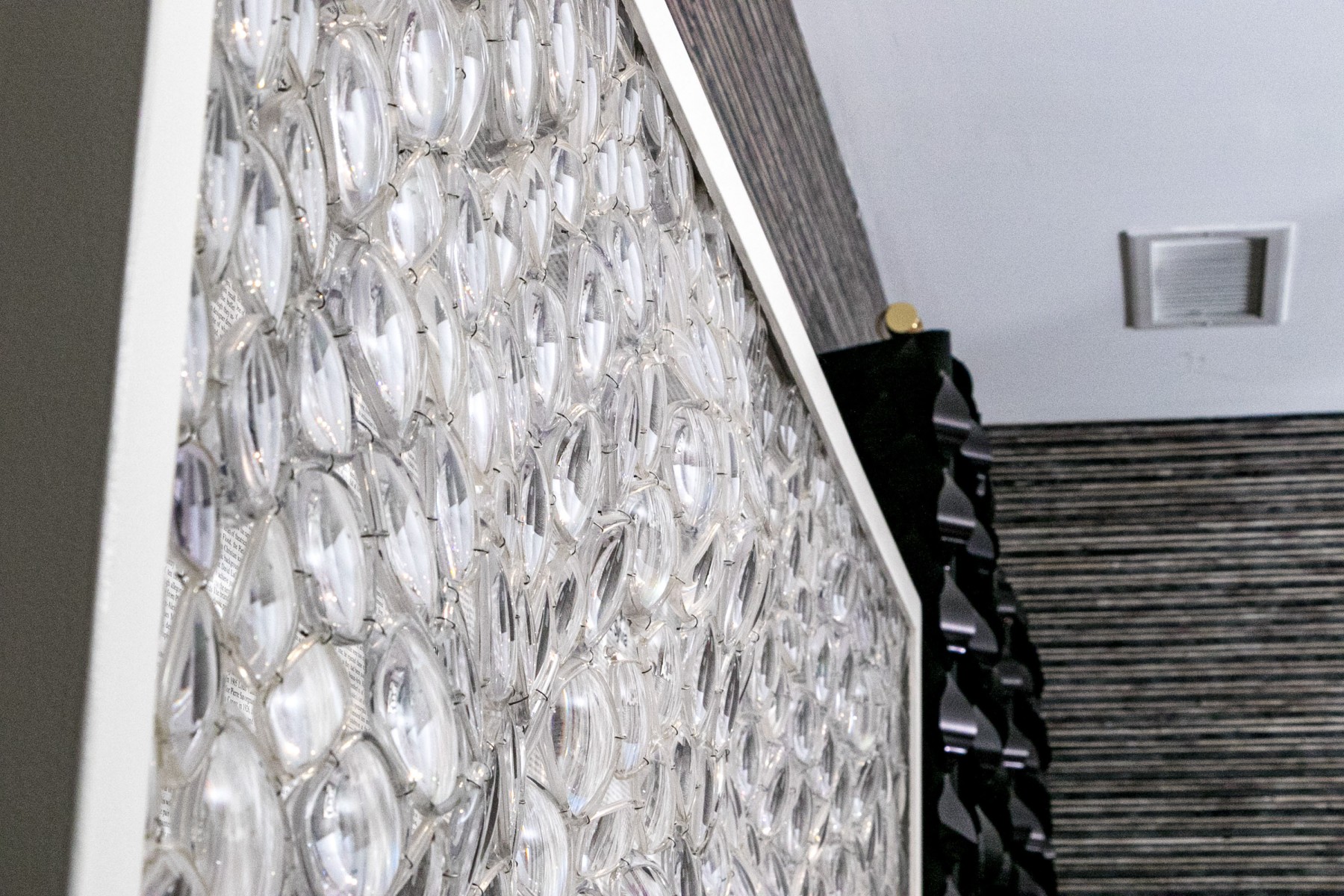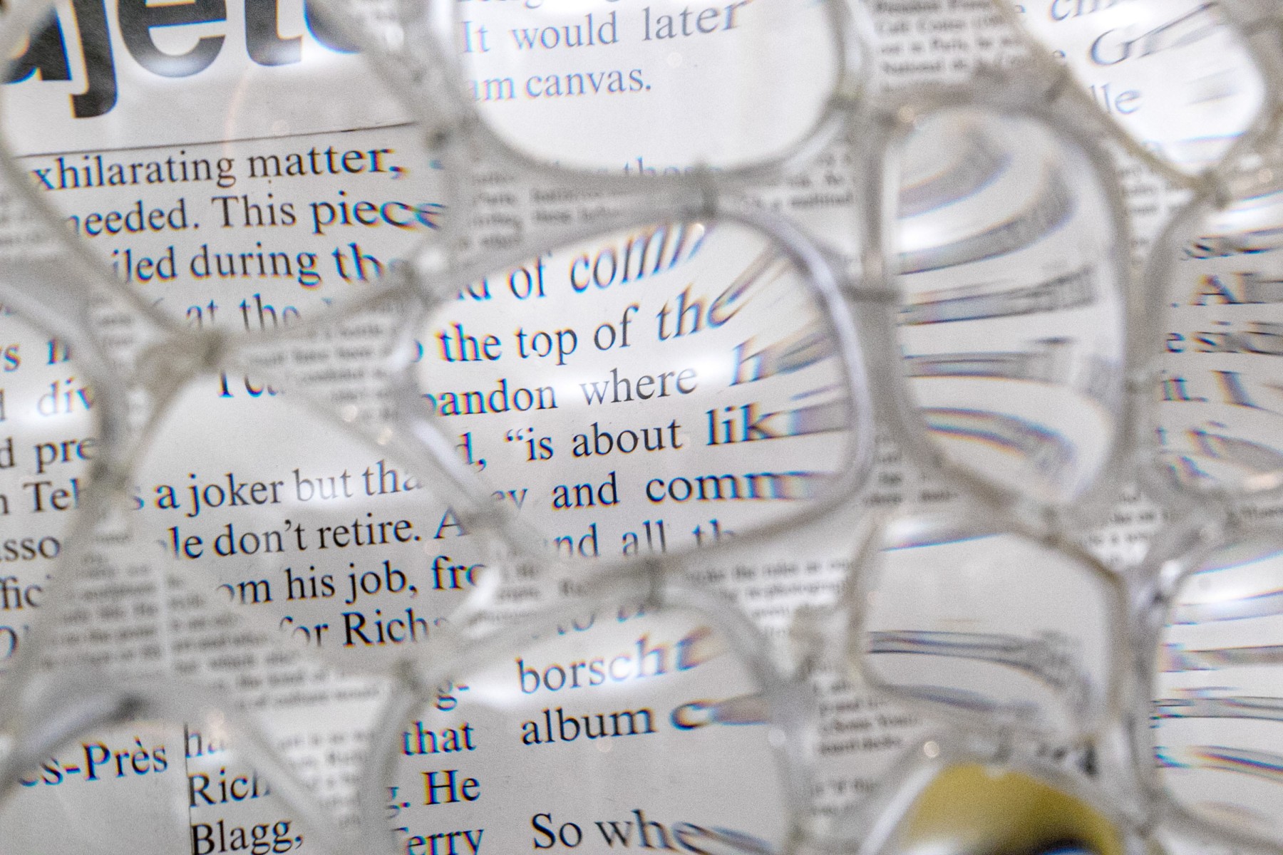 Please note that the way these pieces of art appear in person and in photography are different. In person they appear blurry and abstract due to the eyeglasses lenses in front of the images. Smart phones and cameras see-through the glasses and capture the image behind it.