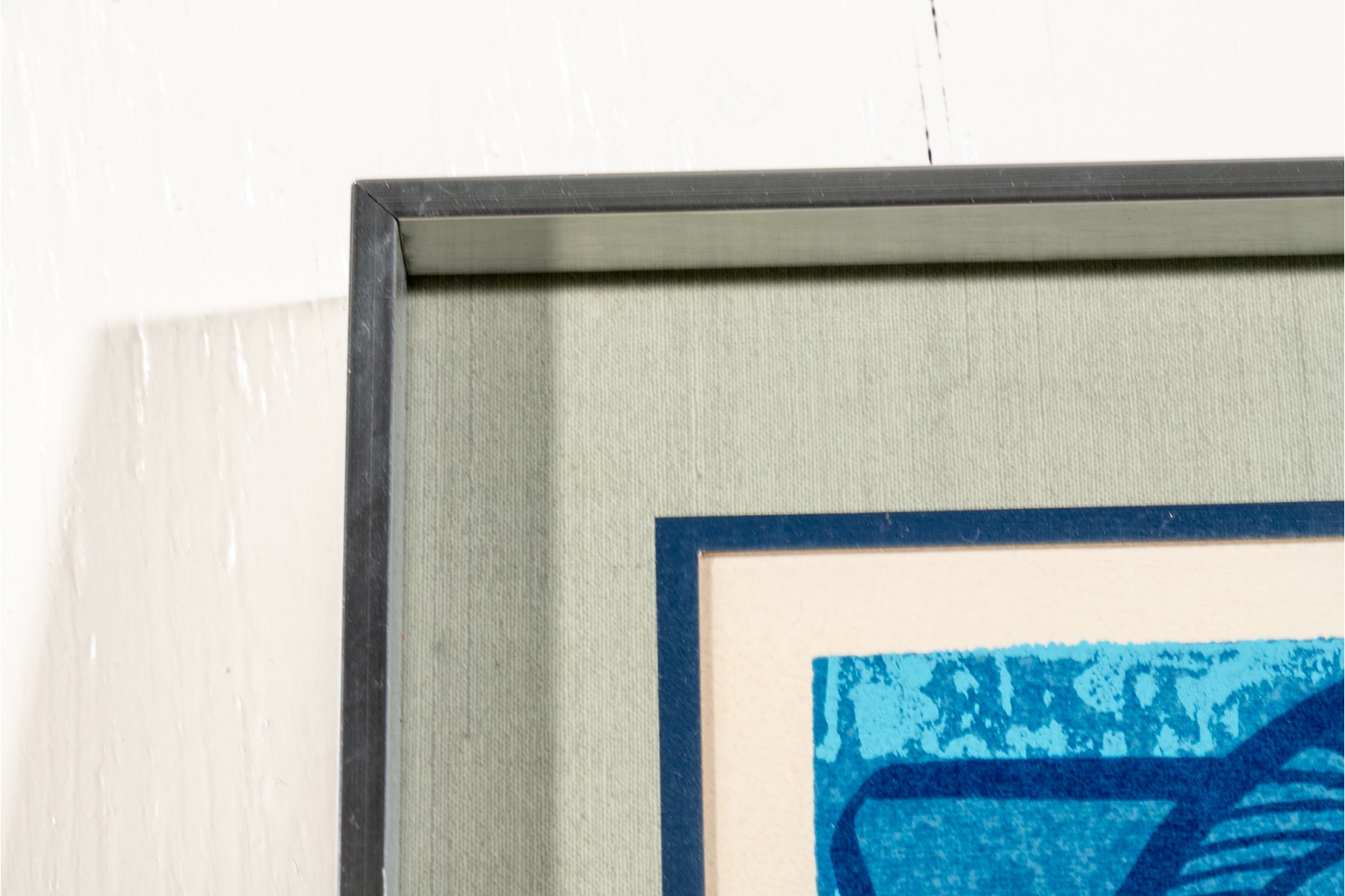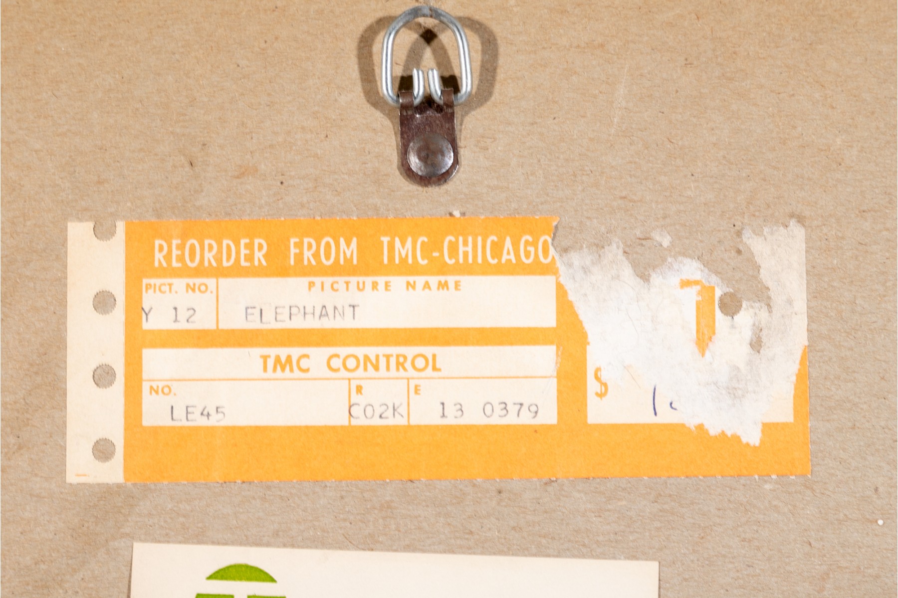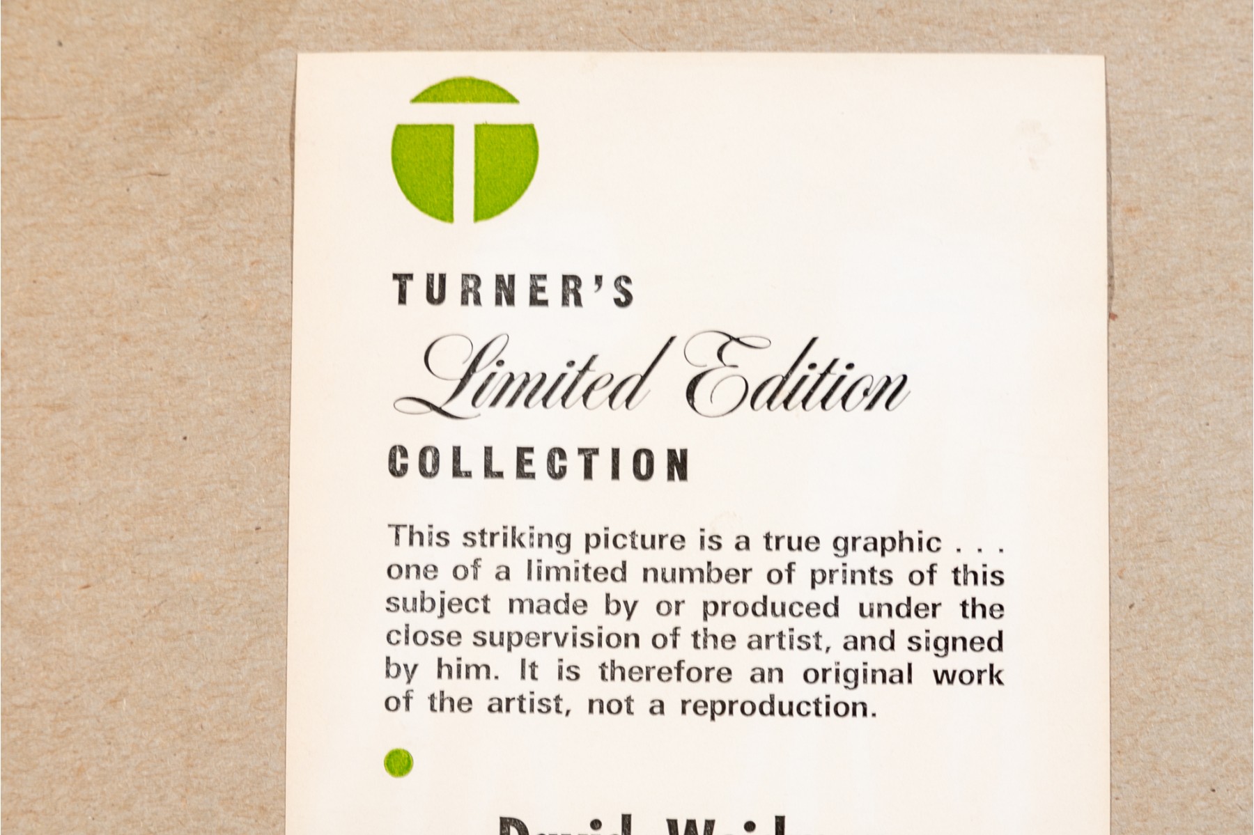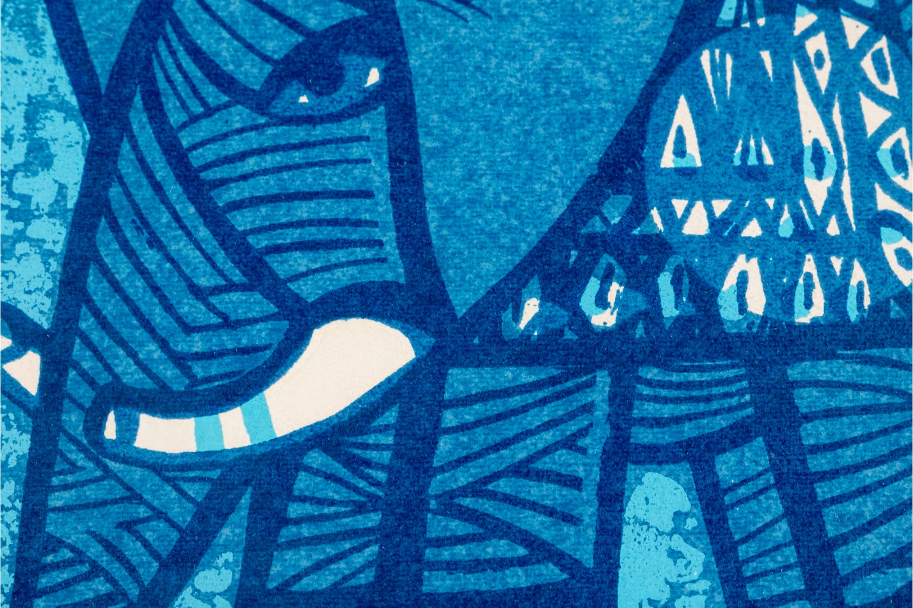 A print depicting a blue tonal elephant set against a blue background. Turner Limited edition Collection label on verso.