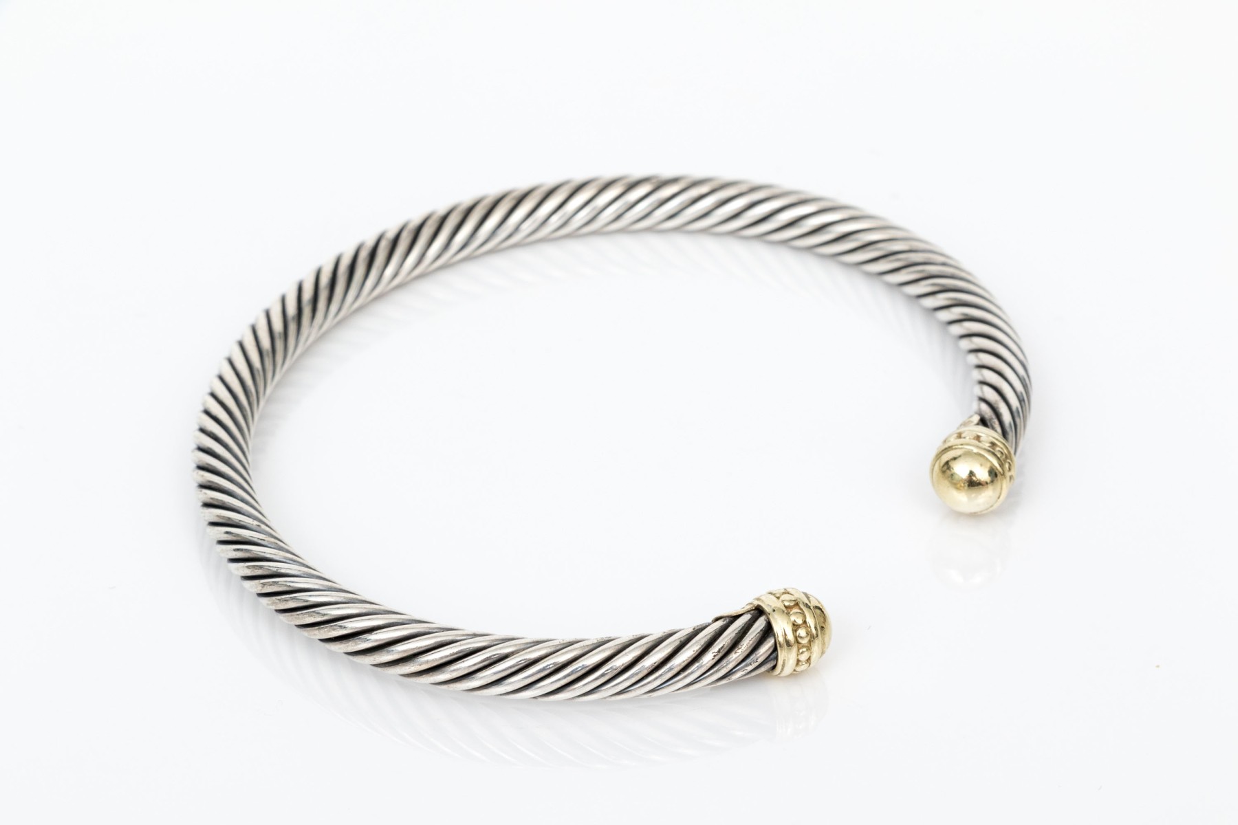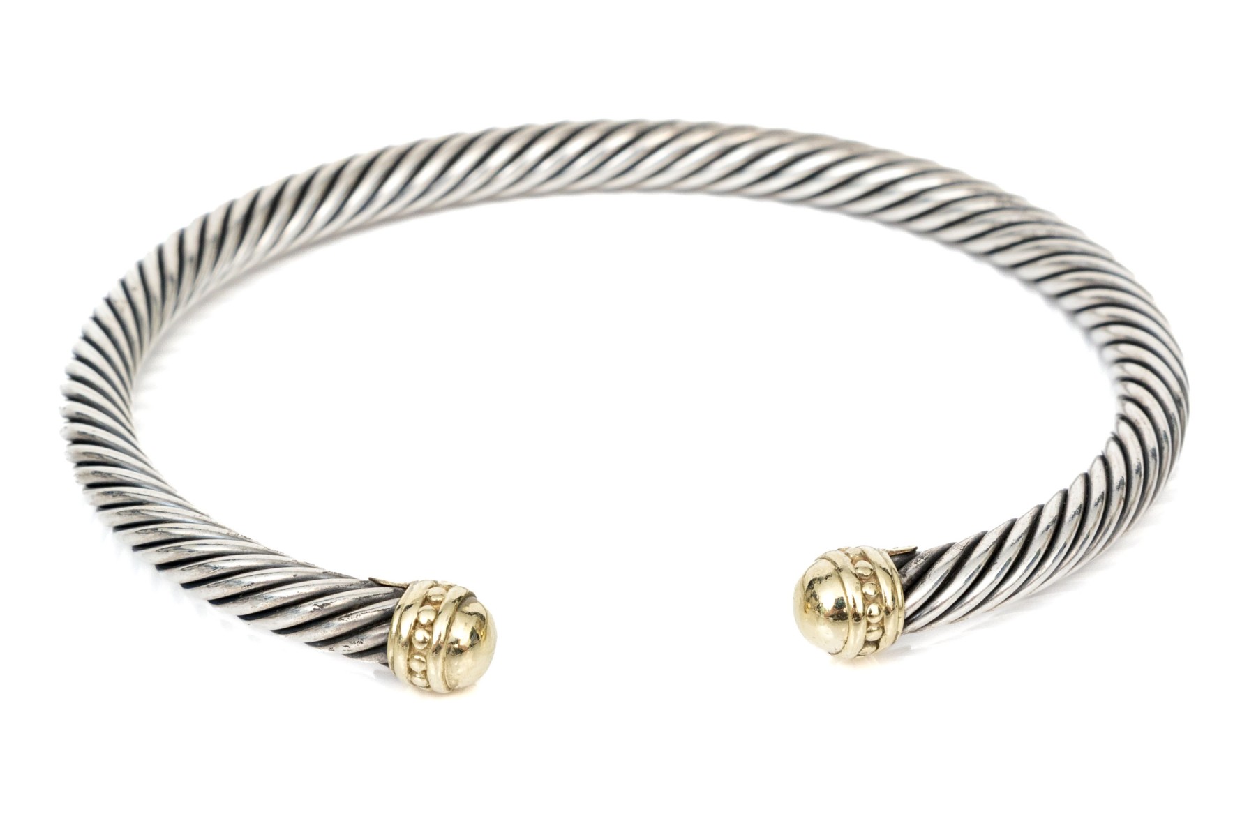 David Yurman Sterling Silver And 14k Simple Cable Cuff Bracelet #459534. Black Rock Galleries provides high end estate liquidation services through online estate auctions and a 50,000 sq ft designer showroom. estate liquidator, estate sale, online auction, antiques, fine art, liquidation, clean outs, auction, consignment, interior design, fine jewelry, collectibles, appraisals, estate appraisals, estate services, decor, furniture, furniture consignment, antique center, consignment shop. We offer appraisal services and specialize in fine art, jewelry, antiques and decorative arts. Sell with us. Black Rock Galleries is the tri-state's largest estate liquidator serving New England and the greater New York City area. We are the trusted source for expert appraisals, auction services, estate sales, and consignments. Black Rock Galleries is the east coast's largest and most trusted estate liquidator, with locations in Connecticut, greater Boston, MA and Raleigh, NC, Fairfield, Southport, Apex, TX. We are the best source for expert appraisals, auction services, estate sales and consignments. We have served thousands of families and estates with compassion, professionalism and expertise. BRG works with attorneys, executors, realtors and families to bring the greatest return on personal and estate property in the current market. Our unique combination of services make us the easy choice to get the job done in a timely and stress-free manner. We are with you from the initial consultation to the final clean out. Our house-built online auction software platform offers clients a dynamic approach to liquidating their personal property. This venue is most successful in bringing the best return with the least amount of disruption for our clients. See our services page for a complete description of this offering. David Yurman Sterling Silver And 14k Simple Cable Cuff Bracelet #459534