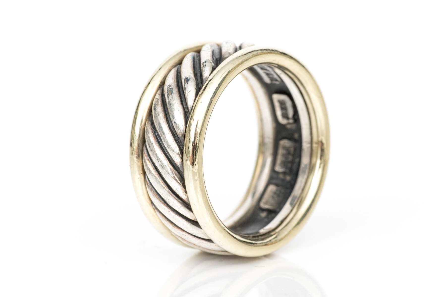 David Yurman sterling silver and 14k wide cable band ring, size 5.5+