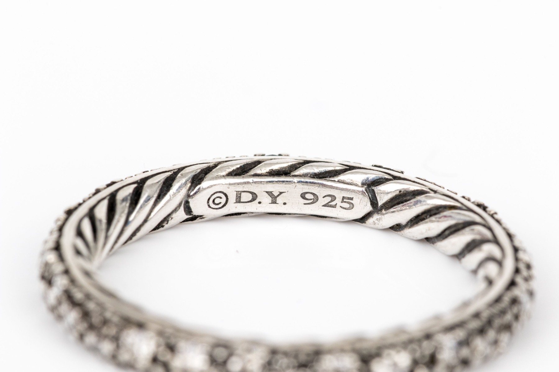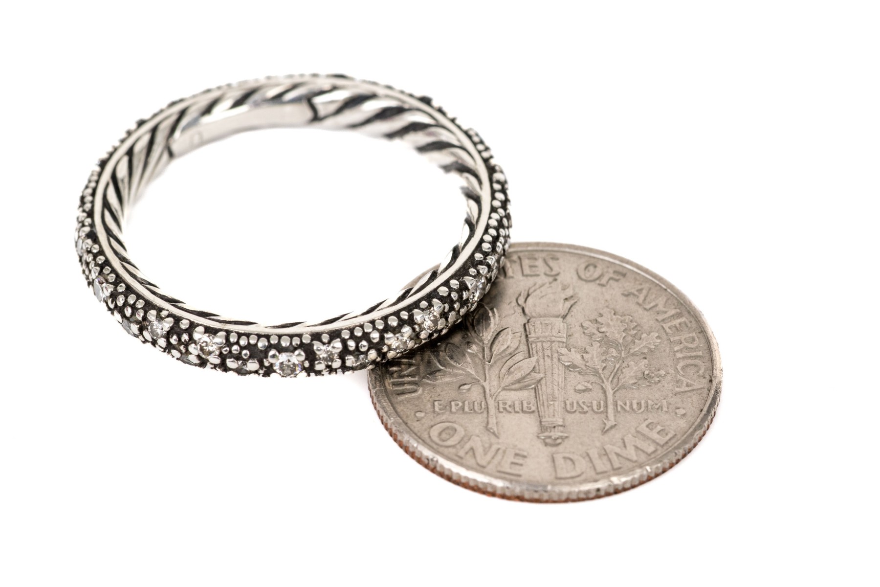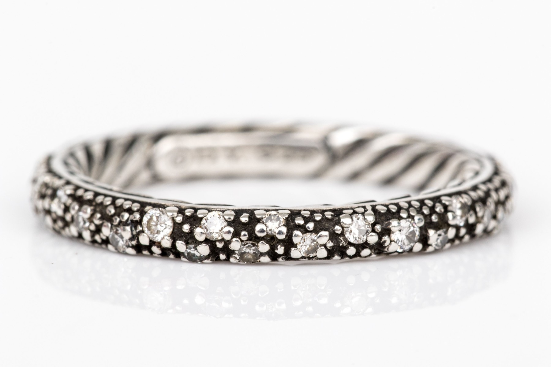David Yurman sterling silver and diamond "Midnight Melange" eternity ring, size 7; see sizing note, app. 0.28 TCW