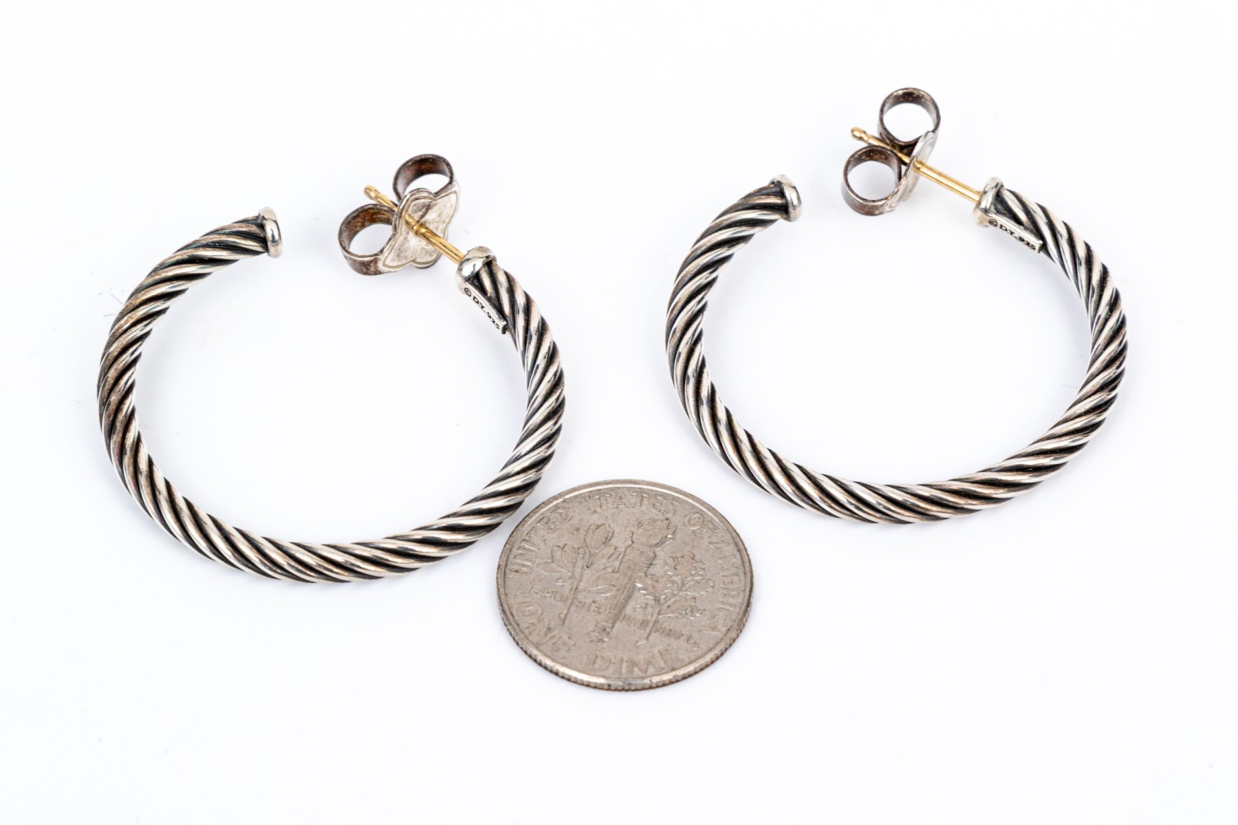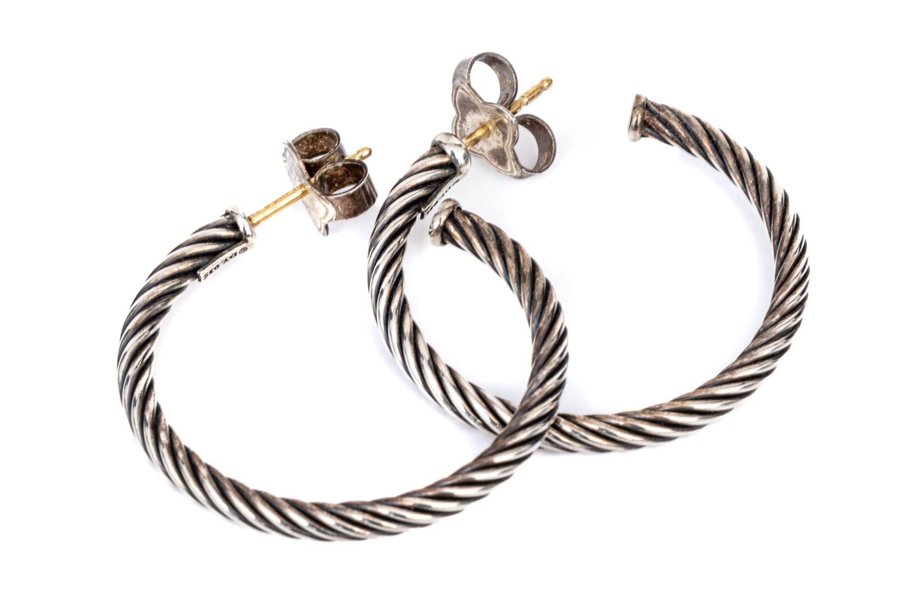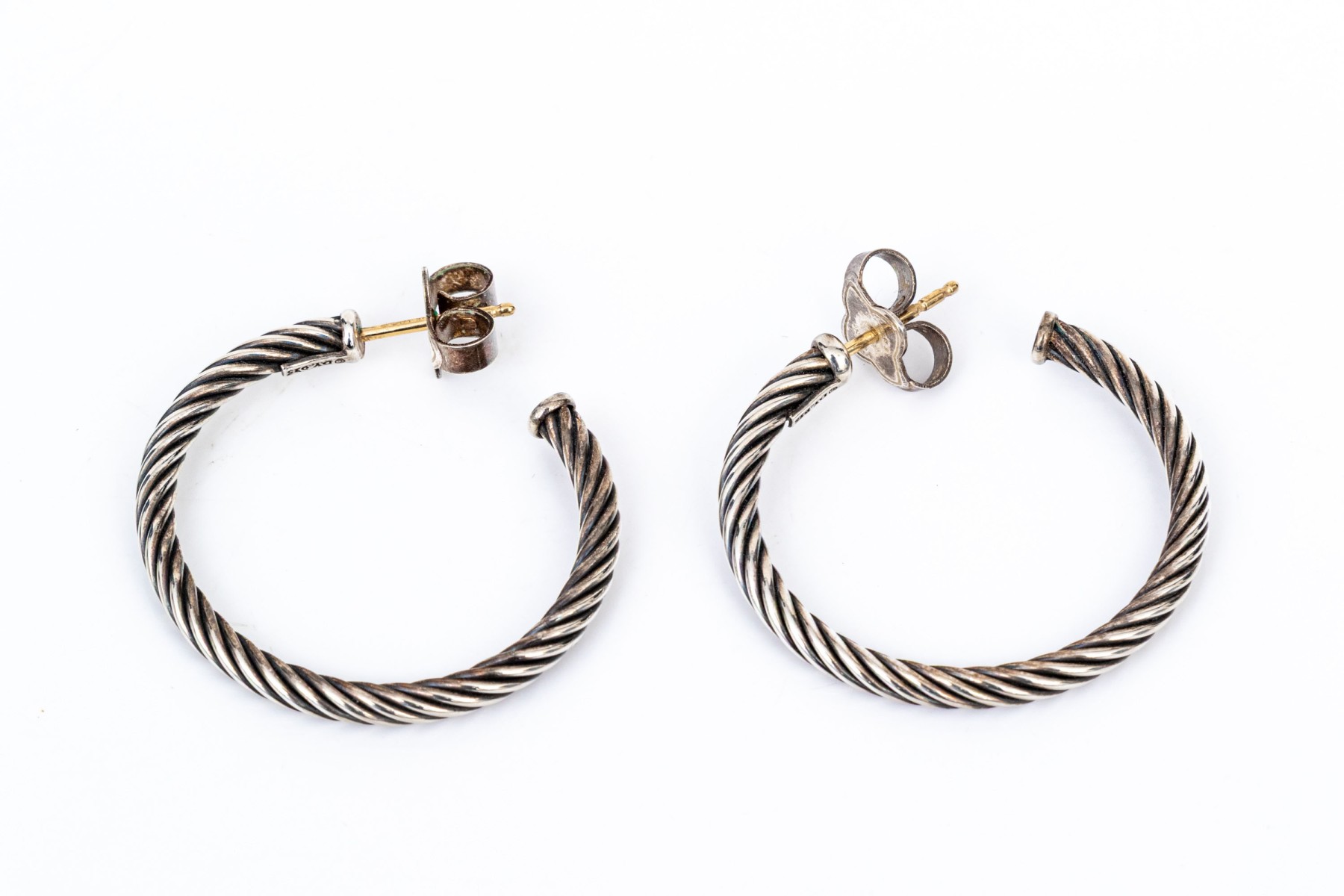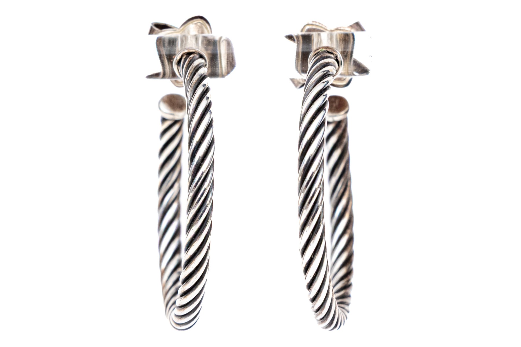 David Yurman sterling silver classic round cable hoop earrings, finished with posts and clutch style backs