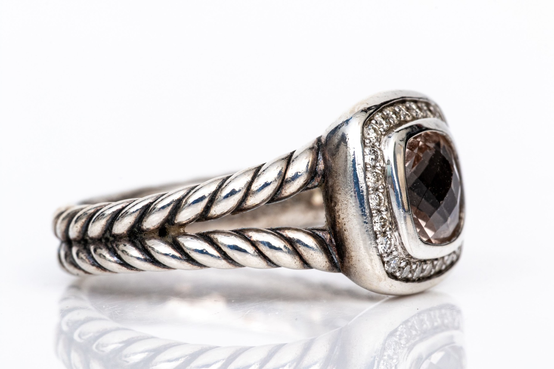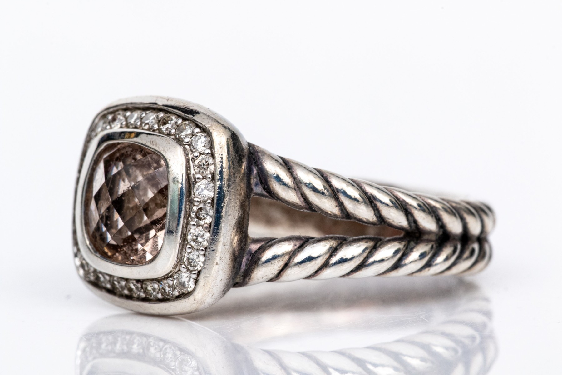 David Yurman Sterling Silver "Petite Albion" Pink Morganite And Diamond Ring, Size 6.5+ #460981. Black Rock Galleries provides high end estate liquidation services through online estate auctions and a 50,000 sq ft designer showroom. estate liquidator, estate sale, online auction, antiques, fine art, liquidation, clean outs, auction, consignment, interior design, fine jewelry, collectibles, appraisals, estate appraisals, estate services, decor, furniture, furniture consignment, antique center, consignment shop. We offer appraisal services and specialize in fine art, jewelry, antiques and decorative arts. Sell with us. Black Rock Galleries is the tri-state's largest estate liquidator serving New England and the greater New York City area. We are the trusted source for expert appraisals, auction services, estate sales, and consignments. Black Rock Galleries is the east coast's largest and most trusted estate liquidator, with locations in Connecticut, greater Boston, MA and Raleigh, NC, Fairfield, Southport, Apex, TX. We are the best source for expert appraisals, auction services, estate sales and consignments. We have served thousands of families and estates with compassion, professionalism and expertise. BRG works with attorneys, executors, realtors and families to bring the greatest return on personal and estate property in the current market. Our unique combination of services make us the easy choice to get the job done in a timely and stress-free manner. We are with you from the initial consultation to the final clean out. Our house-built online auction software platform offers clients a dynamic approach to liquidating their personal property. This venue is most successful in bringing the best return with the least amount of disruption for our clients. See our services page for a complete description of this offering. David Yurman Sterling Silver "Petite Albion" Pink Morganite And Diamond Ring, Size 6.5+ #460981