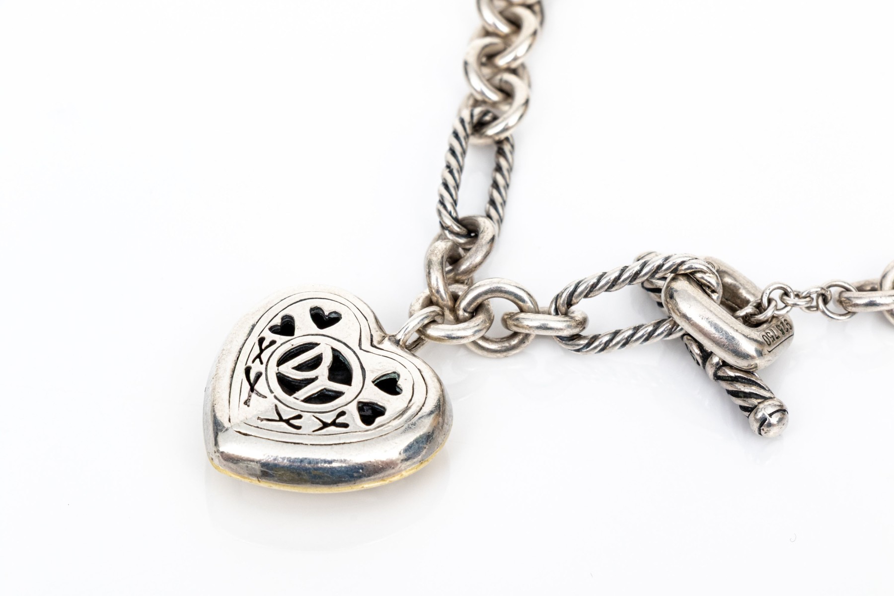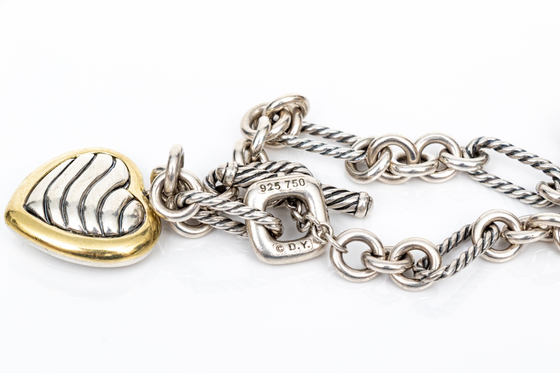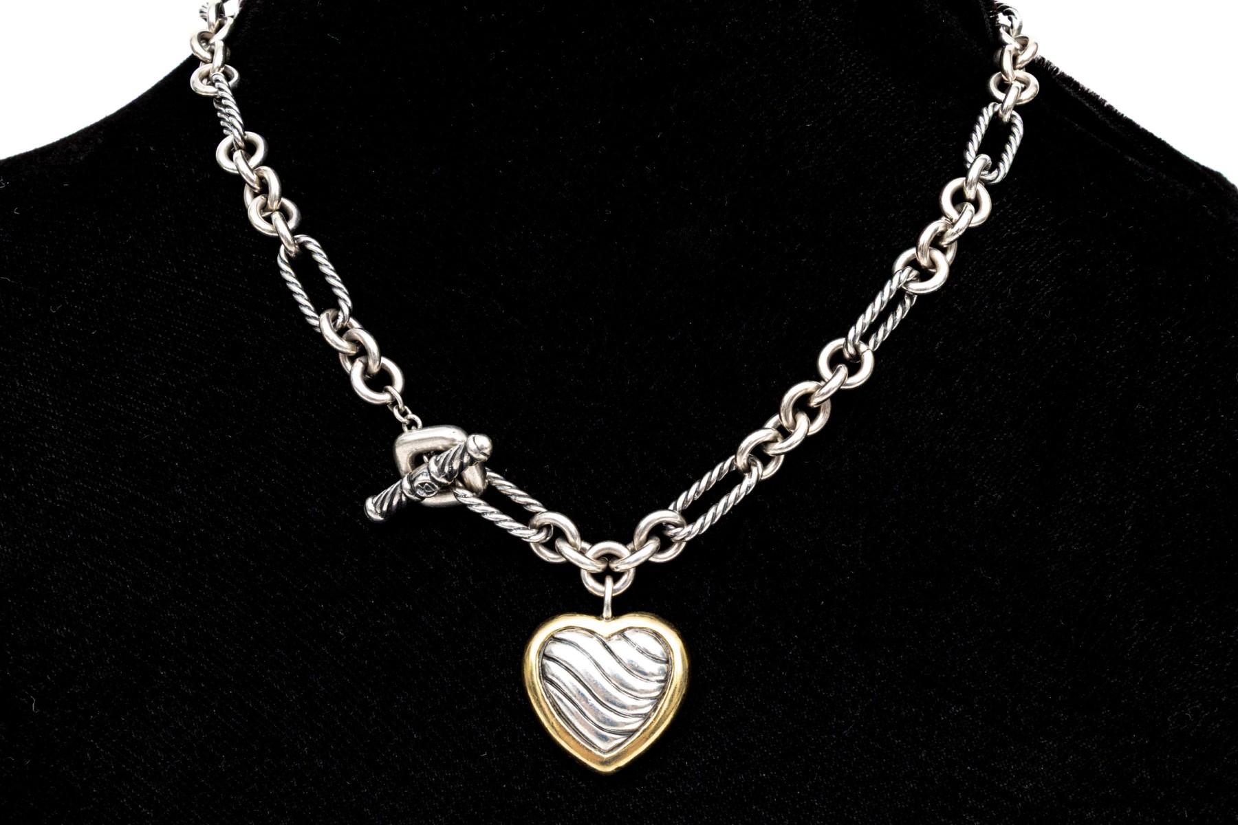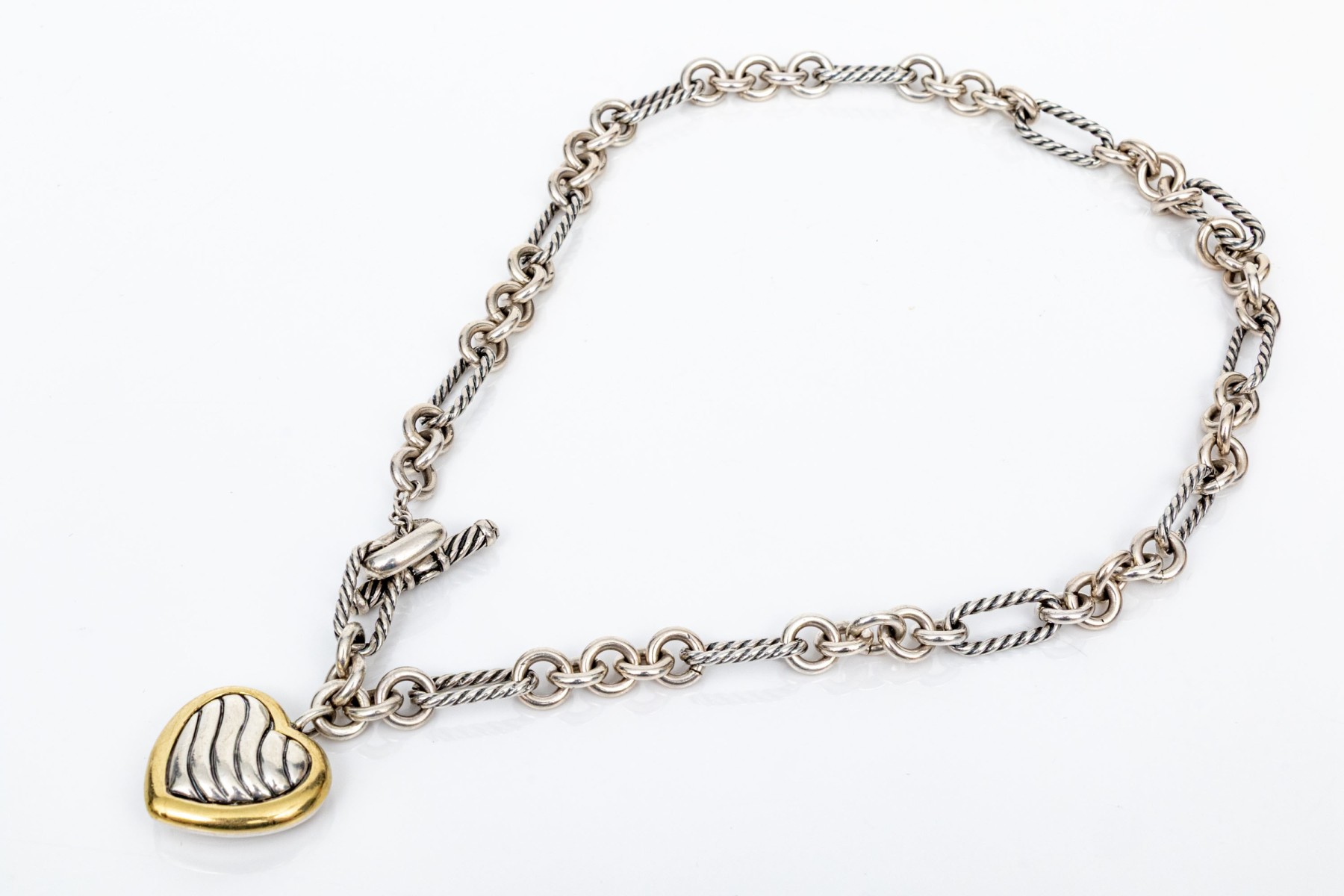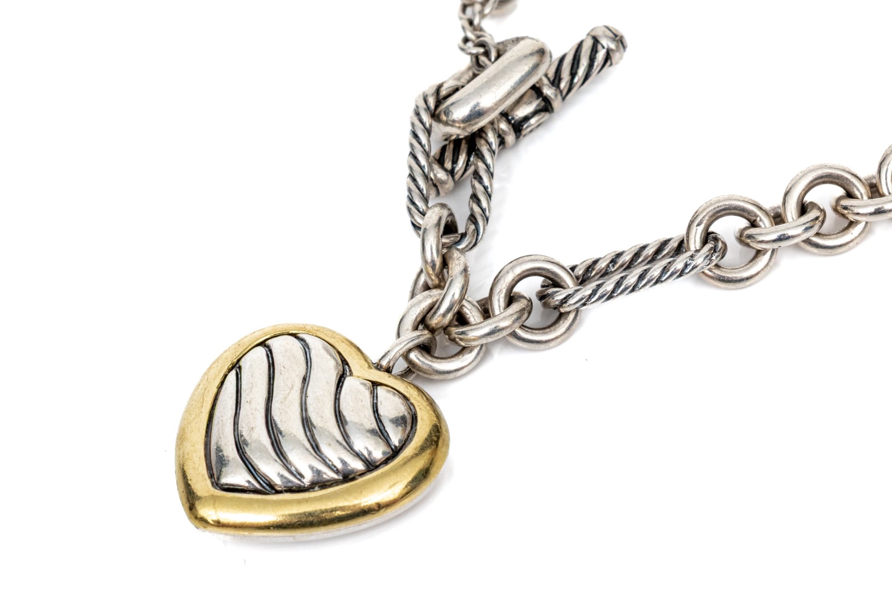 David Yurman striking sterling toggle link necklace with 18k and sterling ribbed heart