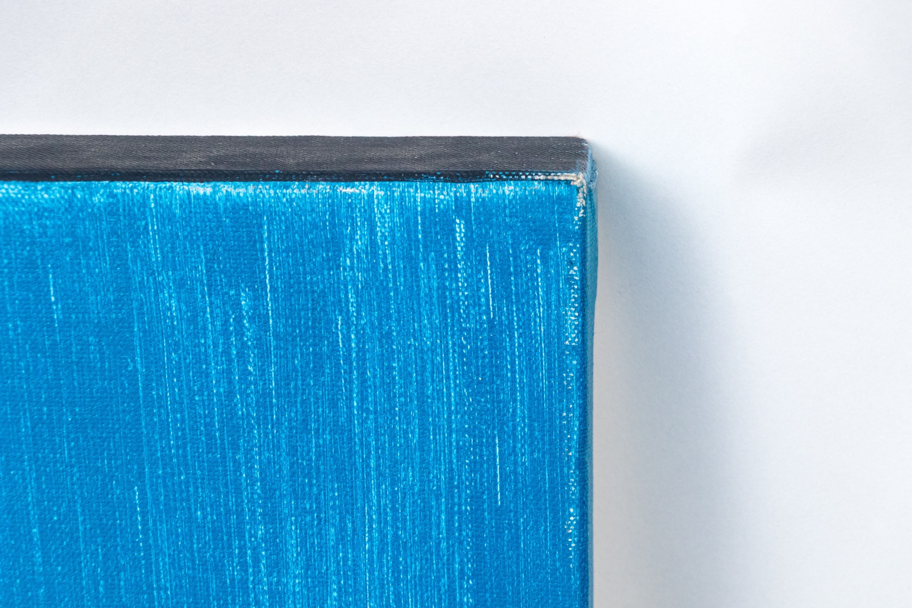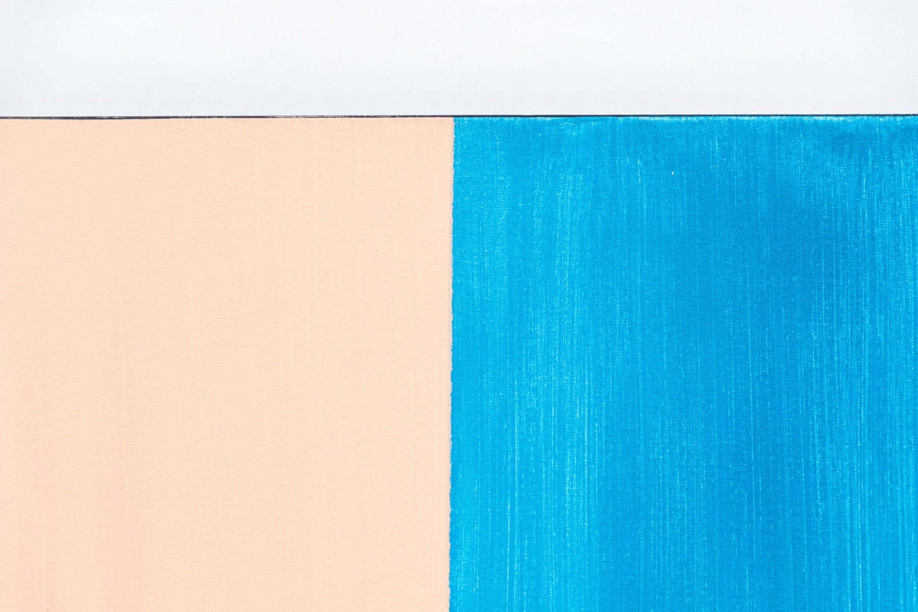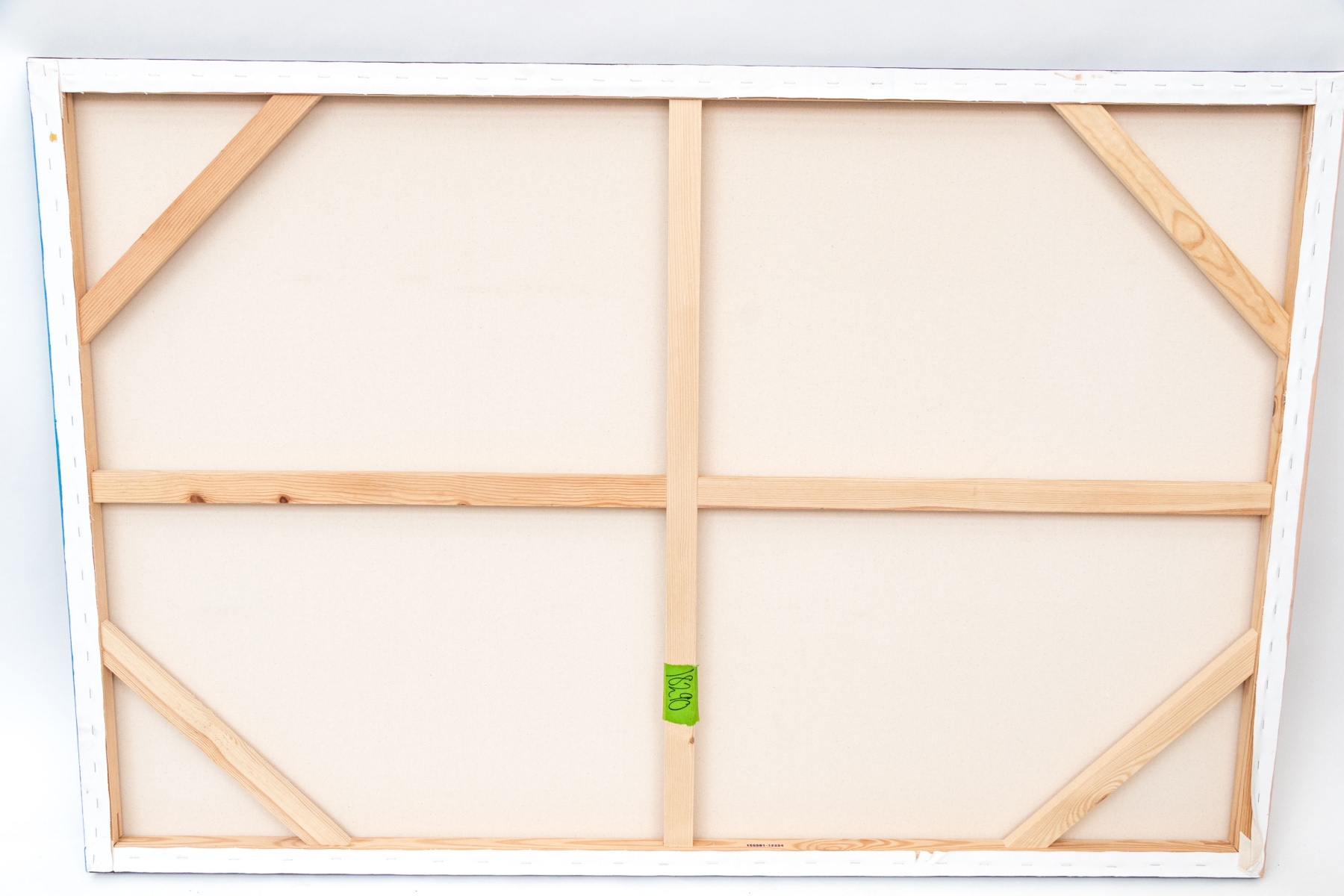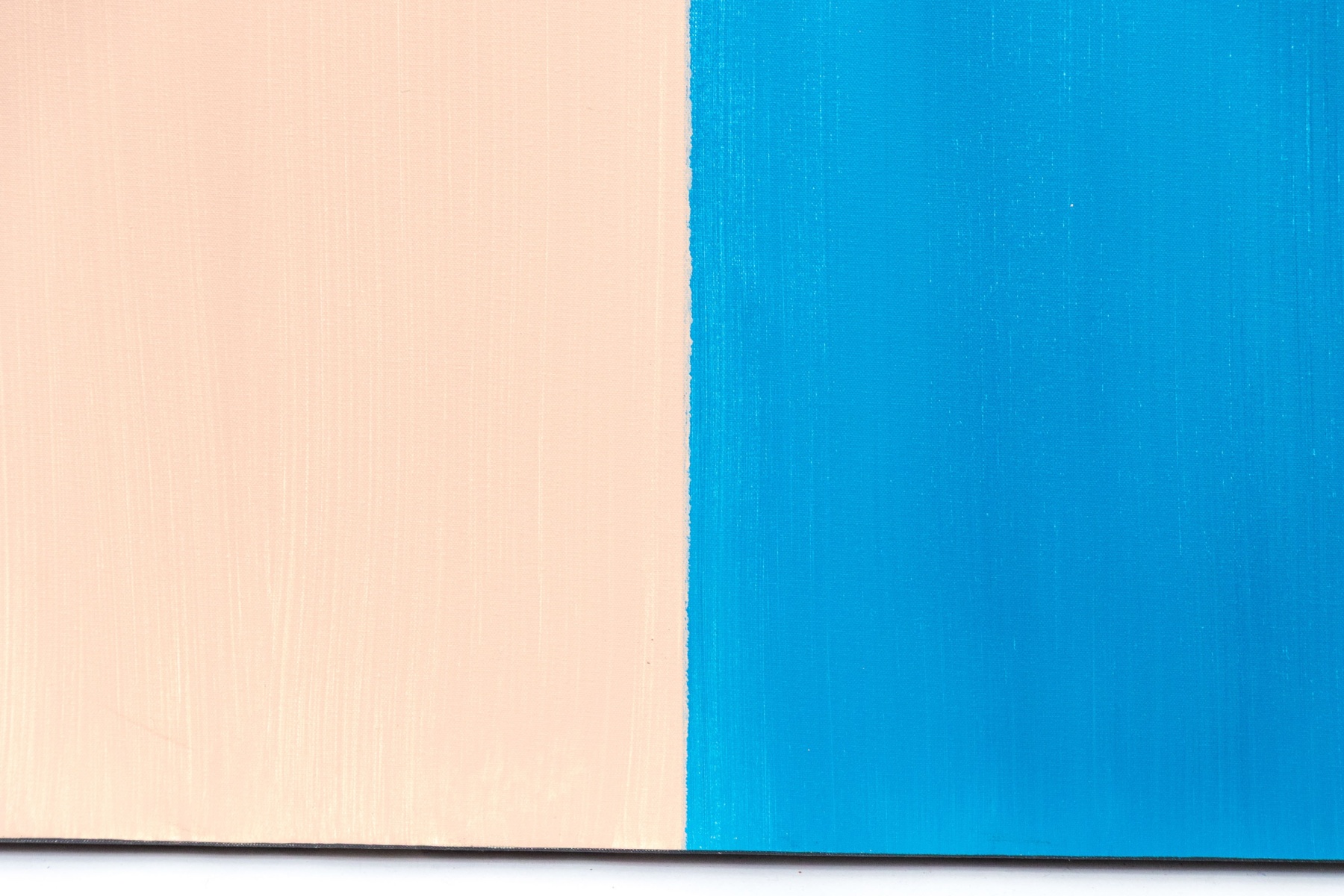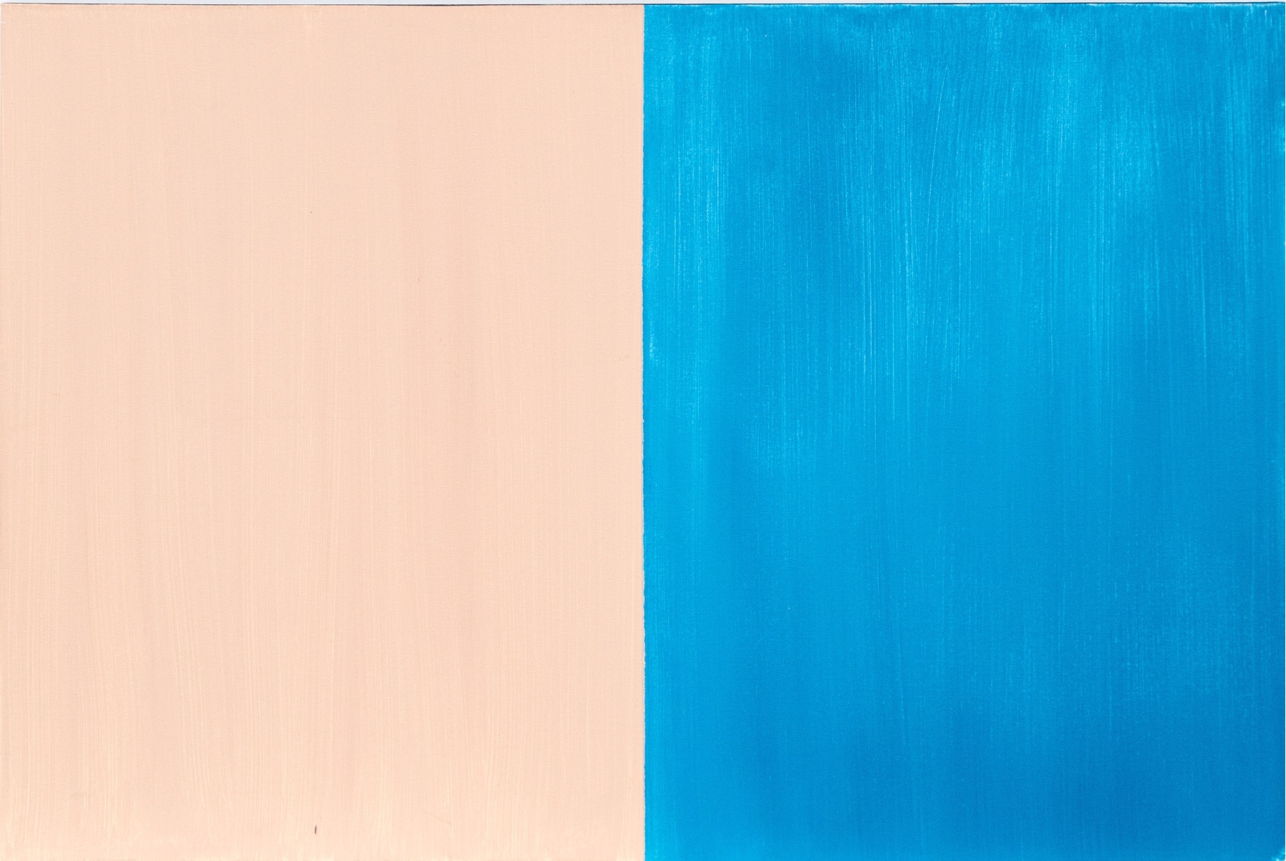 Two tone color field. Presented unframed, mounted on stretcher support.