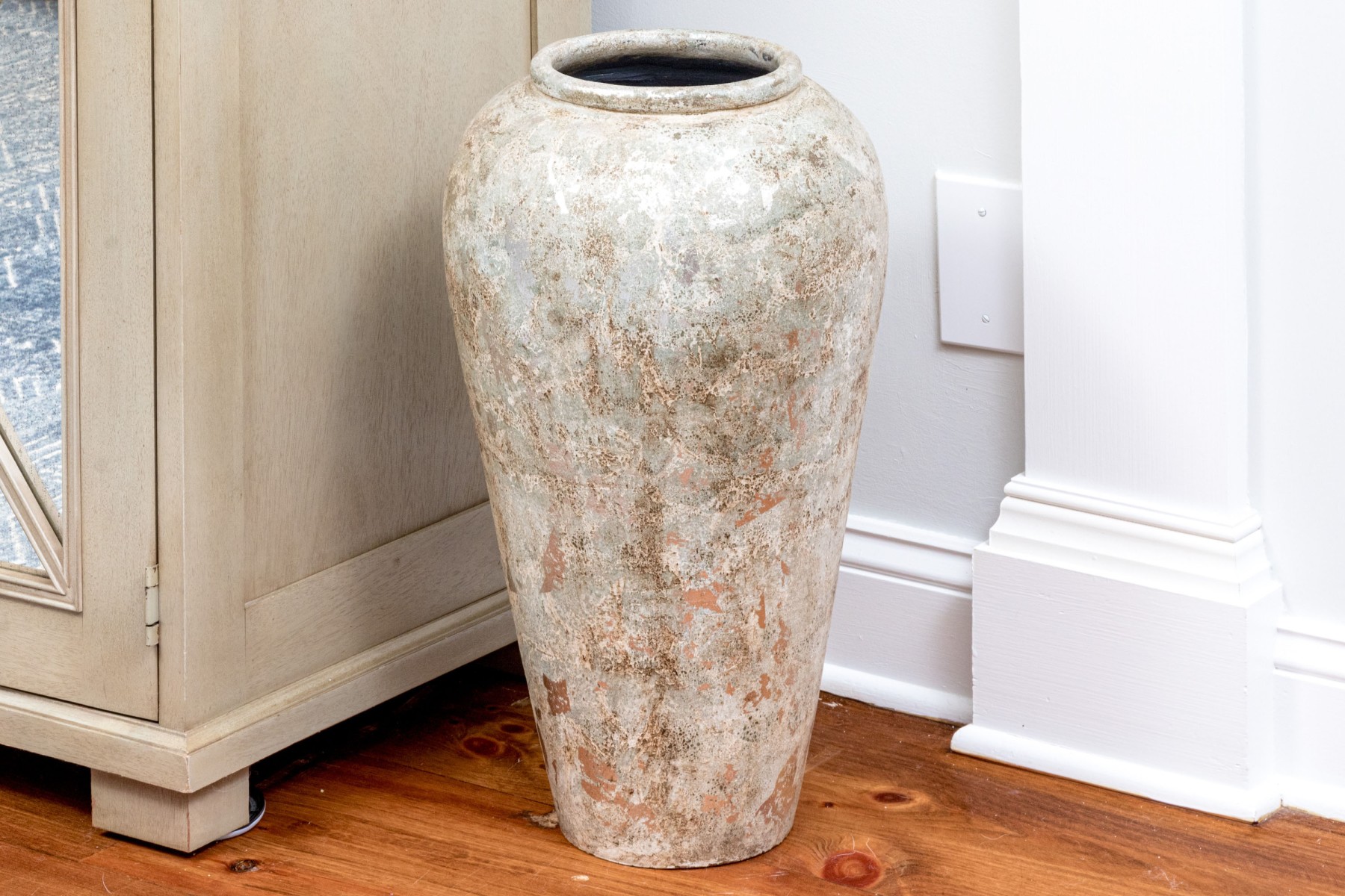 Decorative Antiqued Finished Mediterranean Style Ceramic Olive Storage Floor Vase #328584. Black Rock Galleries provides high end estate liquidation services through online estate auctions and a 50,000 sq ft designer showroom. estate liquidator, estate sale, online auction, antiques, fine art, liquidation, clean outs, auction, consignment, interior design, fine jewelry, collectibles, appraisals, estate appraisals, estate services, decor, furniture, furniture consignment, antique center, consignment shop. We offer appraisal services and specialize in fine art, jewelry, antiques and decorative arts. Sell with us. Black Rock Galleries is the tri-state's largest estate liquidator serving New England and the greater New York City area. We are the trusted source for expert appraisals, auction services, estate sales, and consignments. Black Rock Galleries is the east coast's largest and most trusted estate liquidator, with locations in Connecticut, greater Boston, MA and Raleigh, NC, Fairfield, Southport, Apex, TX. We are the best source for expert appraisals, auction services, estate sales and consignments. We have served thousands of families and estates with compassion, professionalism and expertise. BRG works with attorneys, executors, realtors and families to bring the greatest return on personal and estate property in the current market. Our unique combination of services make us the easy choice to get the job done in a timely and stress-free manner. We are with you from the initial consultation to the final clean out. Our house-built online auction software platform offers clients a dynamic approach to liquidating their personal property. This venue is most successful in bringing the best return with the least amount of disruption for our clients. See our services page for a complete description of this offering. Decorative Antiqued Finished Mediterranean Style Ceramic Olive Storage Floor Vase #328584