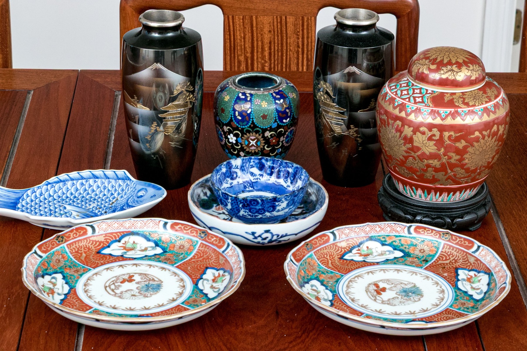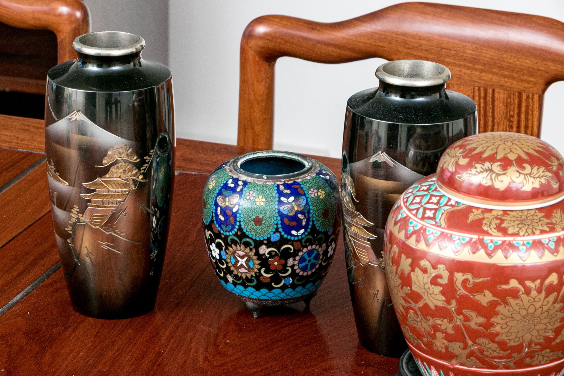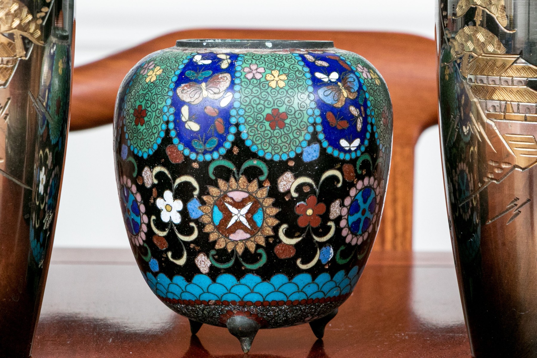 A great lot overall. Wear to the enameled decoration on the cloisonne jar.