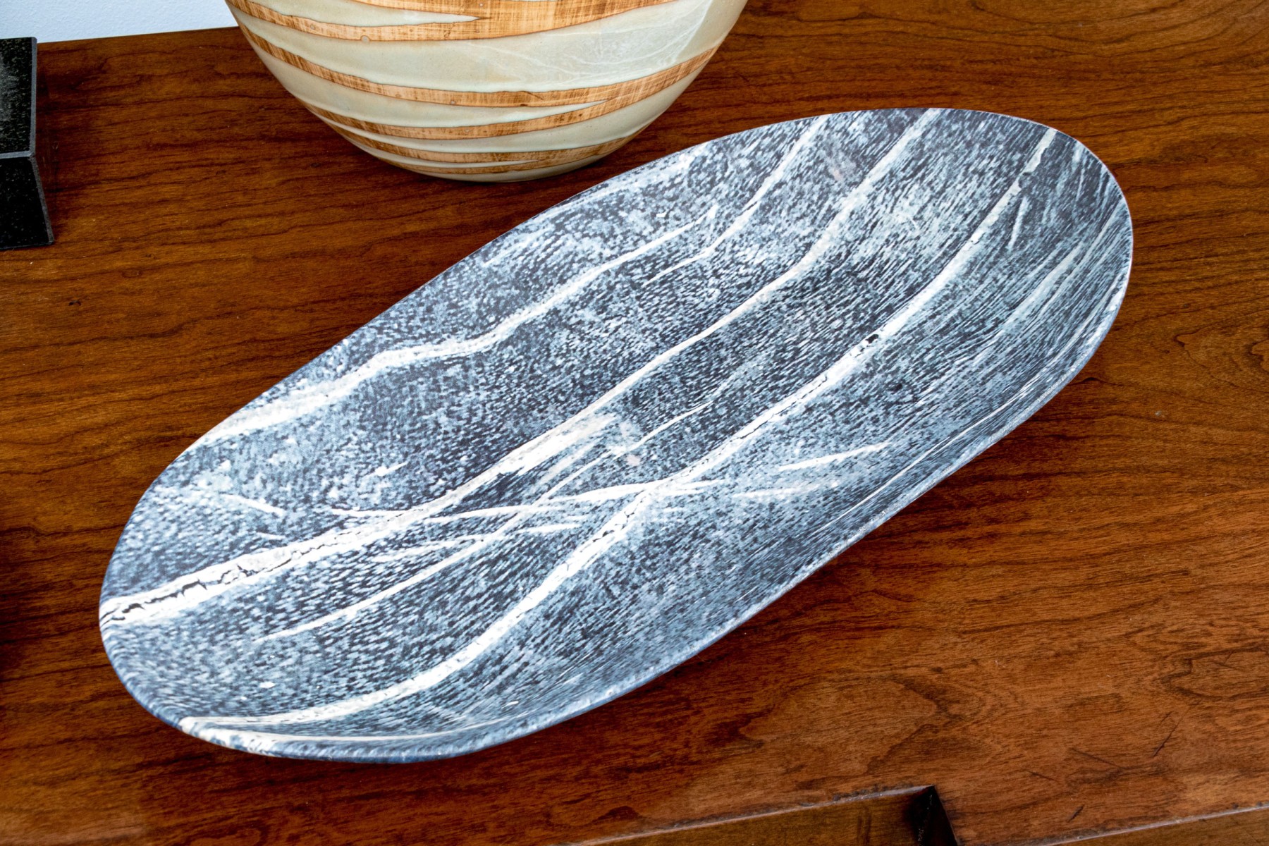 - Two oval Zodiac ceramic faux stone serving bowls