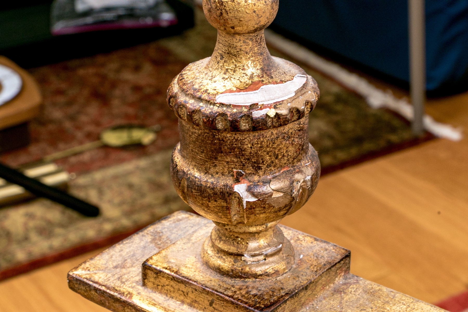 Chipped gesso and finish wear most notably to the finial but overall still presents very handsomely.