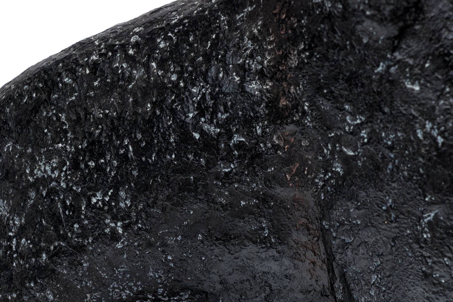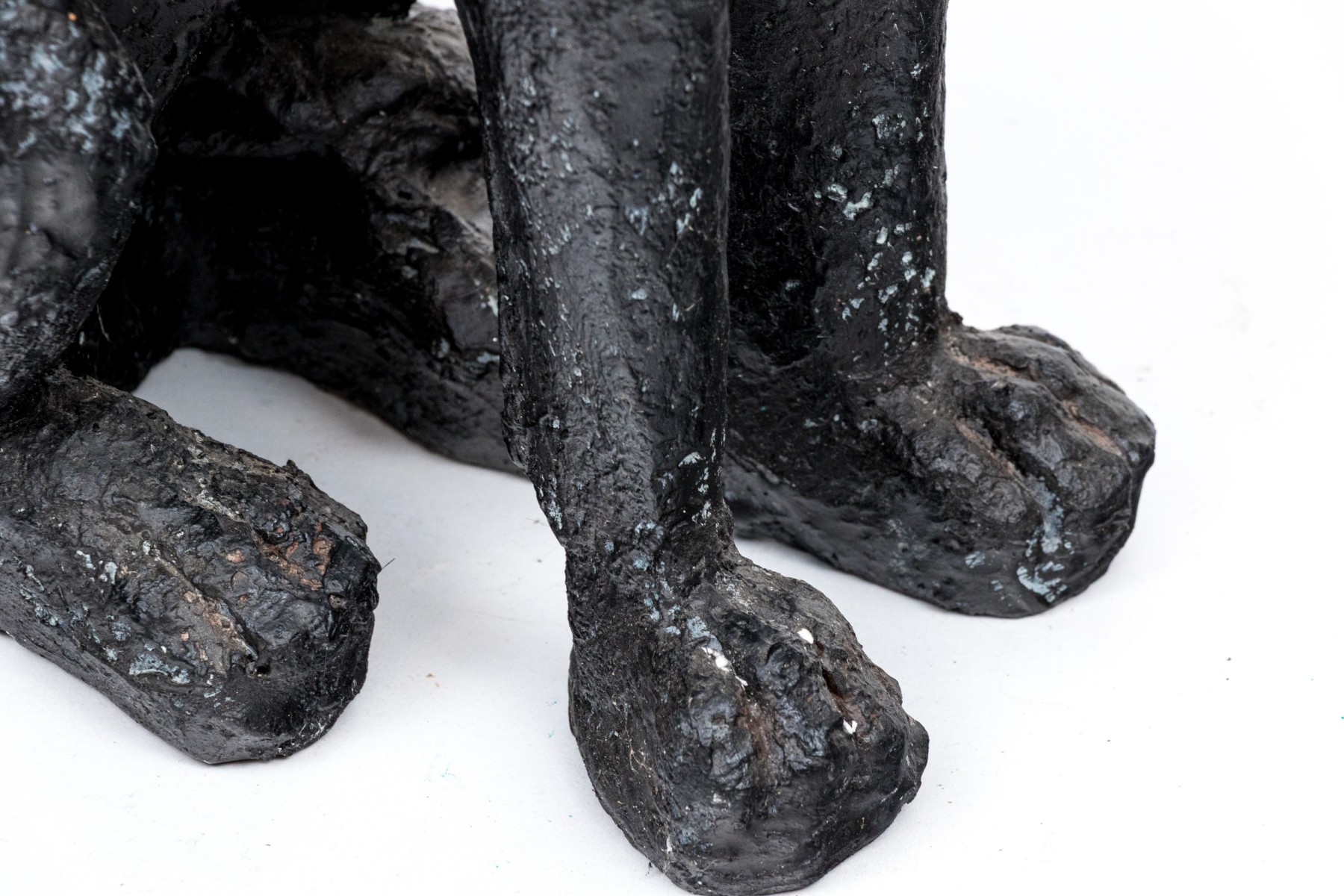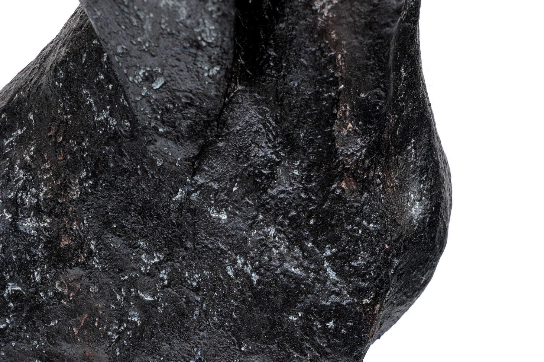 A charming decorative black resin figure of a seated dog with long floppy ears posed with its head lifted and nose pointed up attentively. Nicely detailed and textured throughout.