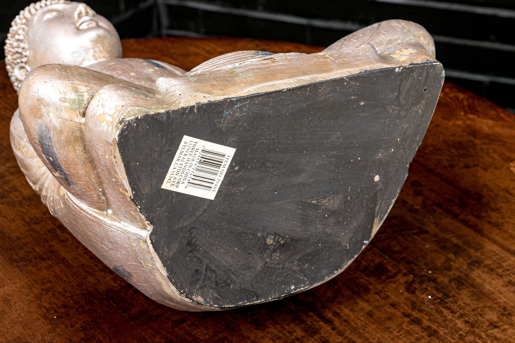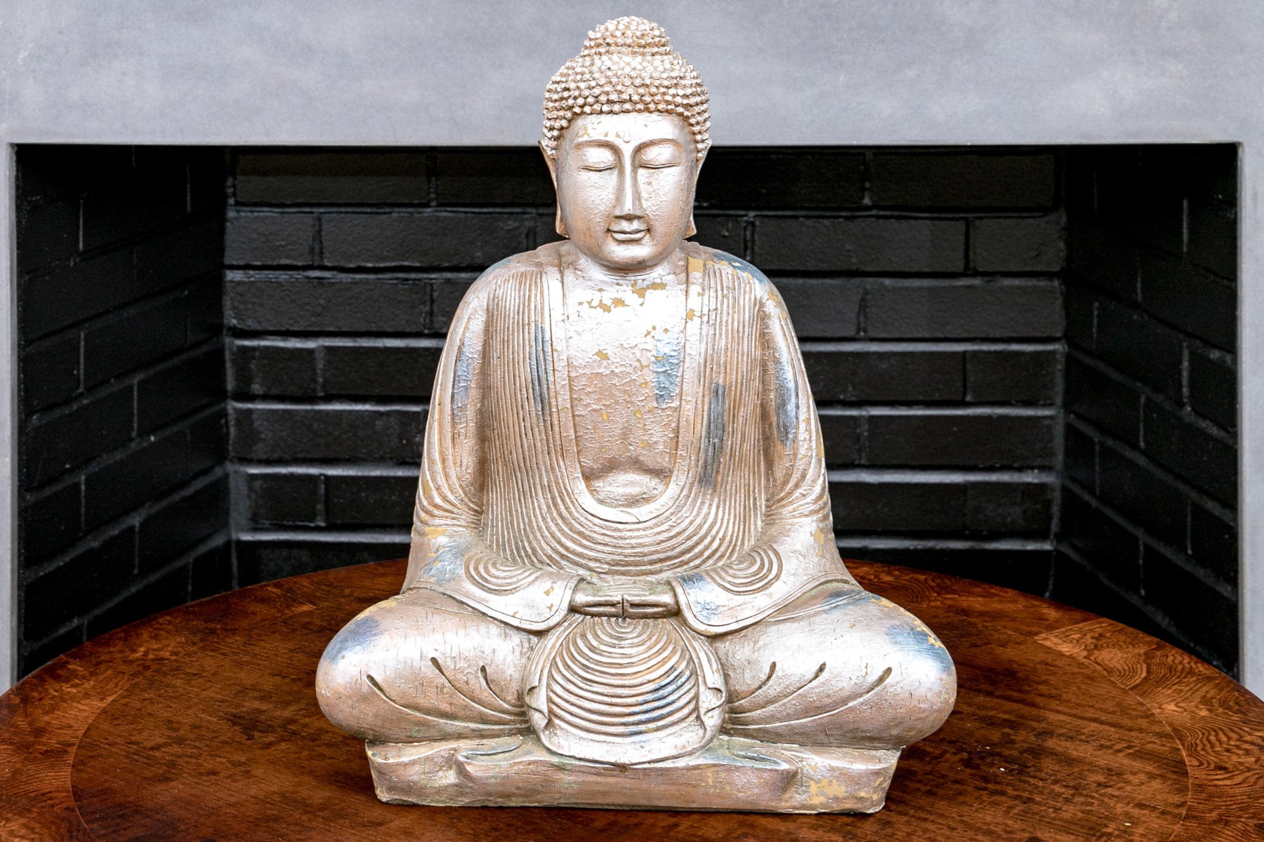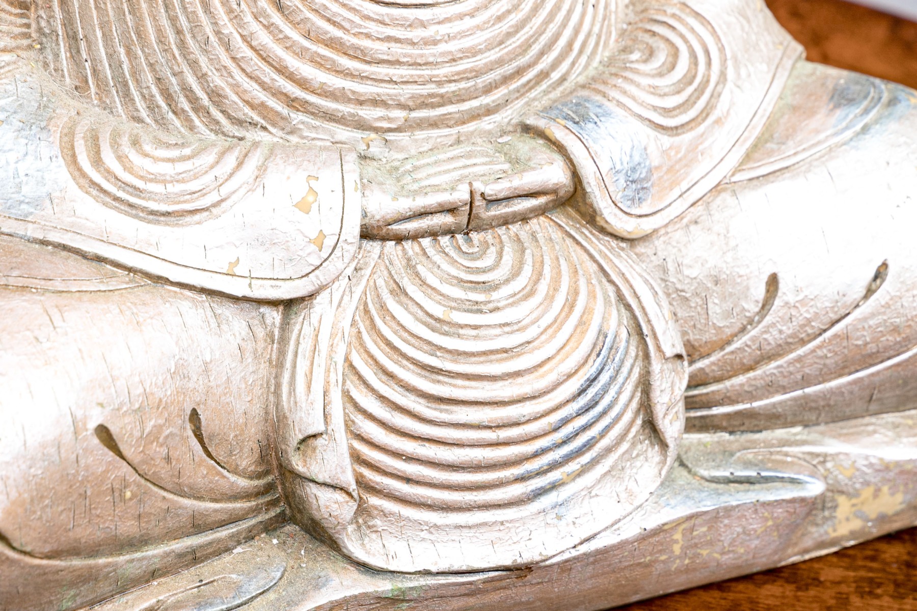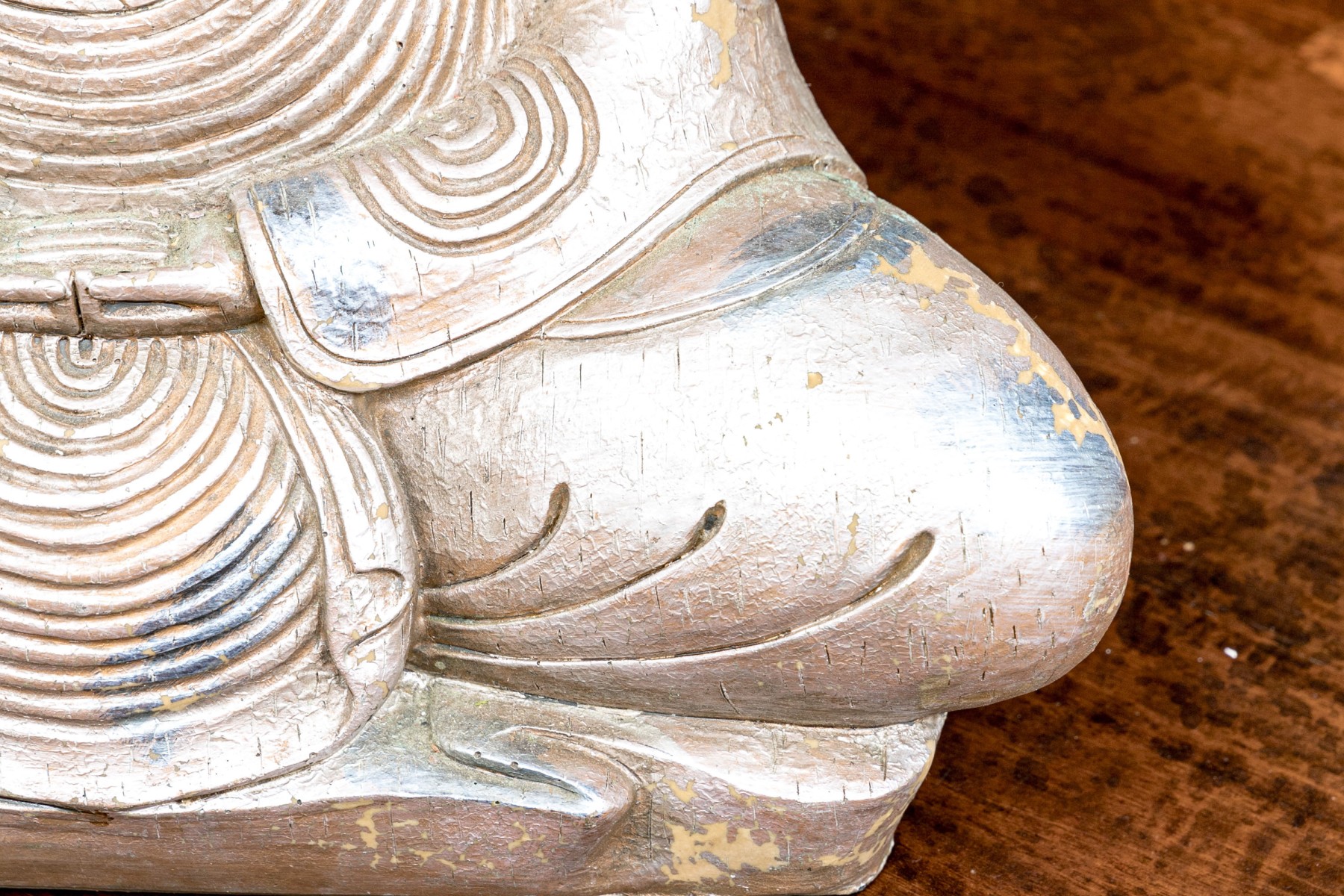 A wonderful and meditative carved and silvered finished figure of the Buddha.
