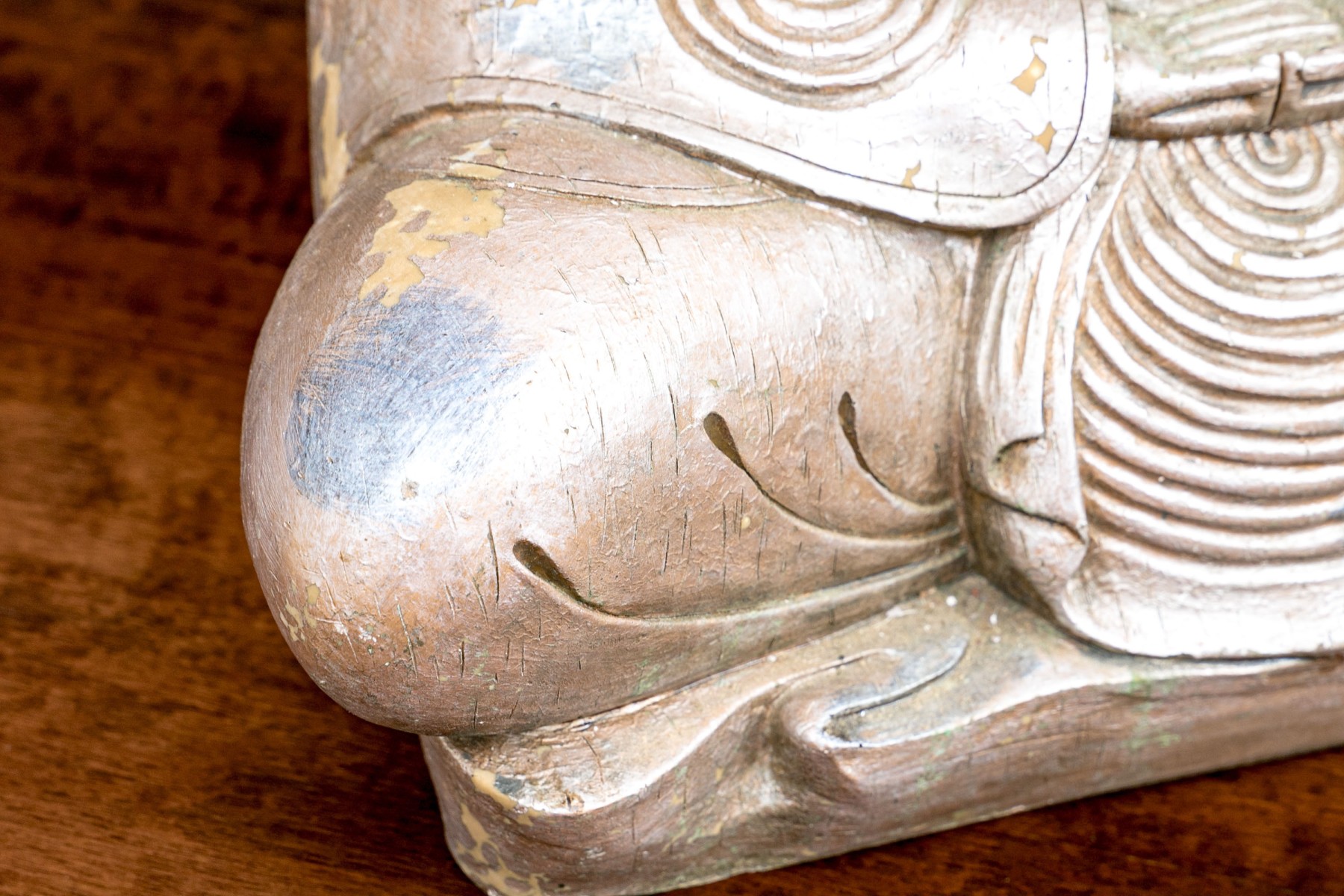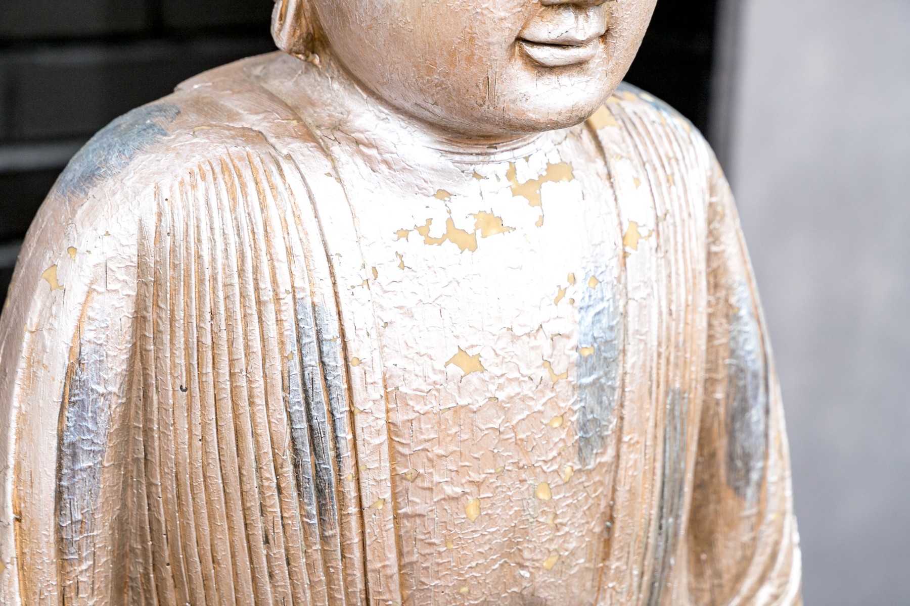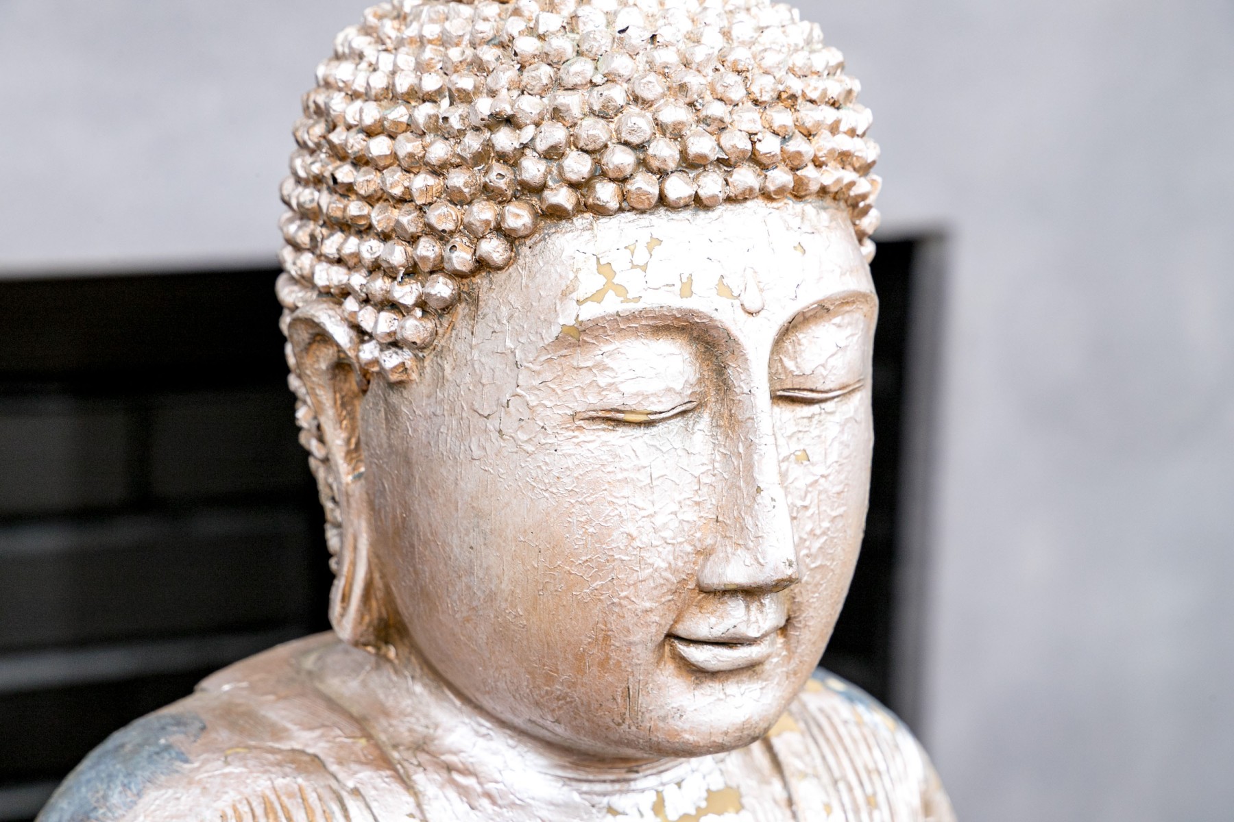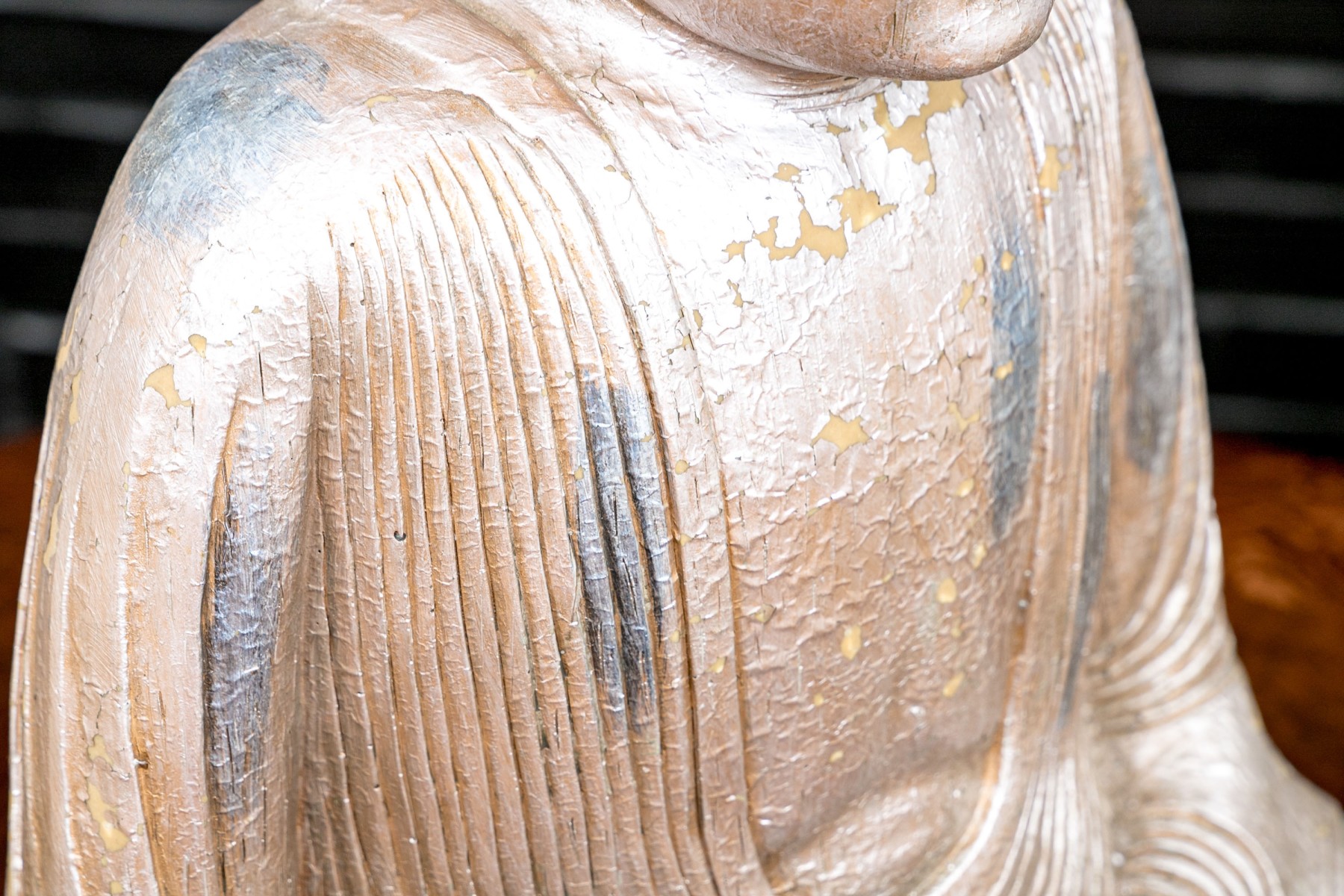 A wonderful and meditative carved and silvered finished figure of the Buddha.
