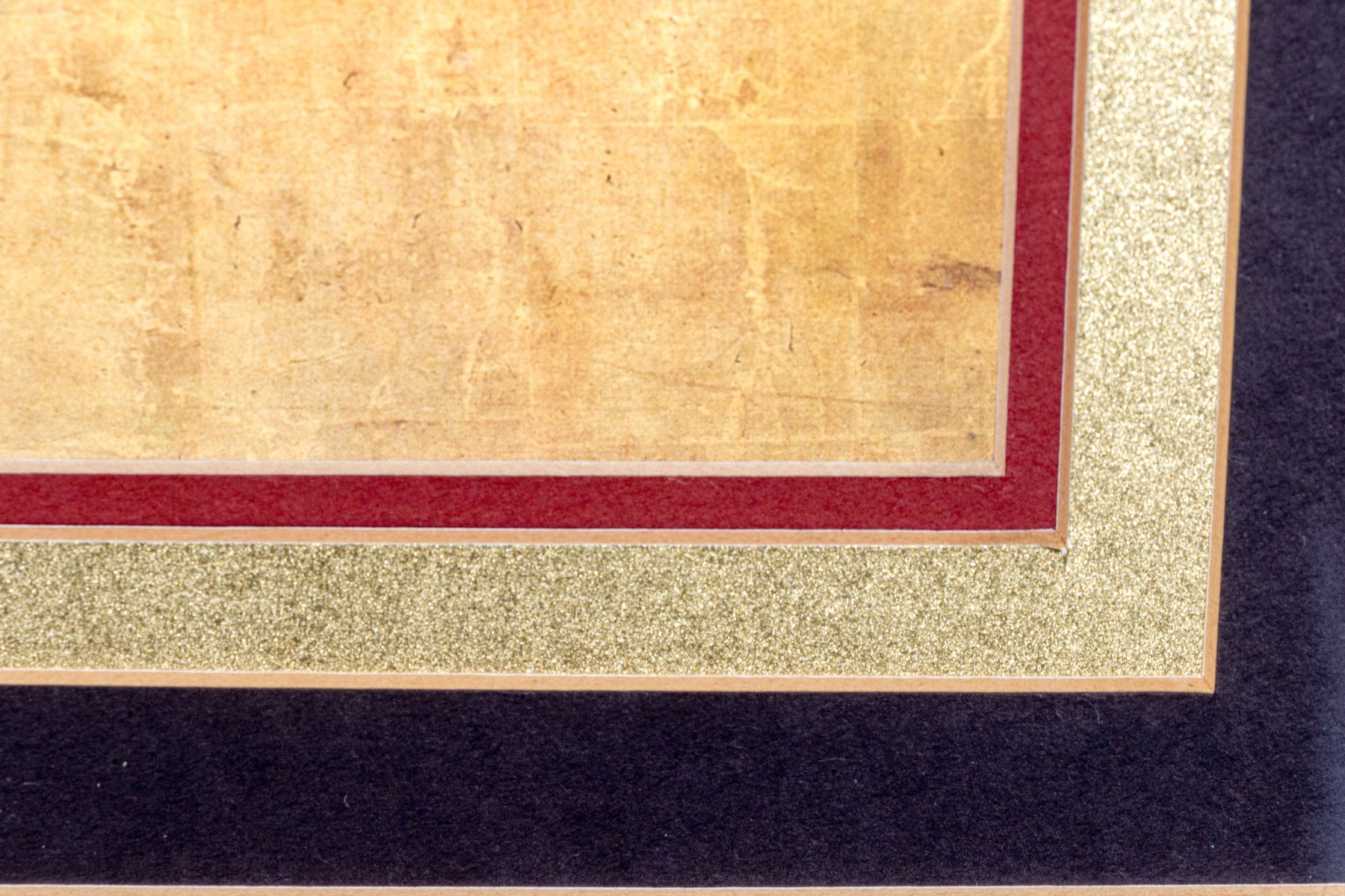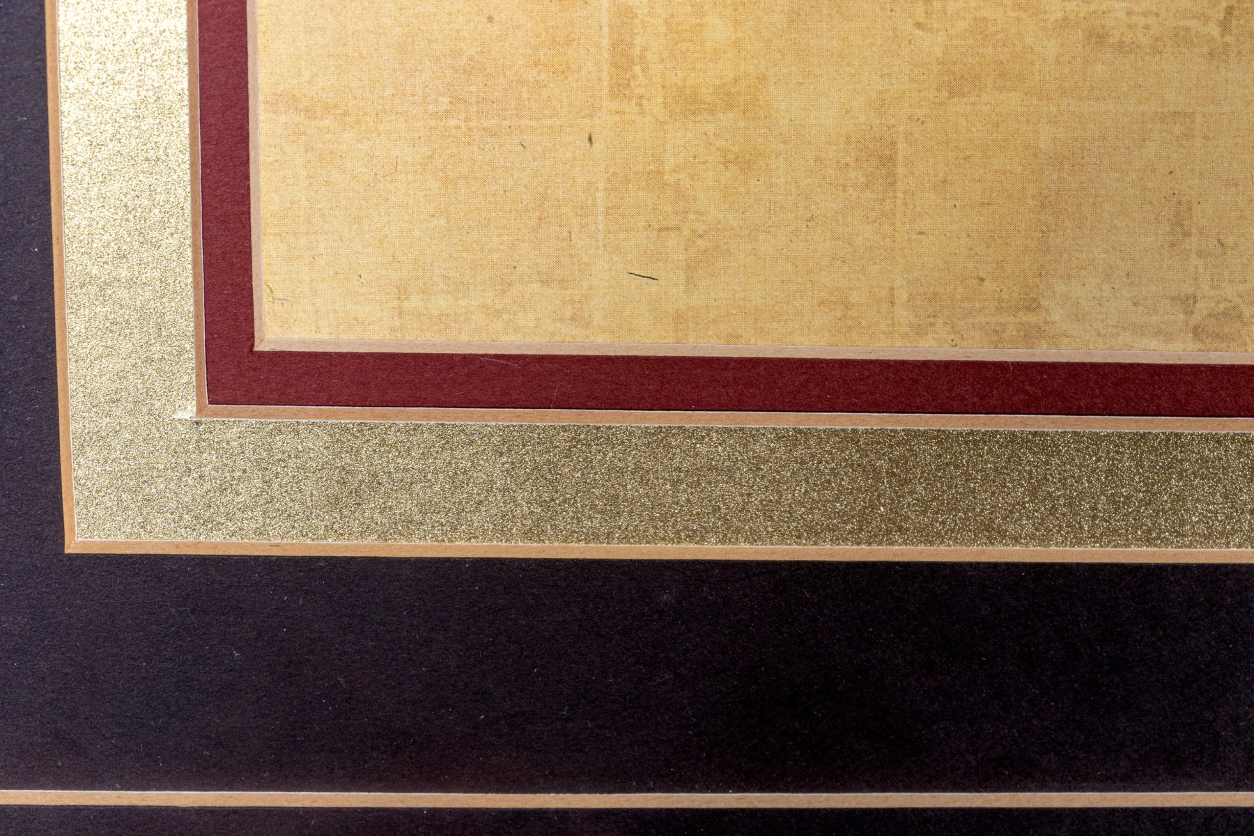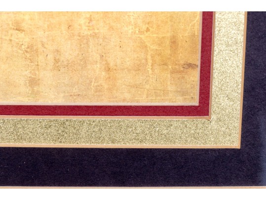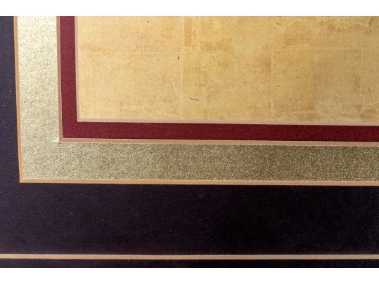 Presented wonderfully with a red and gilt trim with black mat, in a carved and gilt finished frame and glazed with plexiglass.