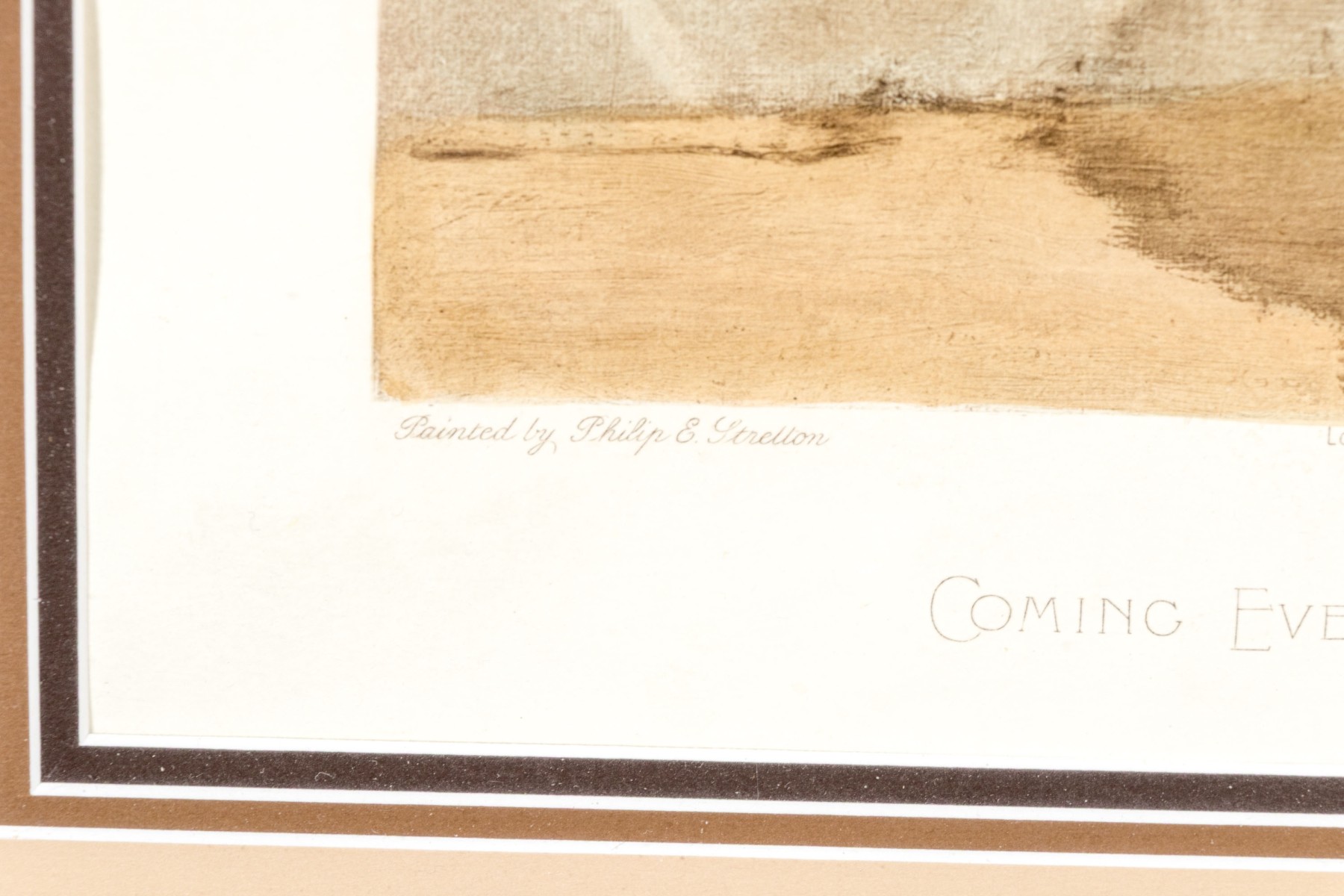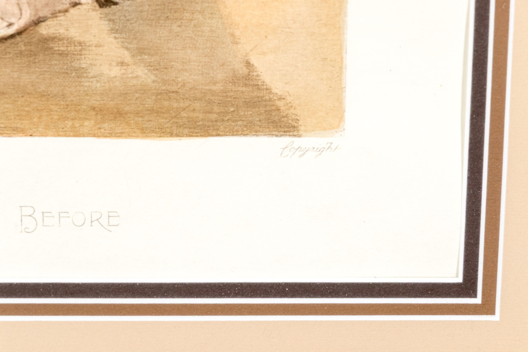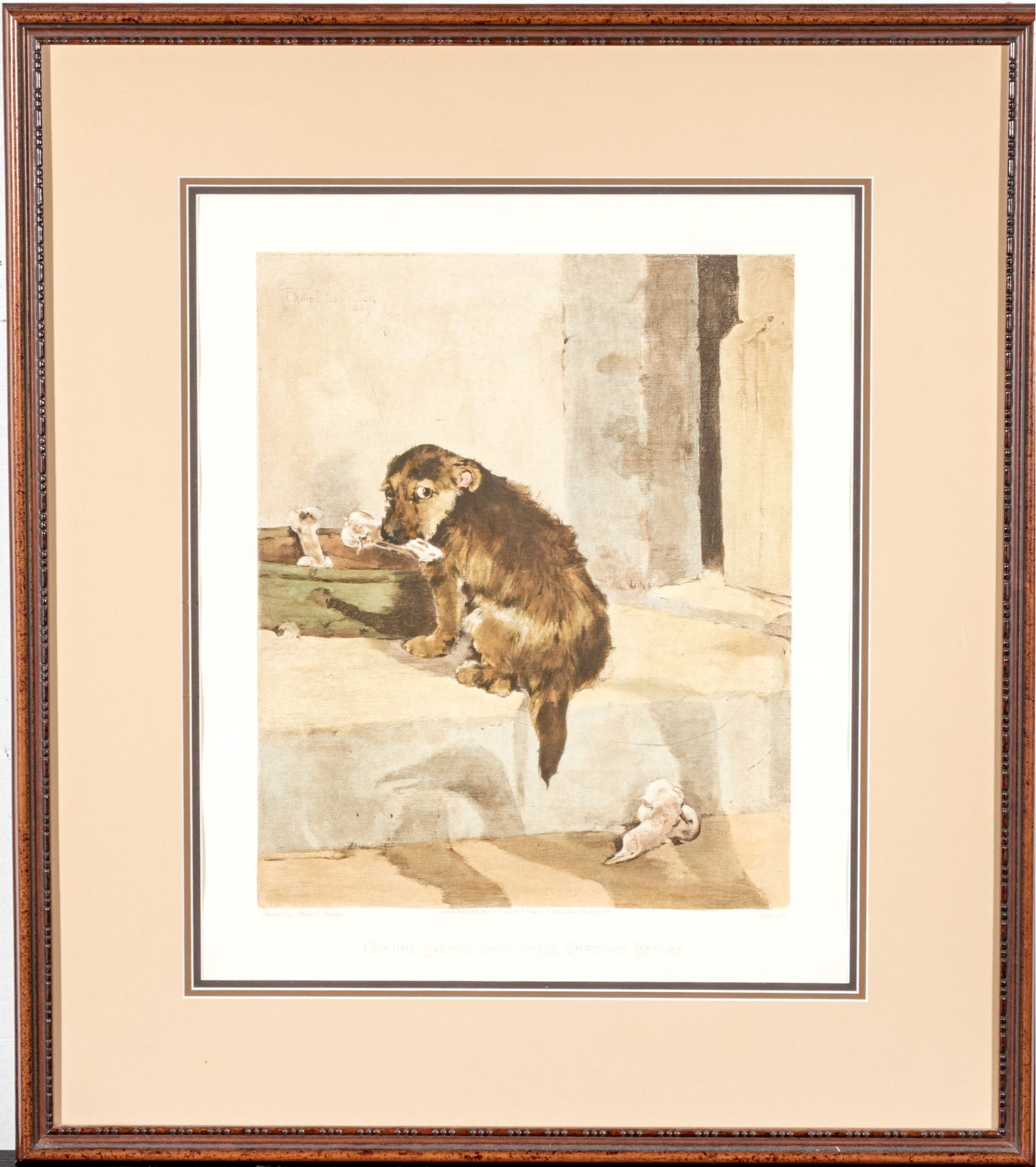 Provenance: Harrod's, England. A print after an original. Presented matted, within a carved and finished wood frame. Dimesions: 17 x 14" W, sight // 25 1/4 x 22 1/2" W, frame
