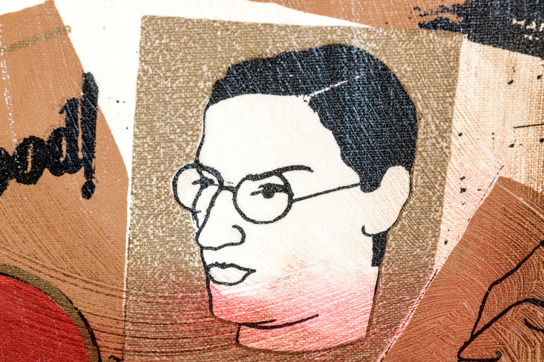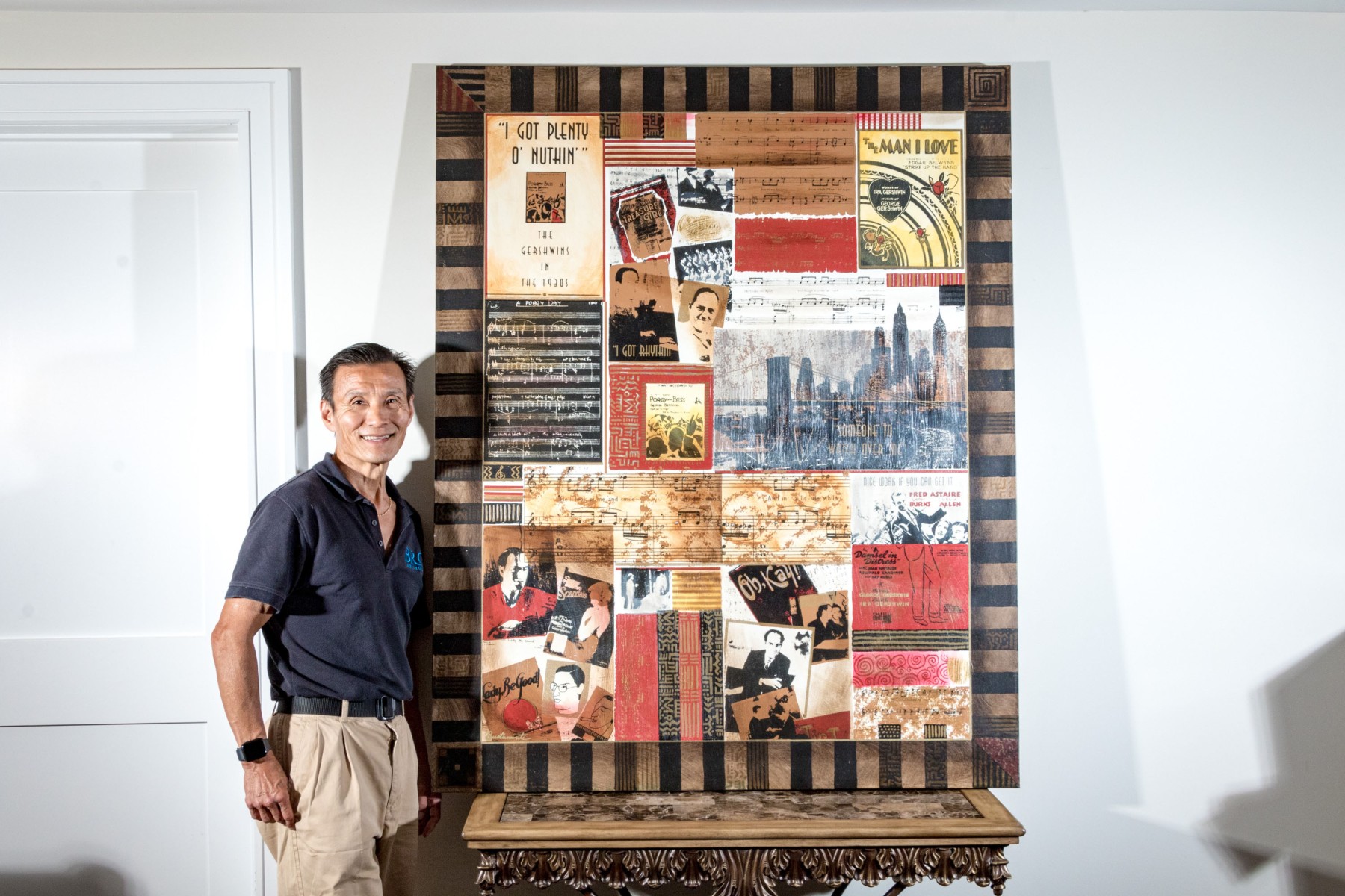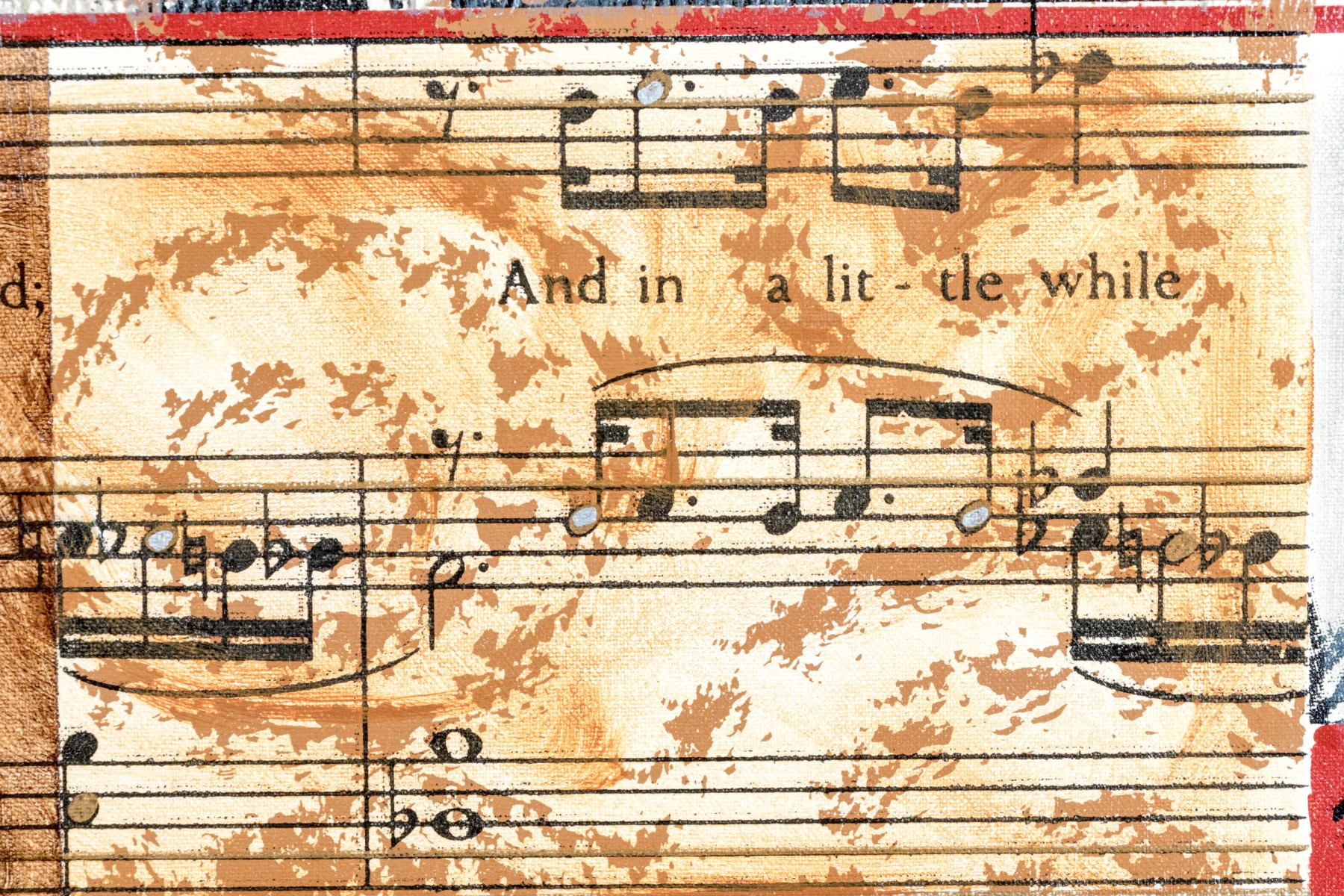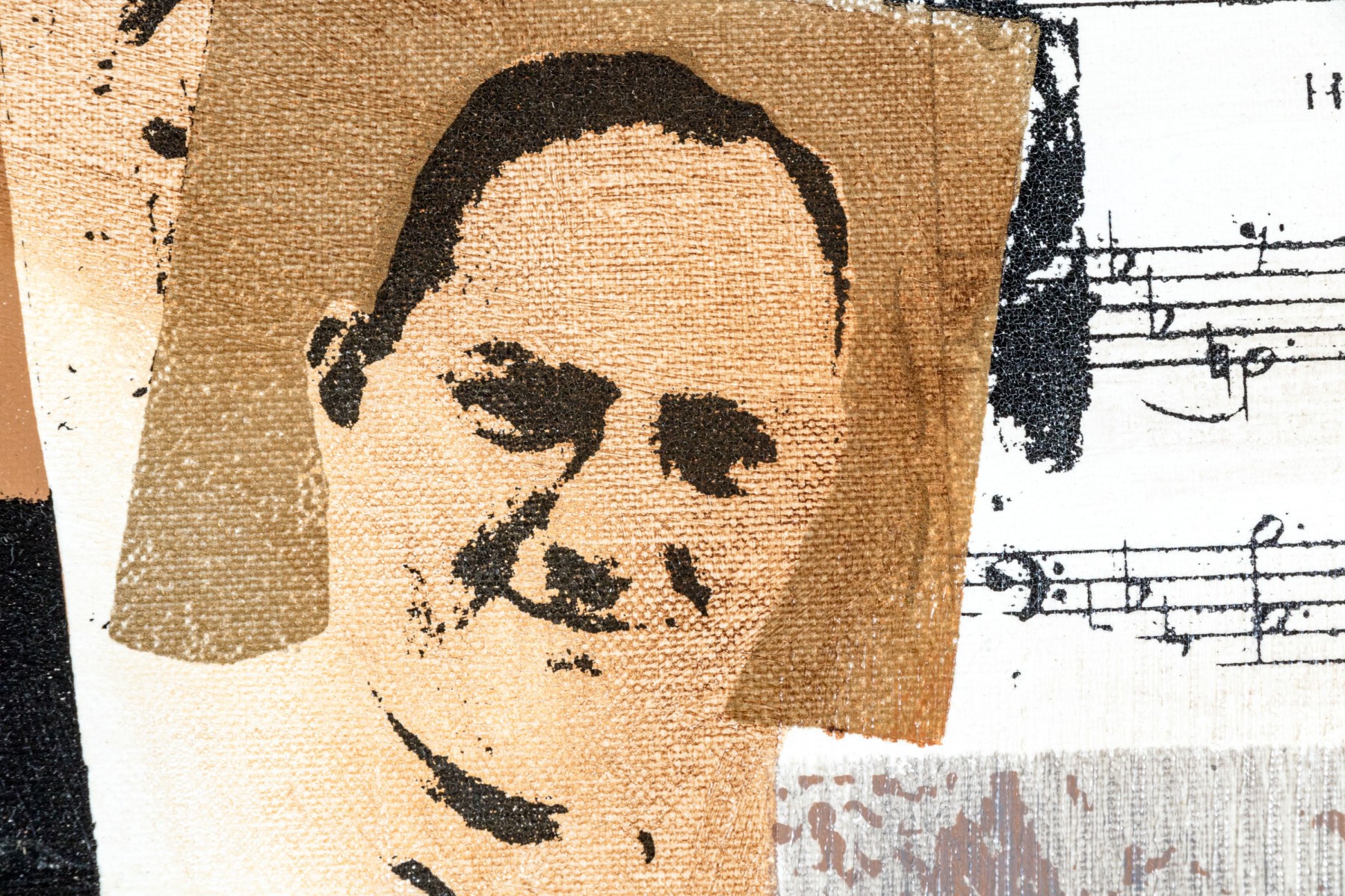 A fantastic and decorative print on canvas collage with imagery related to Gershwin and music.