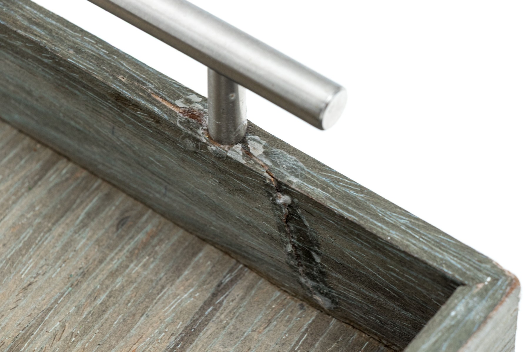 One of the handles on the tray has been repaired with glue. nics and losses to the finish on frame additionally.