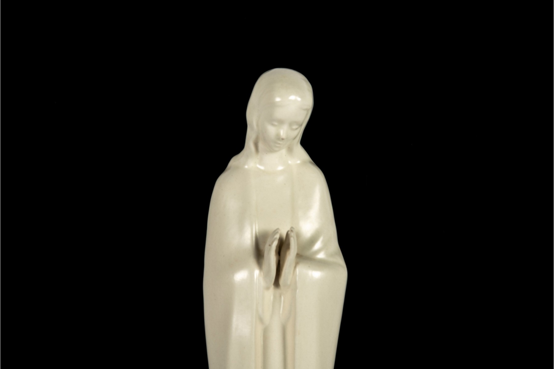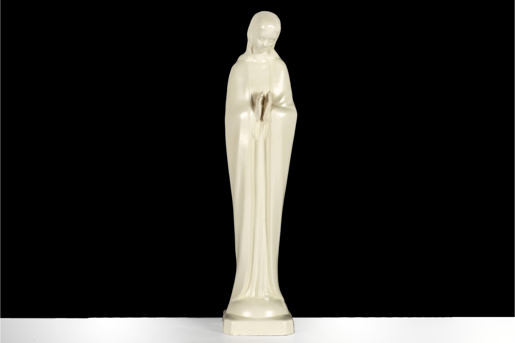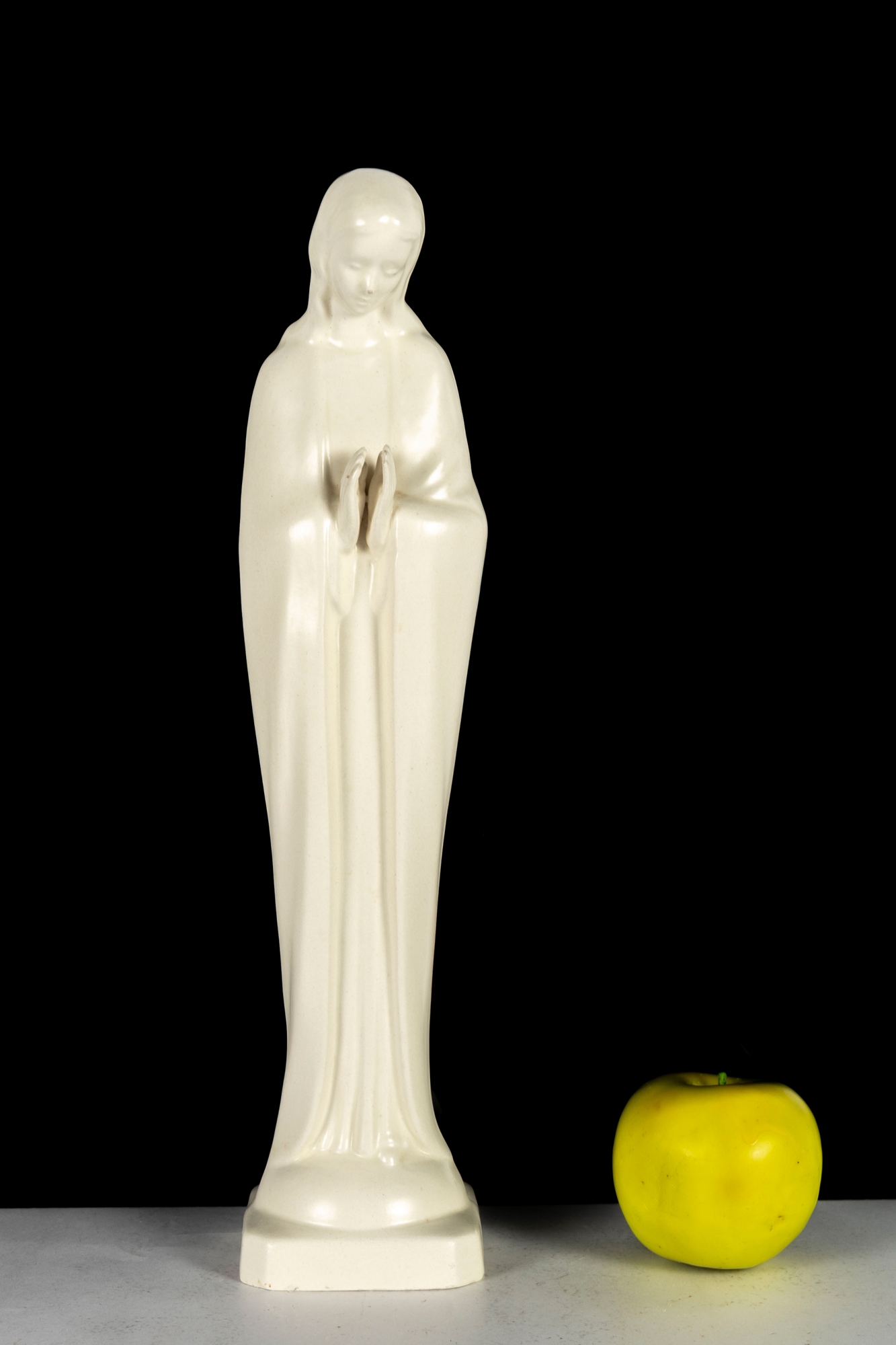 A religious icon consisting of a white porcelain Madonna draped in robes — signed "S.E. 1964". See photos for details.