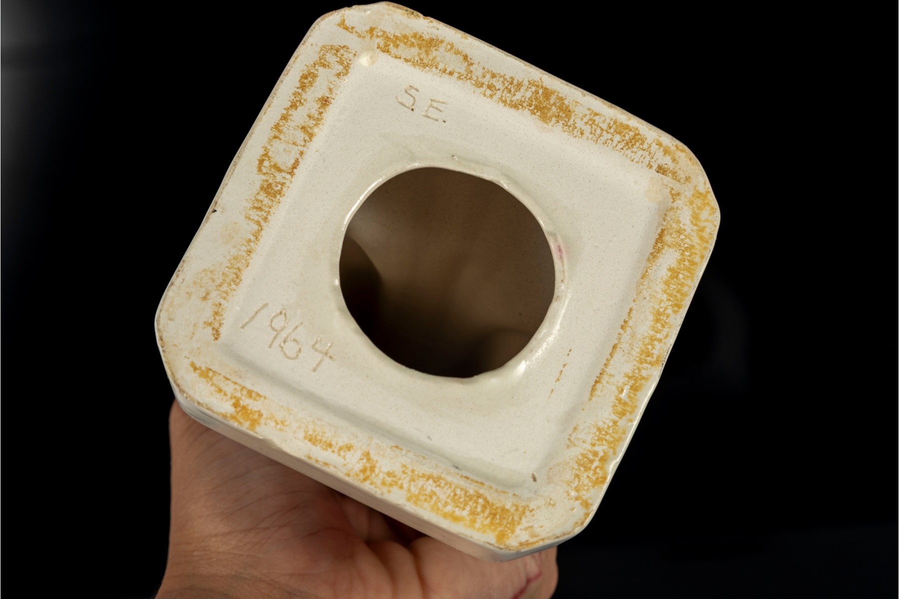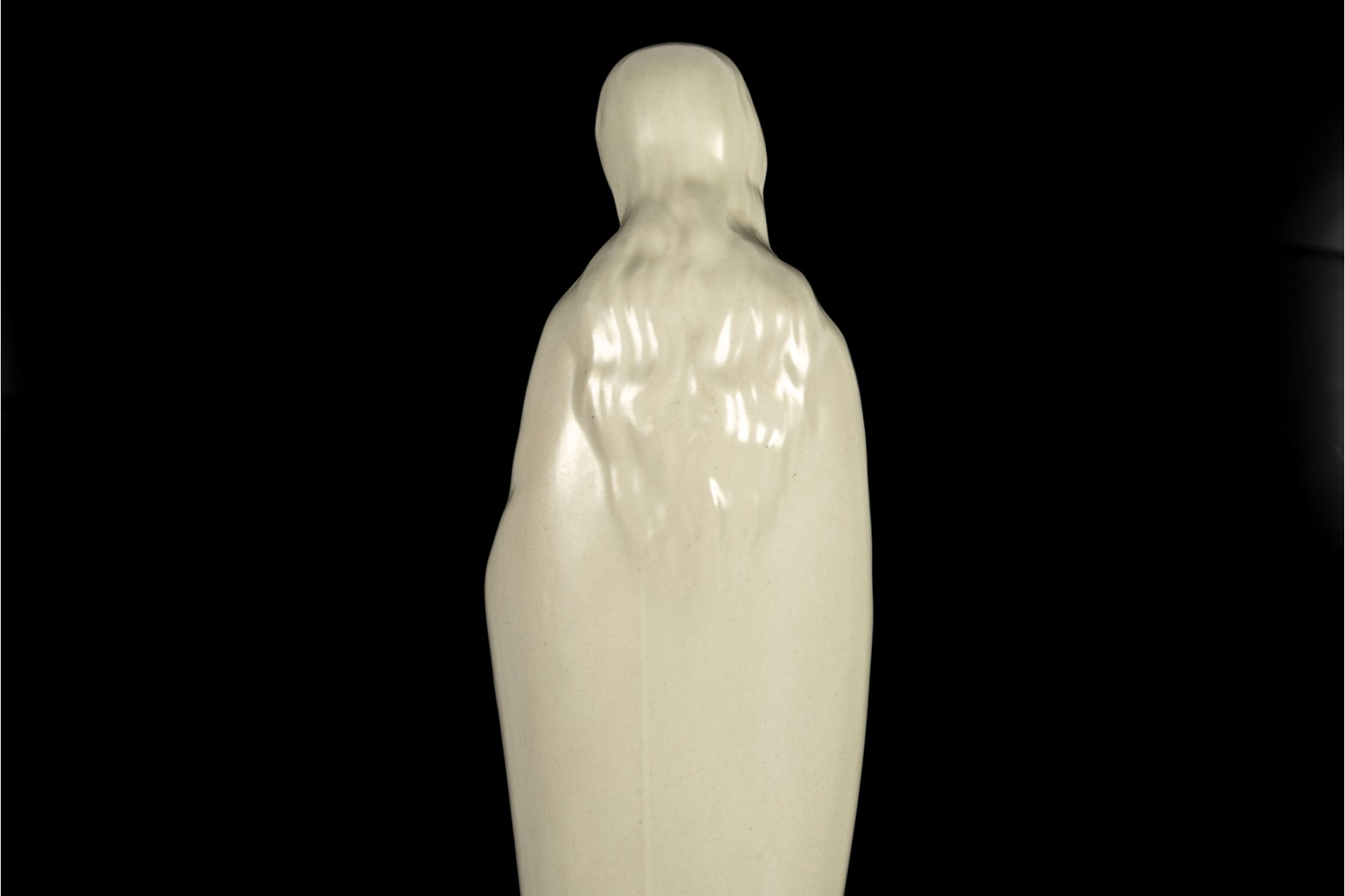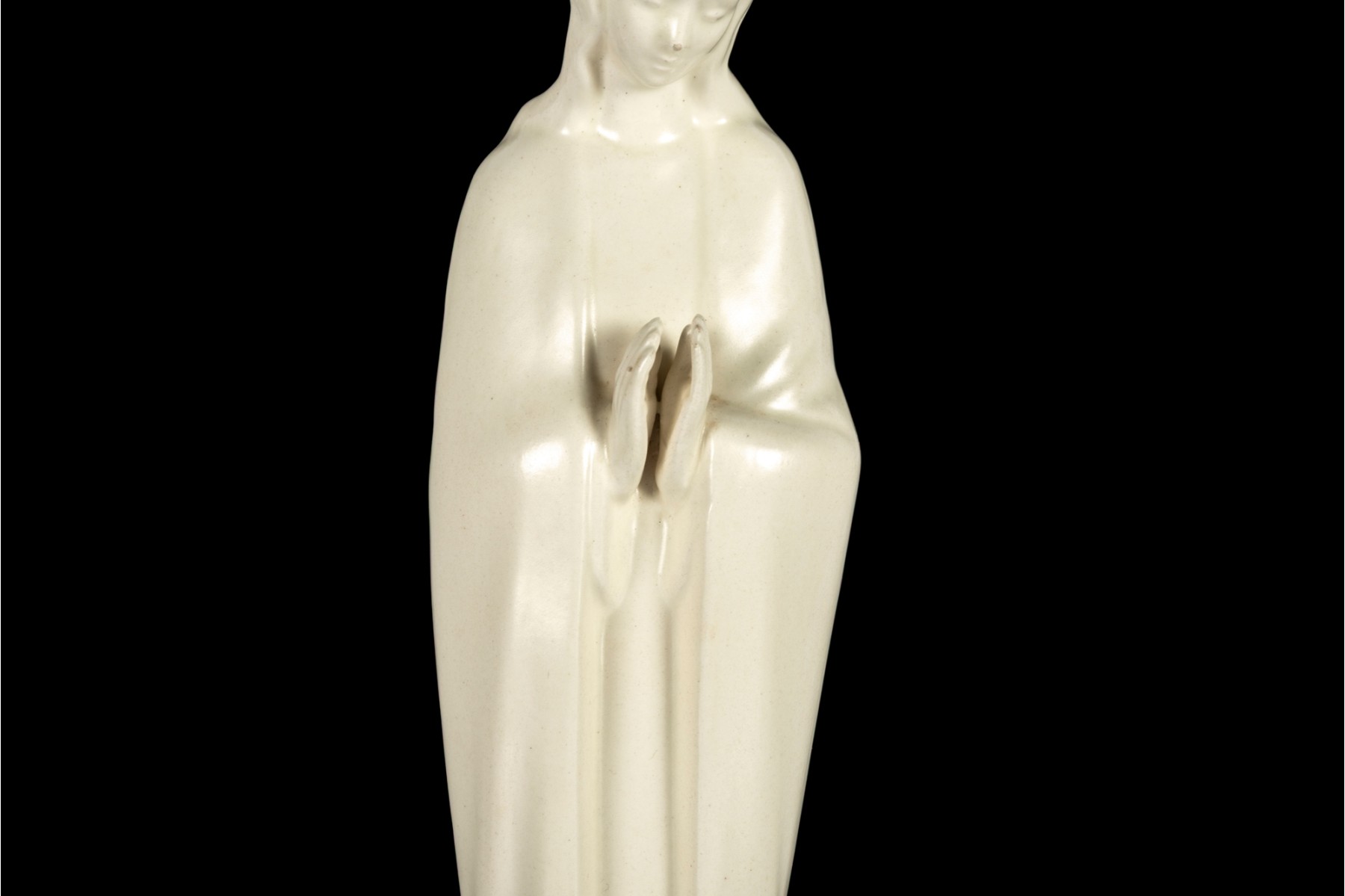 A religious icon consisting of a white porcelain Madonna draped in robes — signed "S.E. 1964". See photos for details.