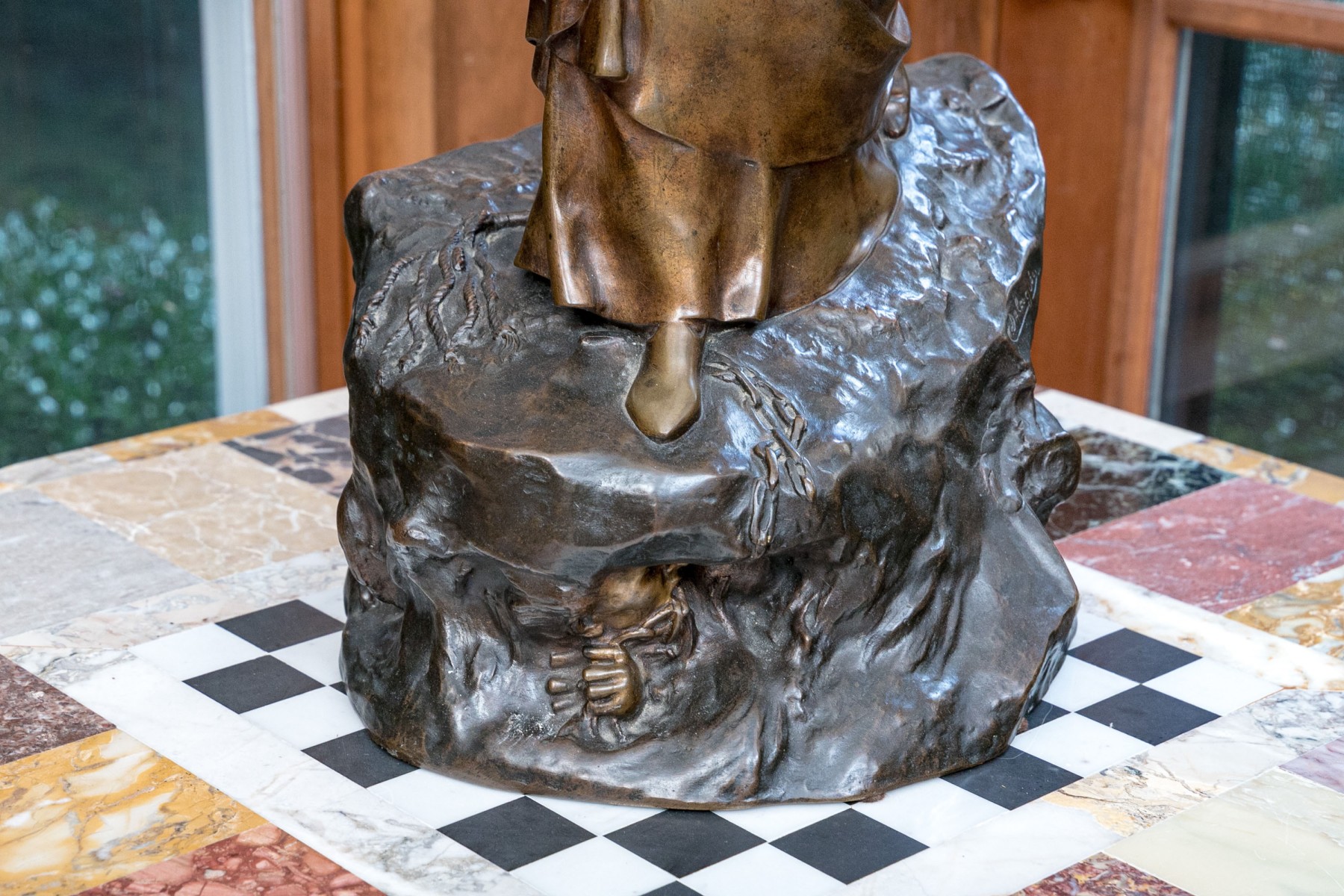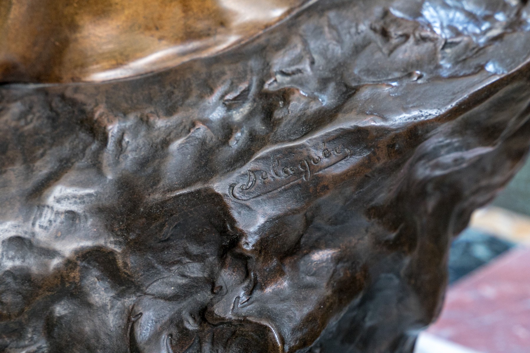 Victor-Constantin Delaigue, antique bronze dark patinated sculpture of Dante's Inferno. Signed "Delaigue" and marked E.L 32 on base.