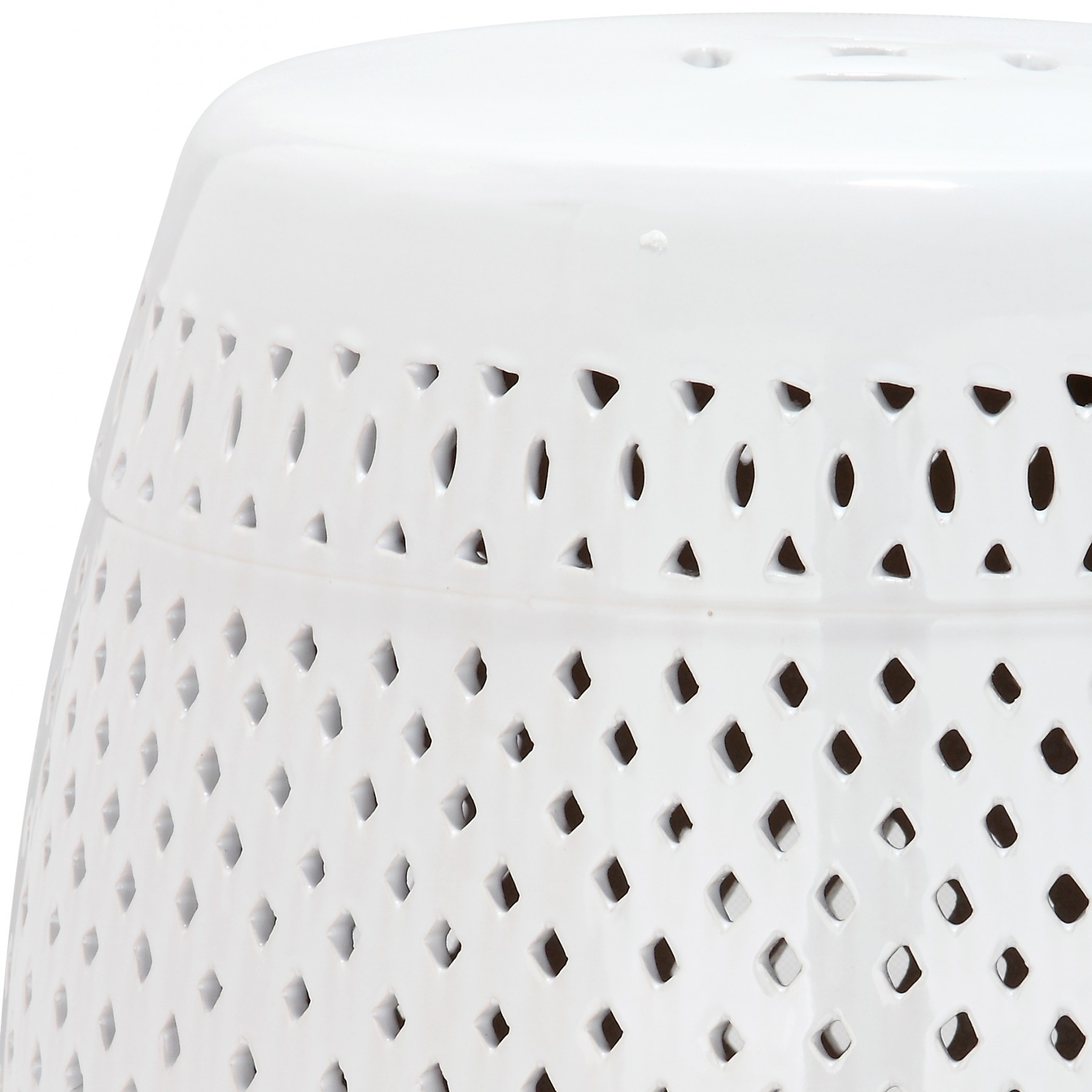 Designed to bring a soft sense of motion to today’s decor, this Diamond Garden Stool is the perfect finishing touch to any indoor or outdoor space. Its clean white ceramic is masterfully detailed by a pierced diamond lattice that cleverly juxtaposes the gracefully curved silhouette.
