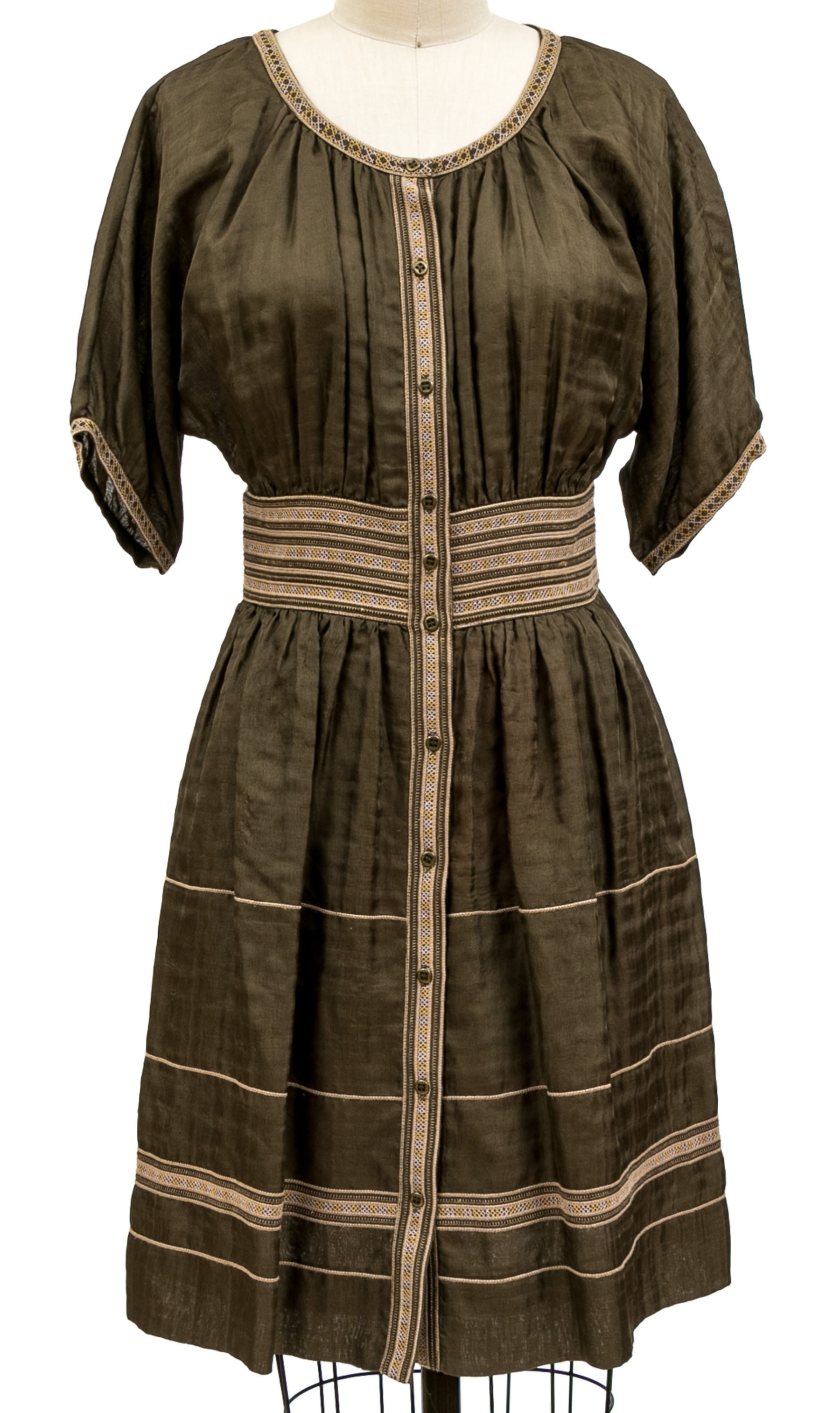 Diane Von Furstenburg lovely green silk embroidered trim dress, size 4
