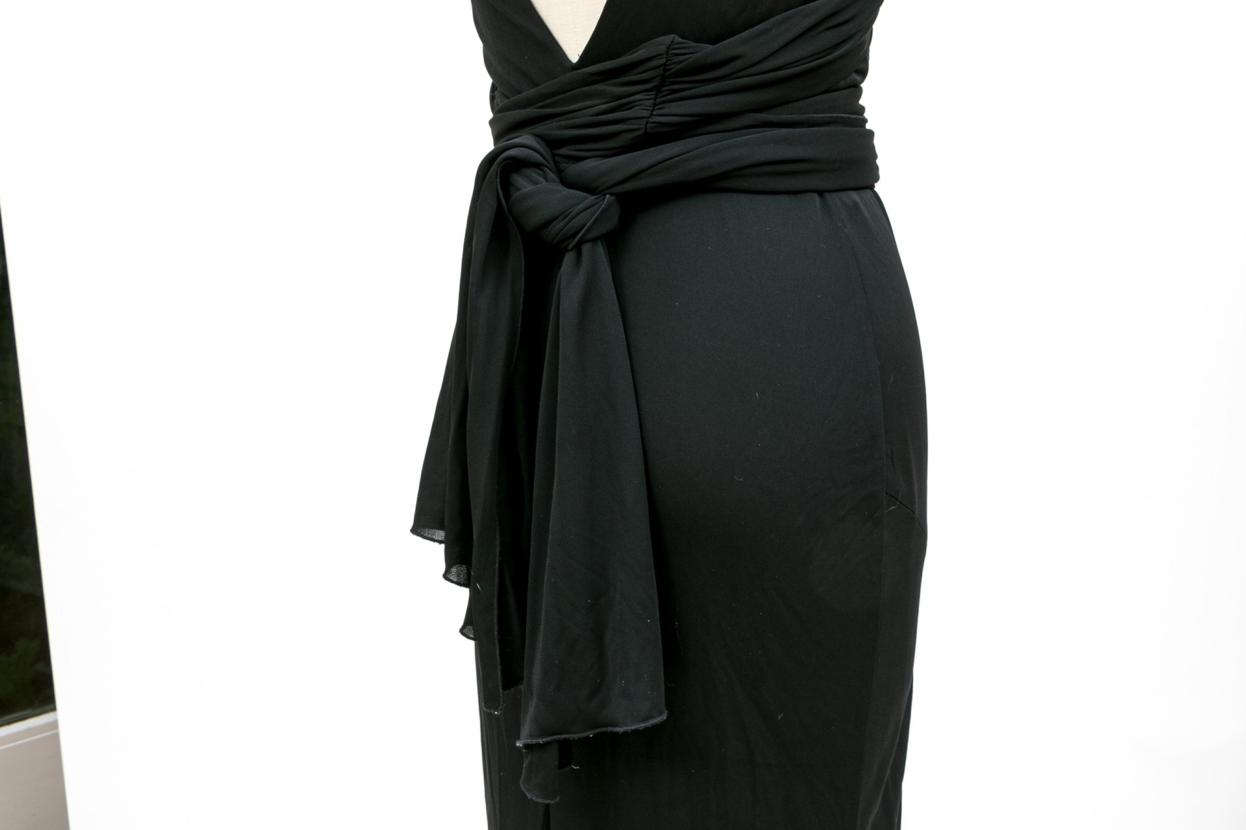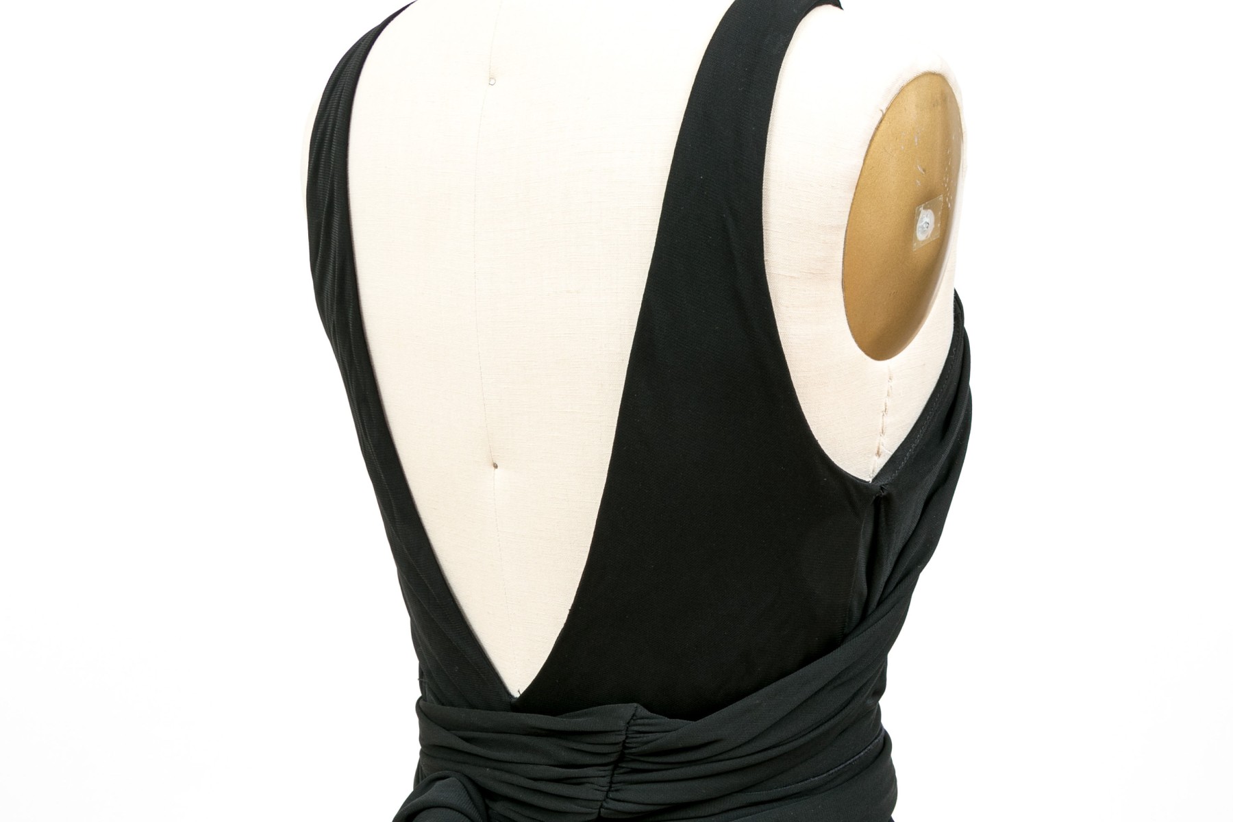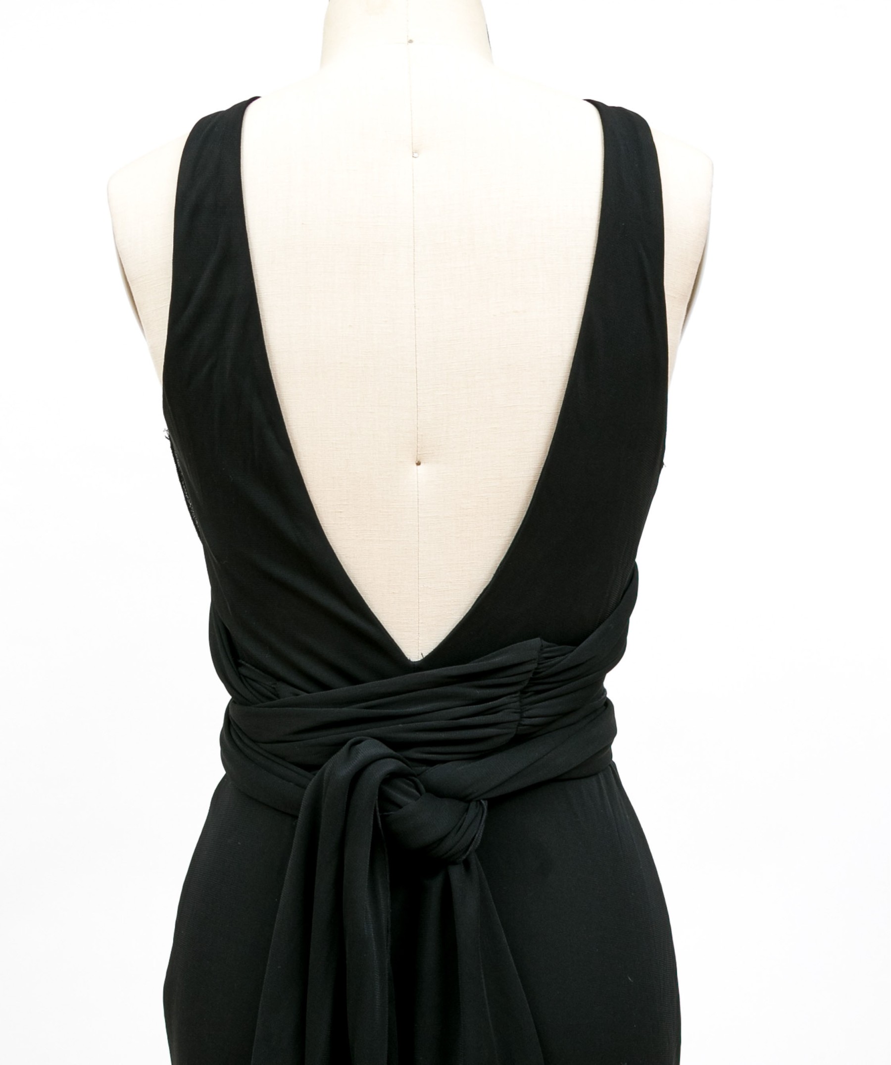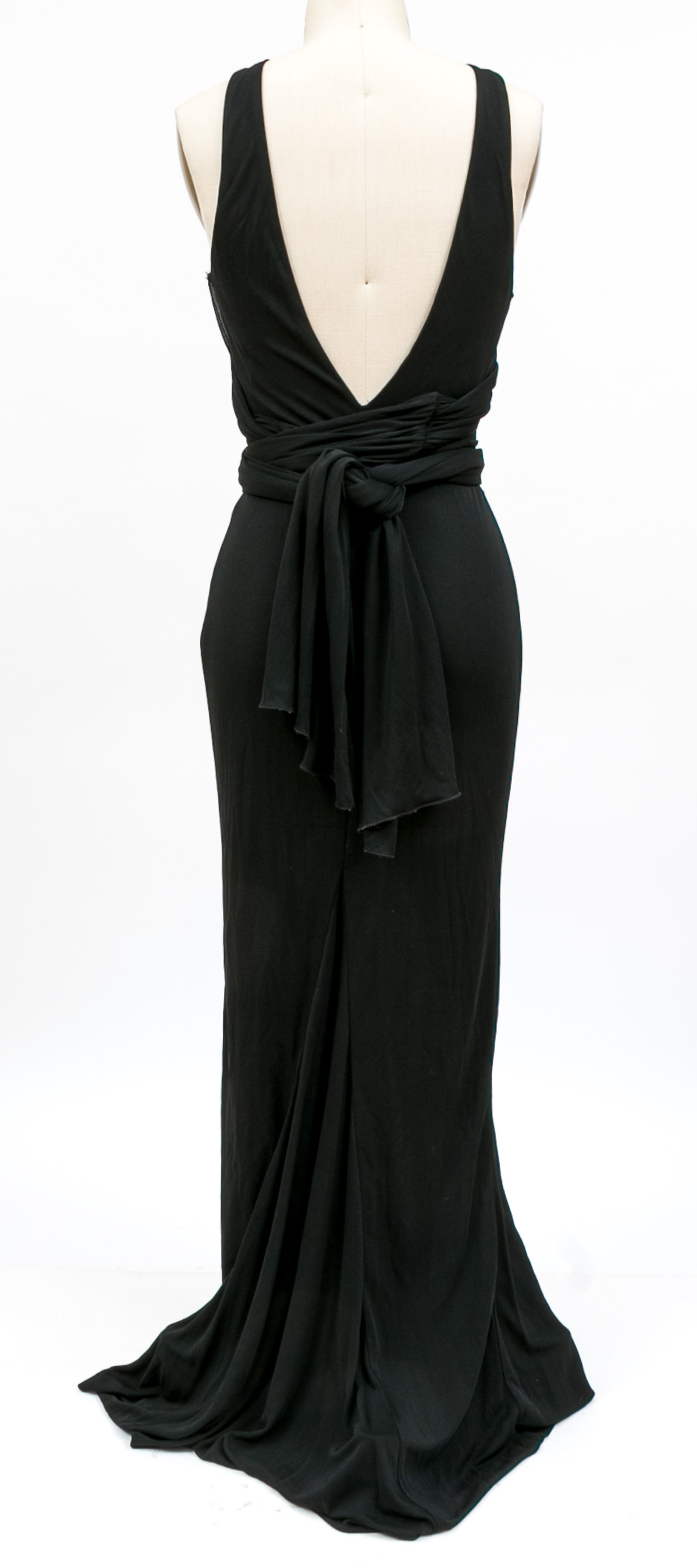 Diane Von Furstenburg refined floor length black gathered sleeveless dress, size 6