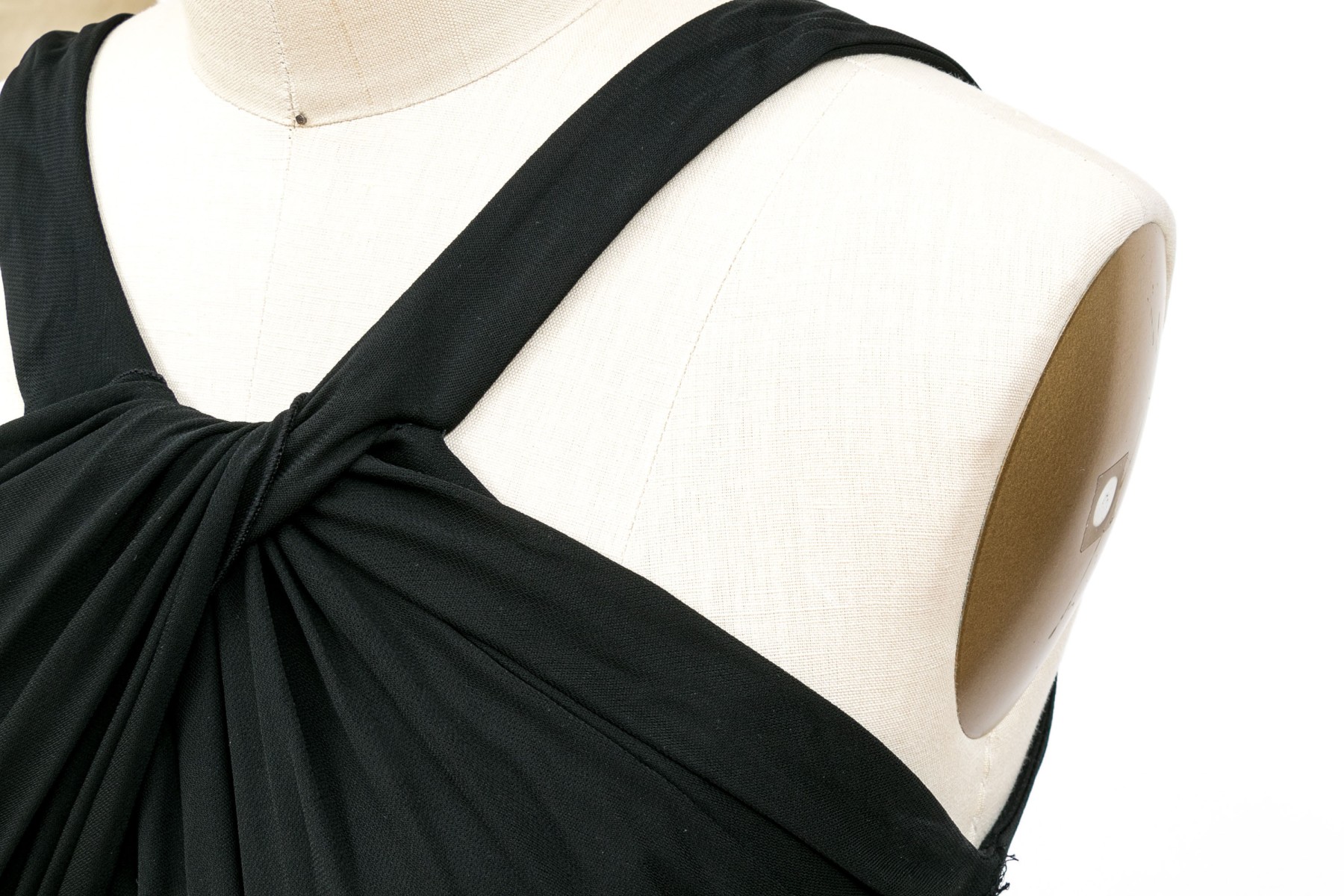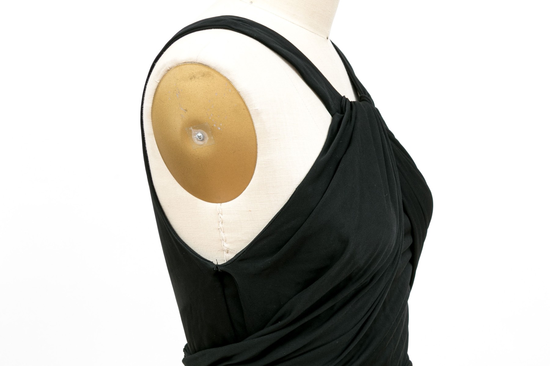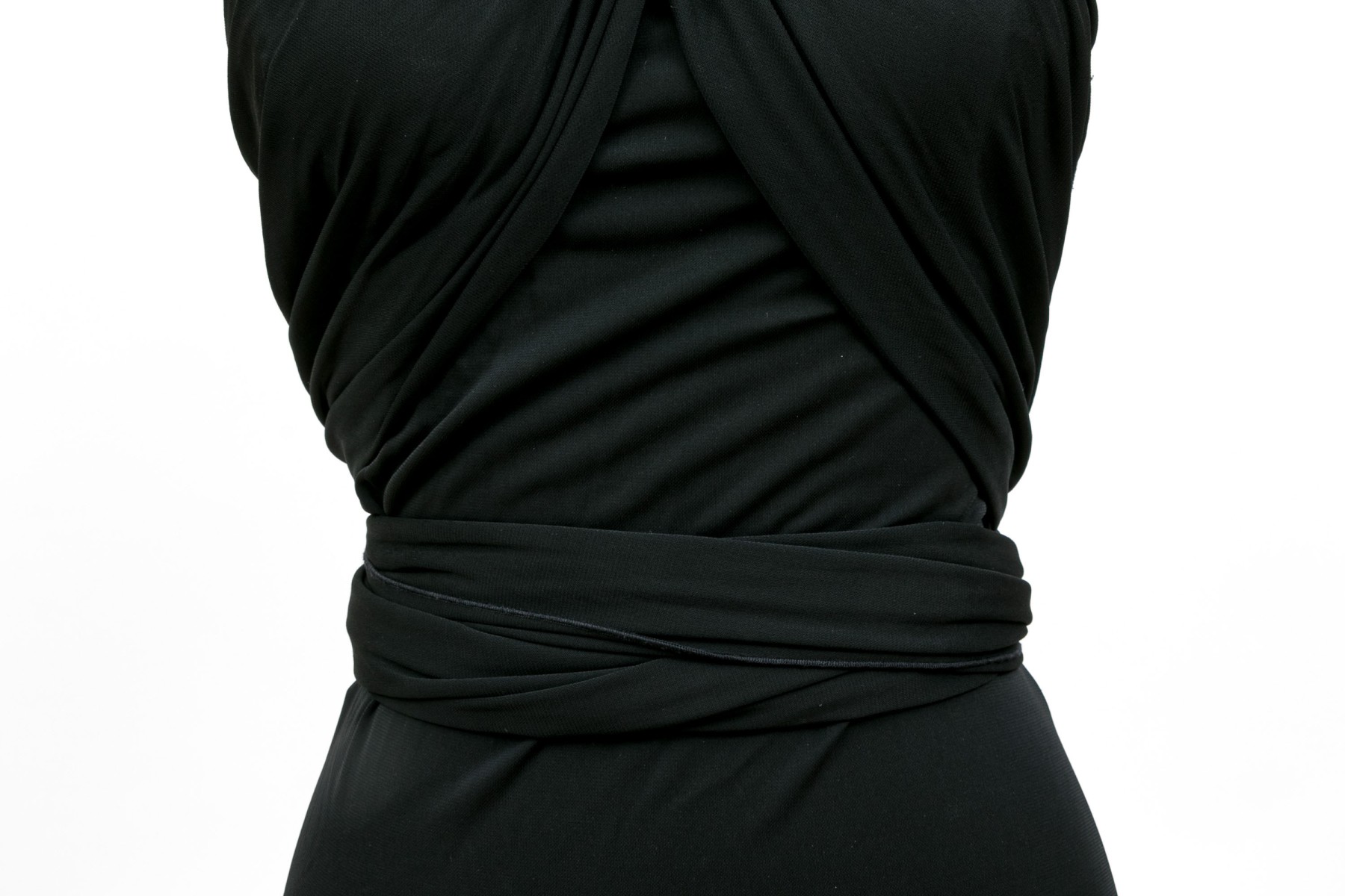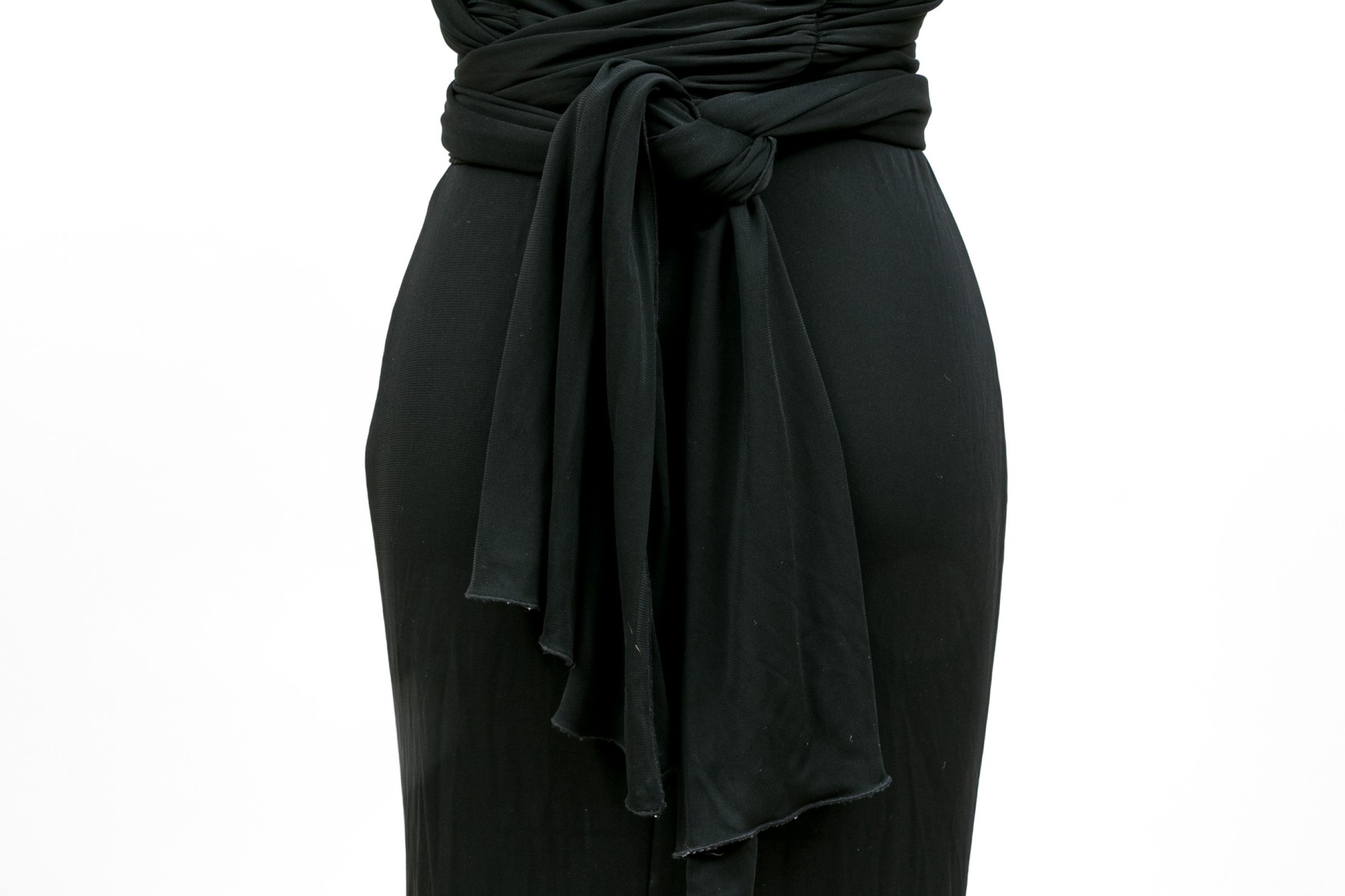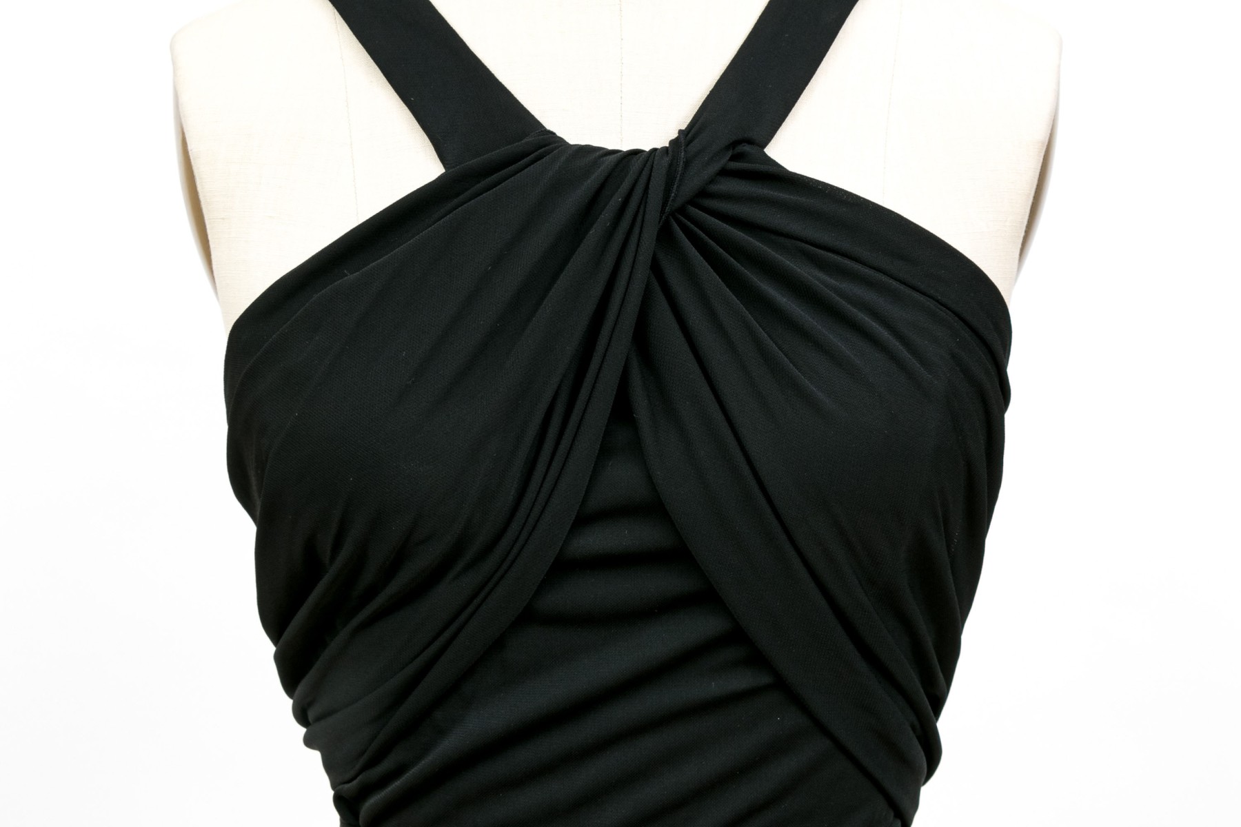 Diane Von Furstenburg refined floor length black gathered sleeveless dress, size 6